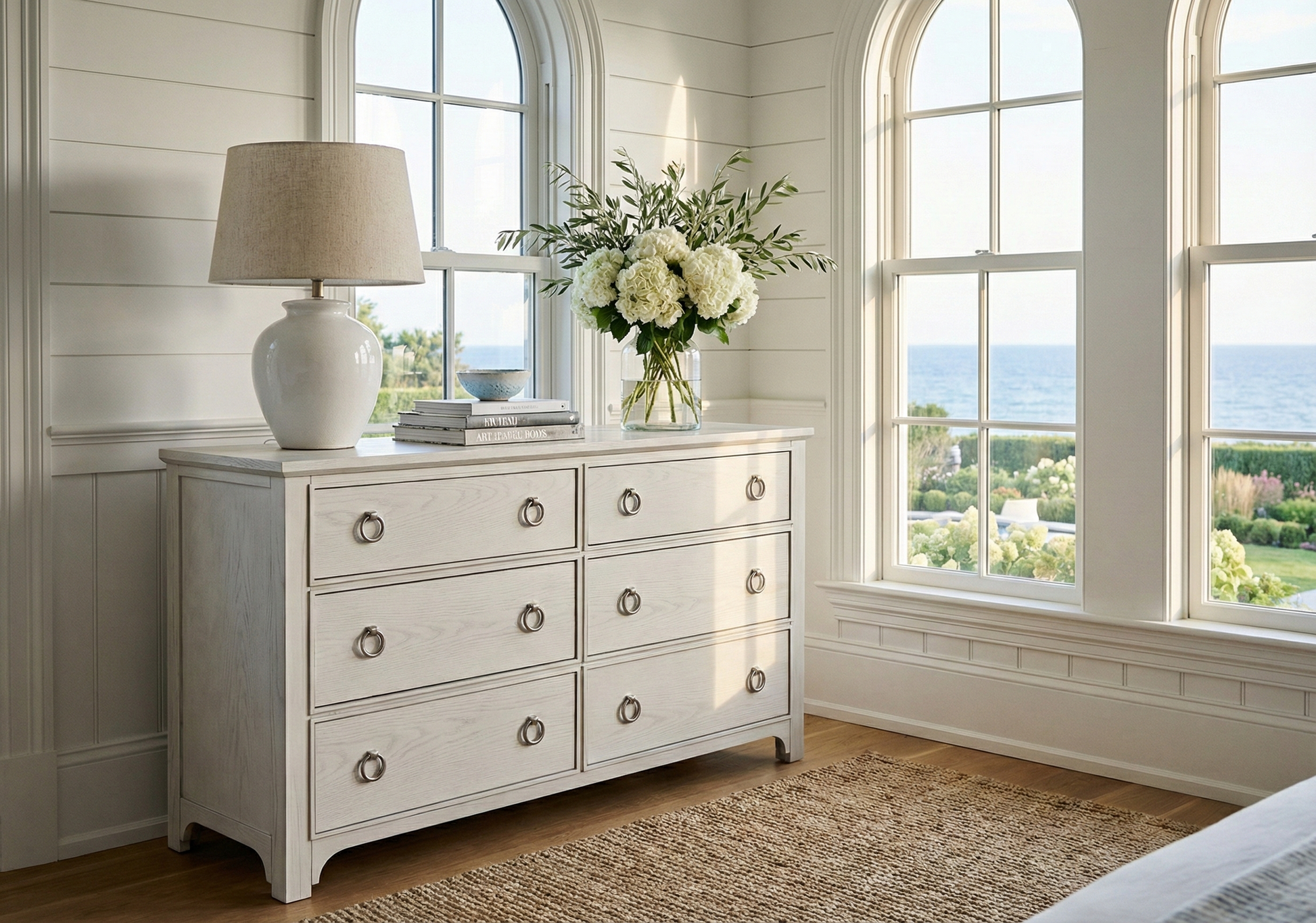 Inspired by the timeless elegance of classic East Coast architecture, The Newport Collection by Aston & Elm™ brings effortless, heritage luxury to the modern home. Crafted from white cedar, each piece is meticulously hand-finished in an airy, artisanal whitewash that beautifully preserves the timber's organic grain. Designed to anchor your space with a sense of established sophistication, this collection seamlessly blends breezy coastal charm with heirloom-quality craftsmanship.