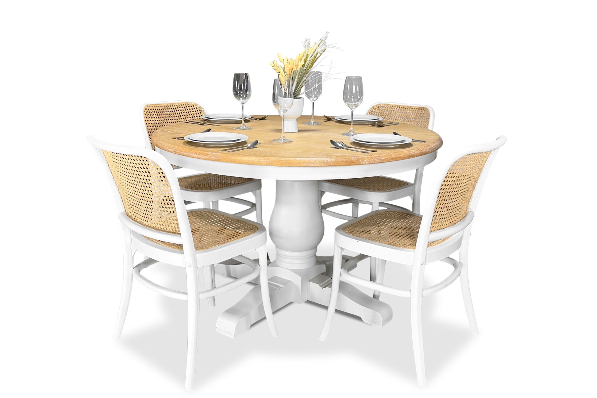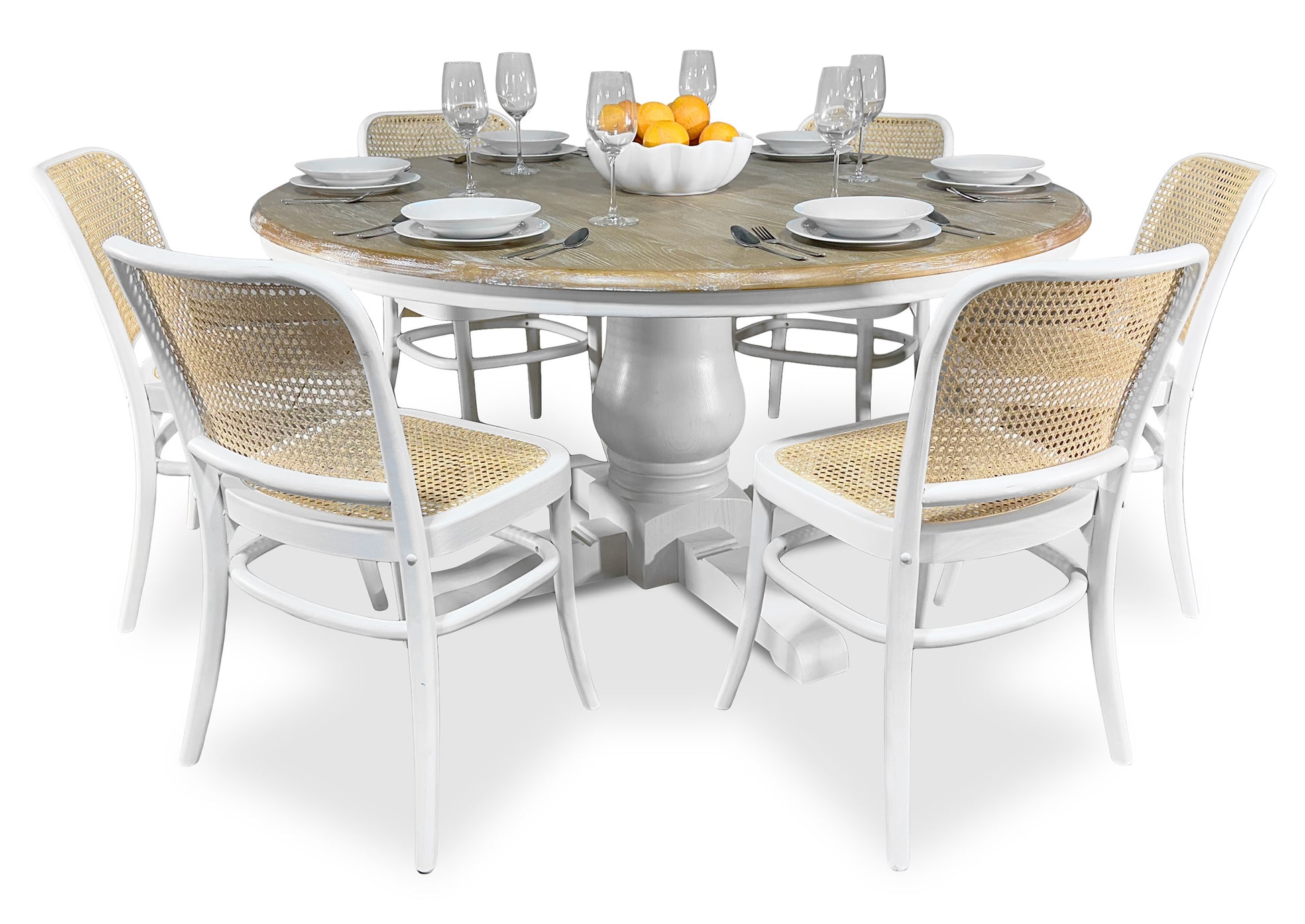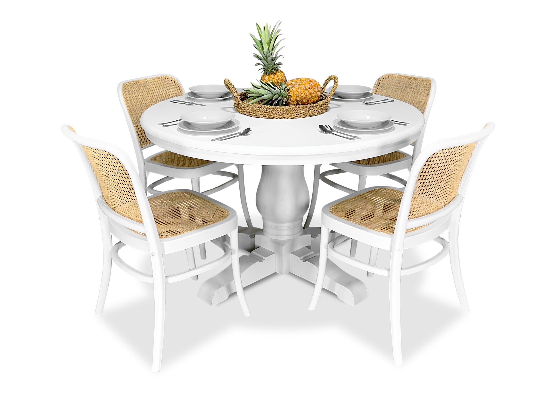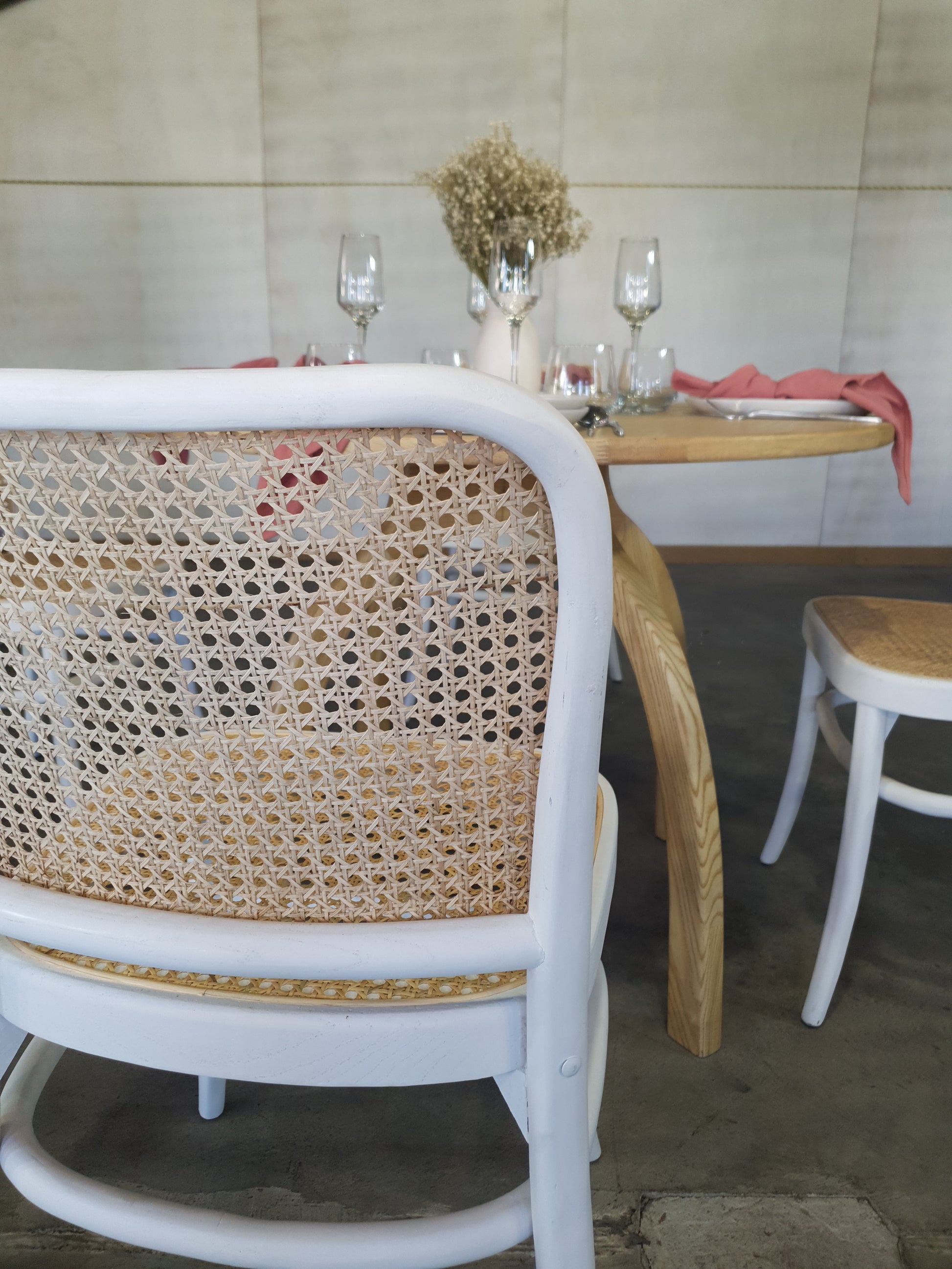 The Calypso Chair features a rattan seat and back rest, and a single hoop between the legs, giving it strength and a modern silhouette. The thick edge of the seat sets it apart from other chairs with a deluxe look.