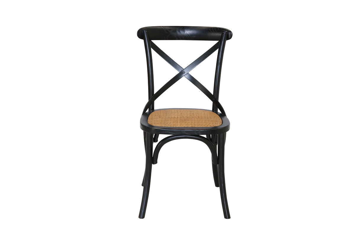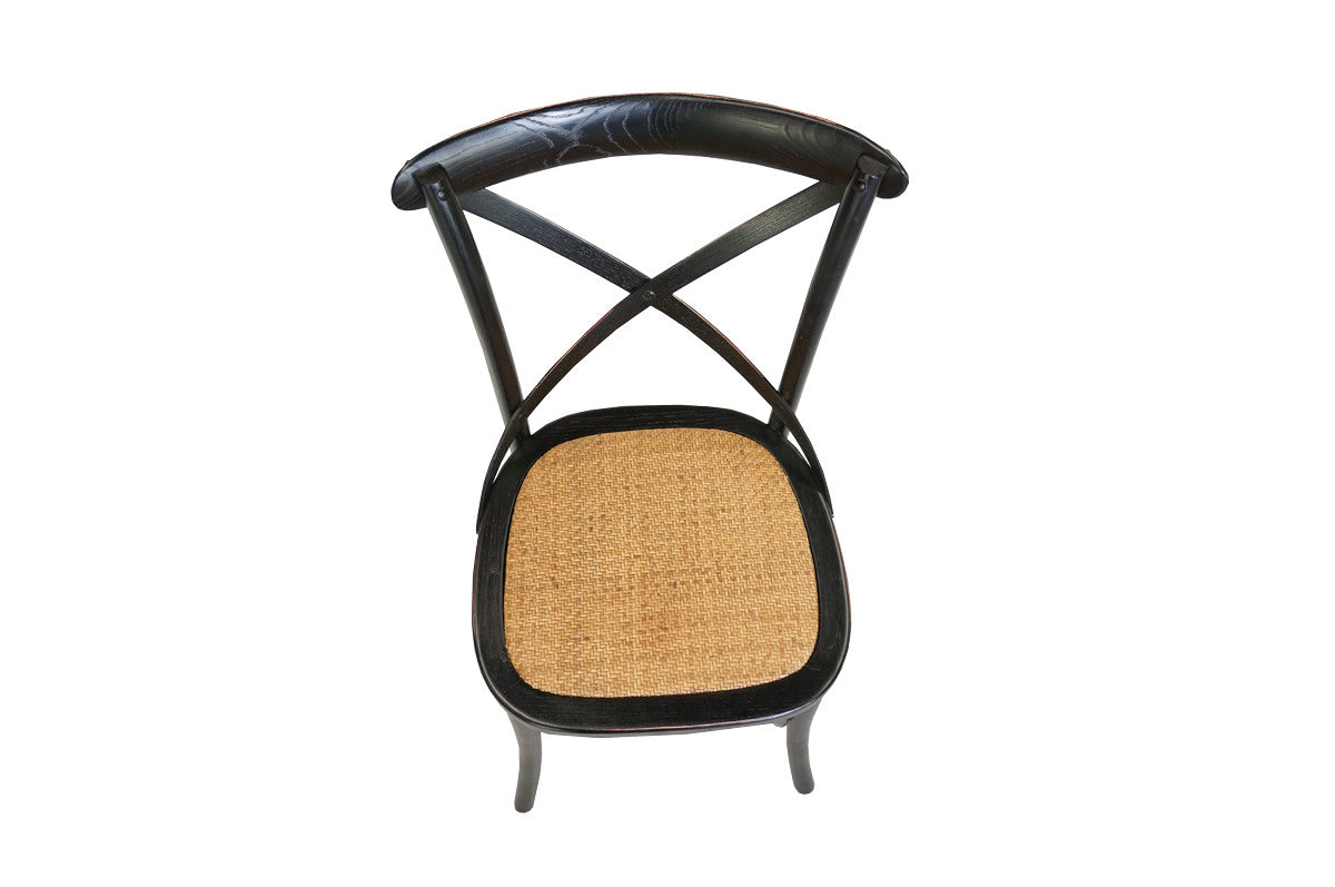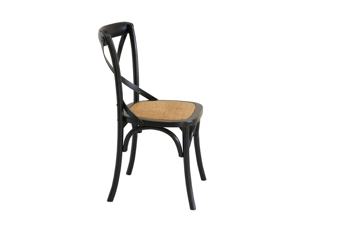 The elegant Cross Back Chair combines French provincial sensibilities with Parisian chic. They are timeless and versatile chair that can be used in almost any room of the house. These chairs have a bent wood back support and woven rattan seat.