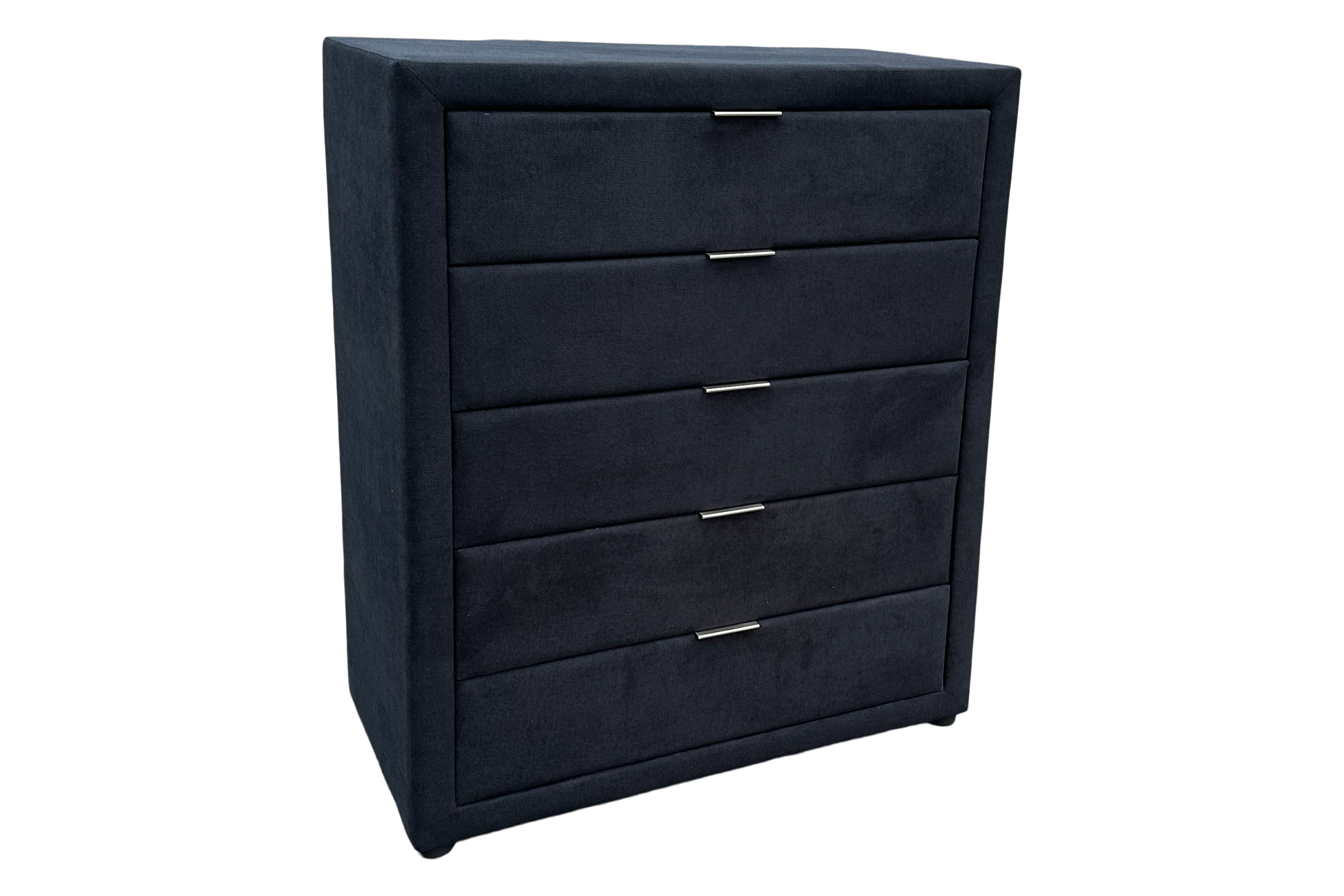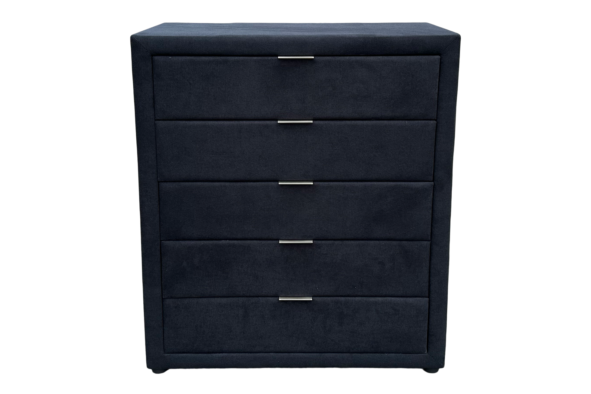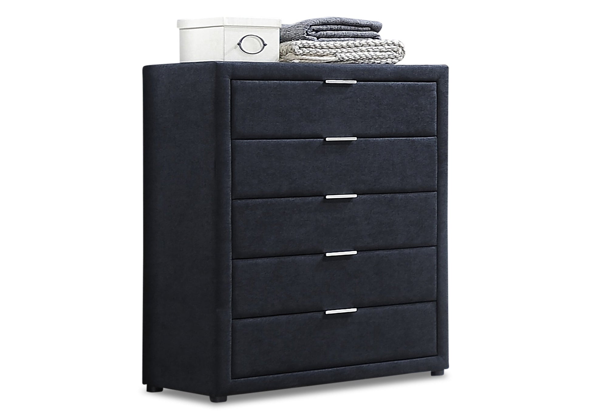 This unique range of fully upholstered bedroom furniture brings a new level of comfort and wow factor to the bedroom. Featuring a rich, dark grey, luxe tweed upholstery and deep pocket buttons the Dusk bed is a versatile option to mix with some traditional timber bedroom furniture or complete the look with the Dusk side table and drawer units.