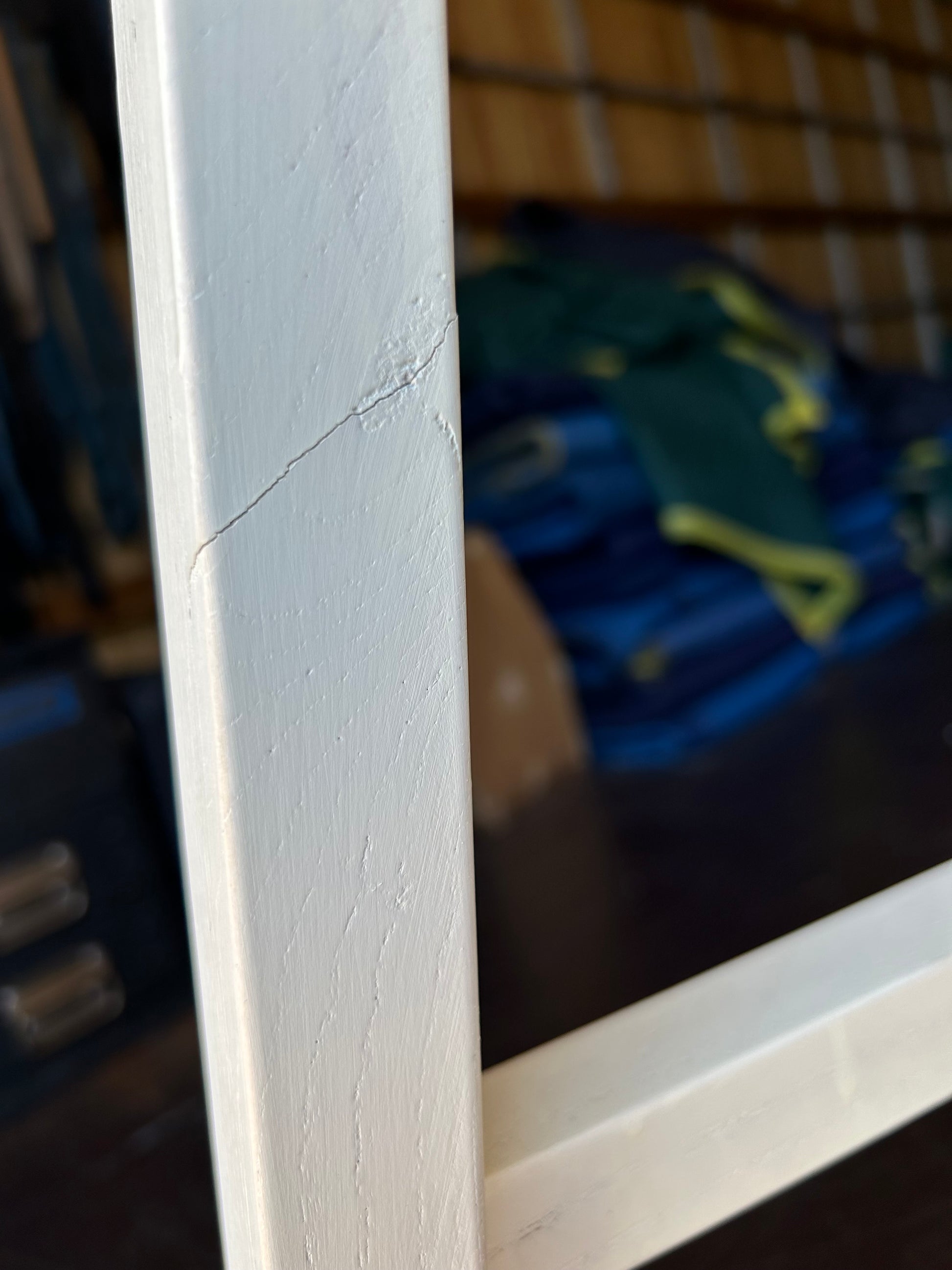 Single Parisienne Stool - White & Oak. Crack in one leg, see photos.