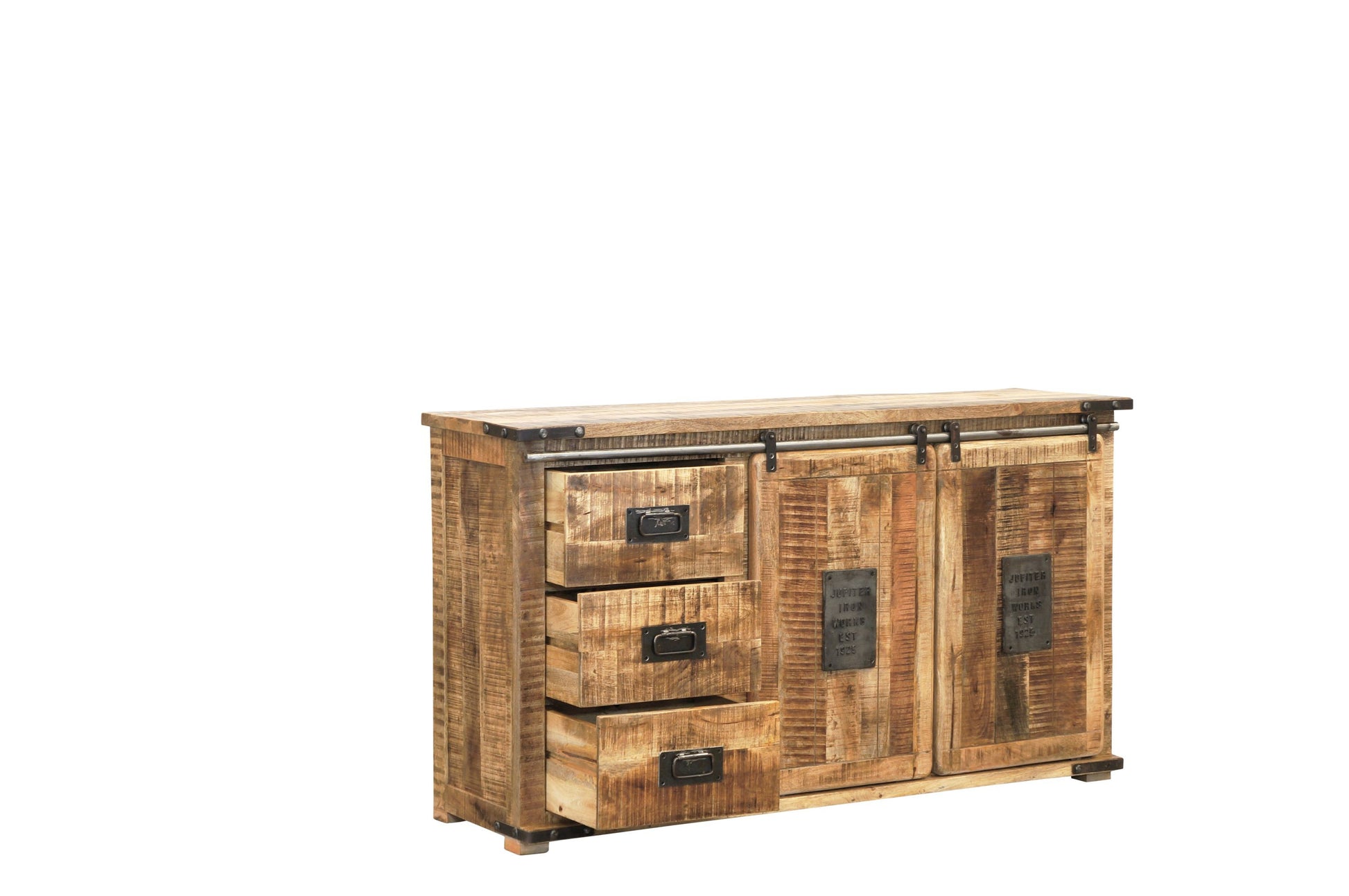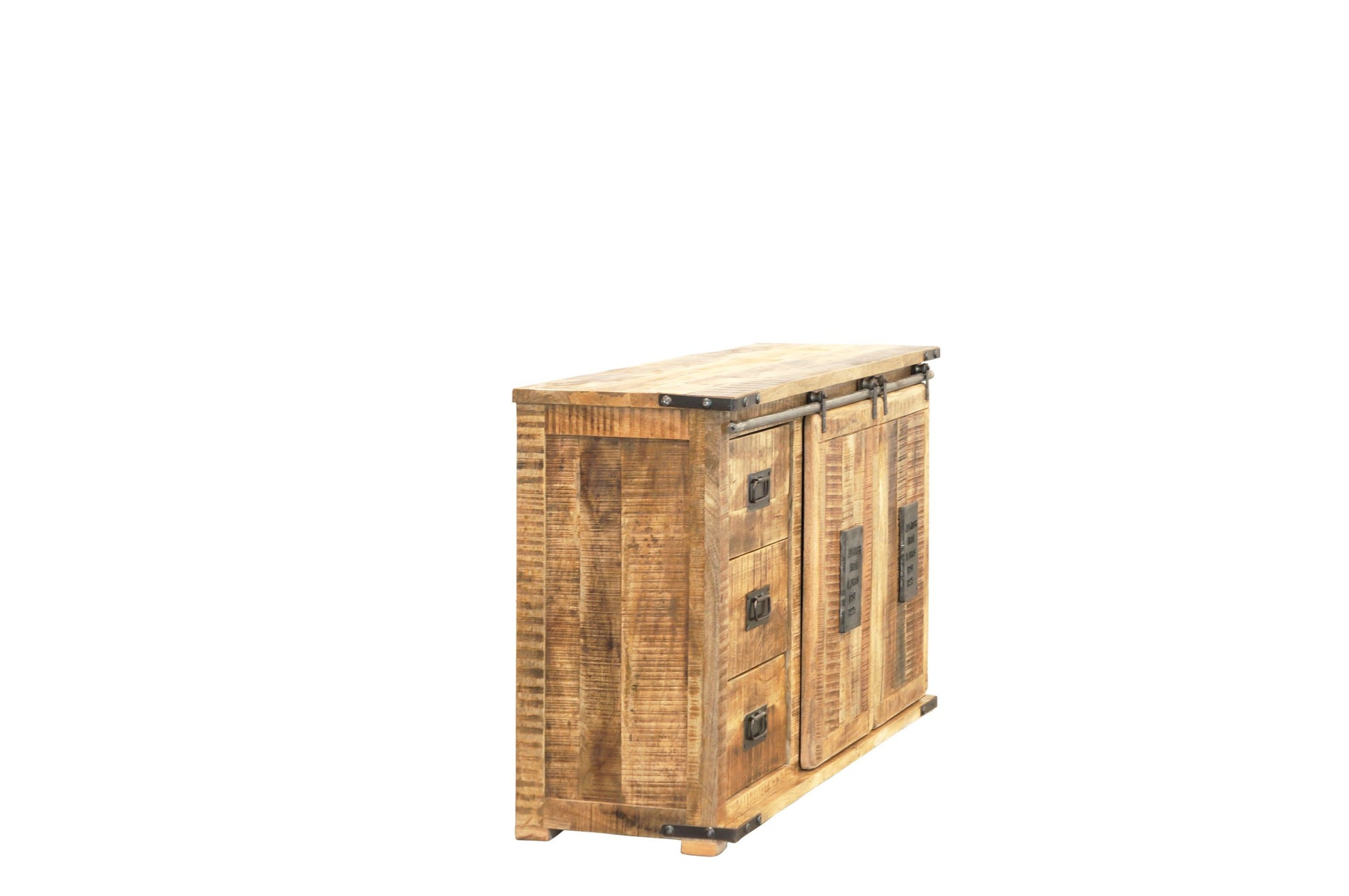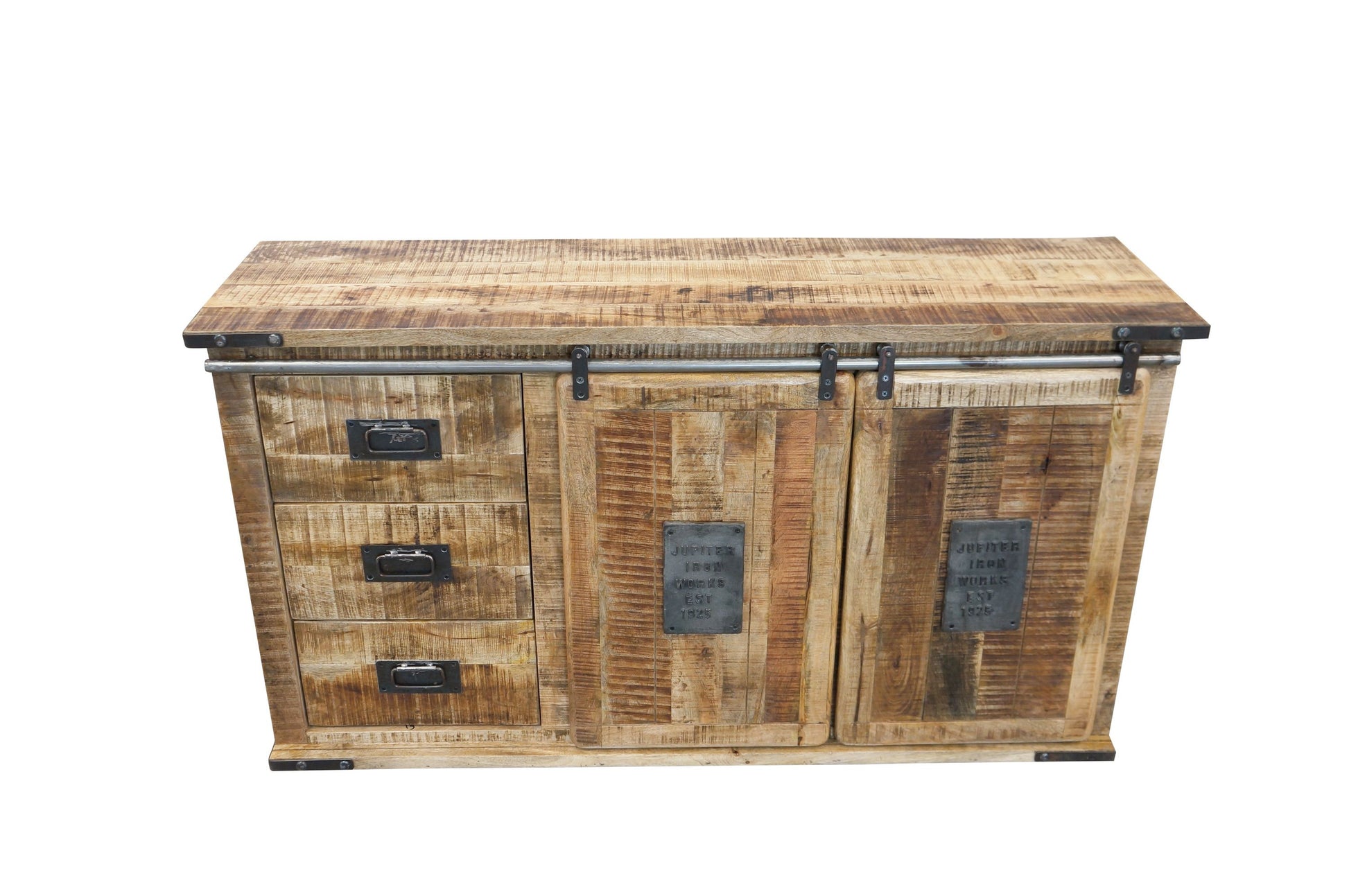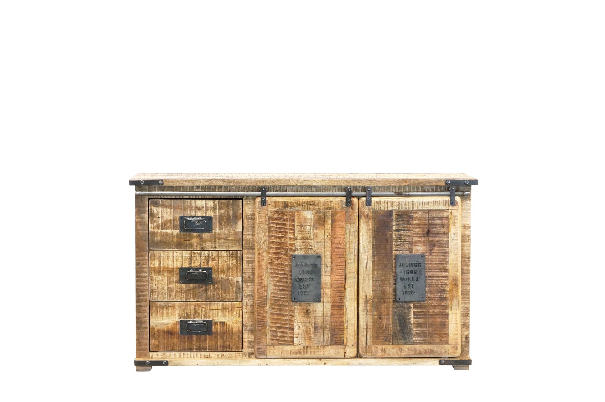 The Forge Buffet is a classic industrial piece that is made from environmentally responsible mango wood. The Forge range features stunning cast iron plates for a bold industrial look.