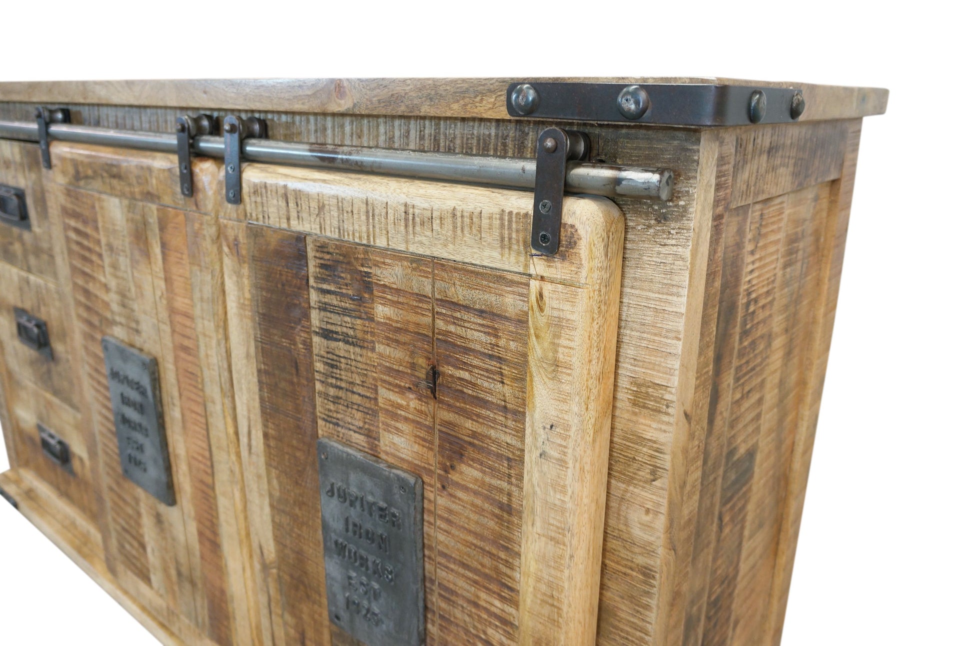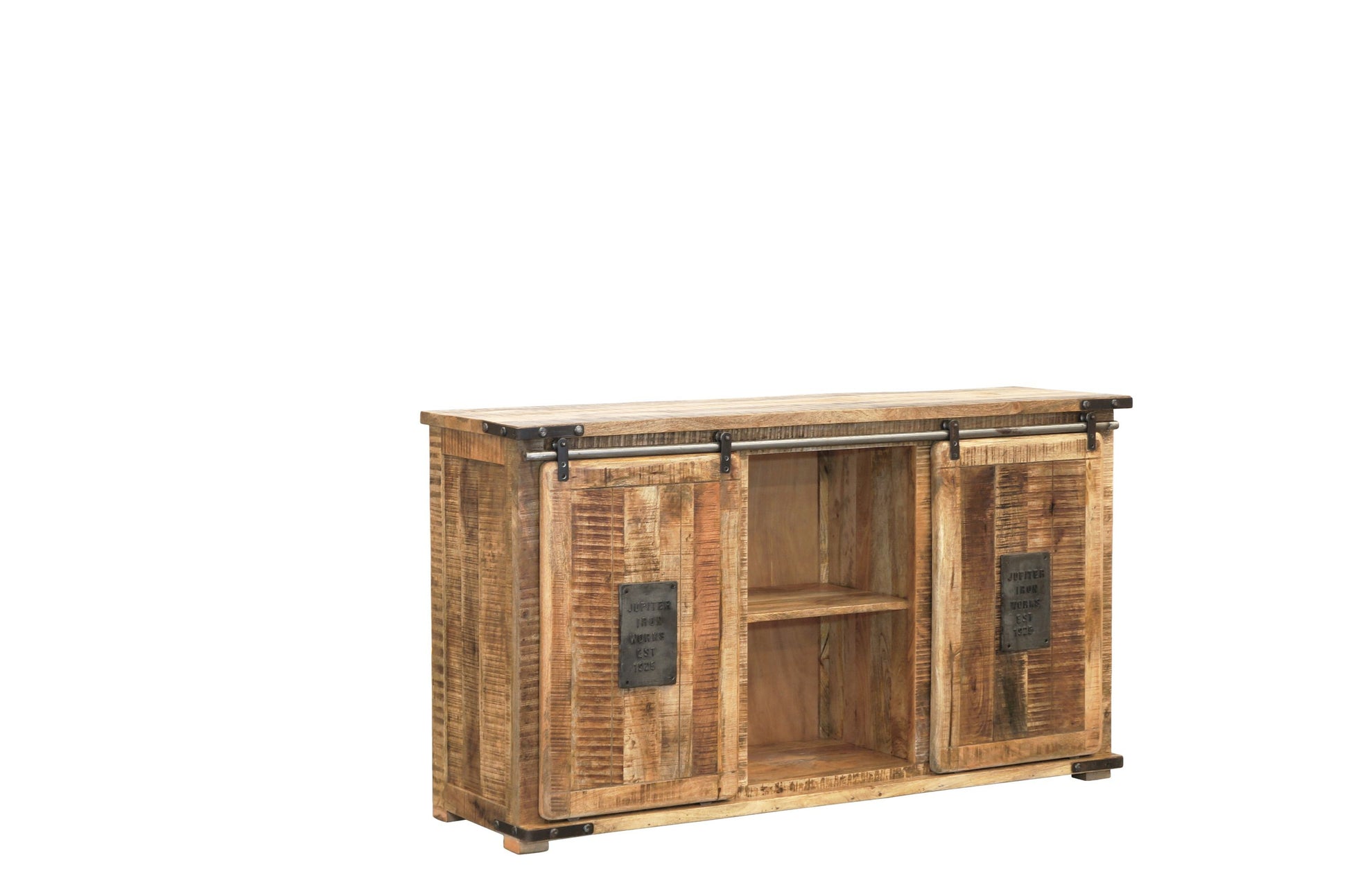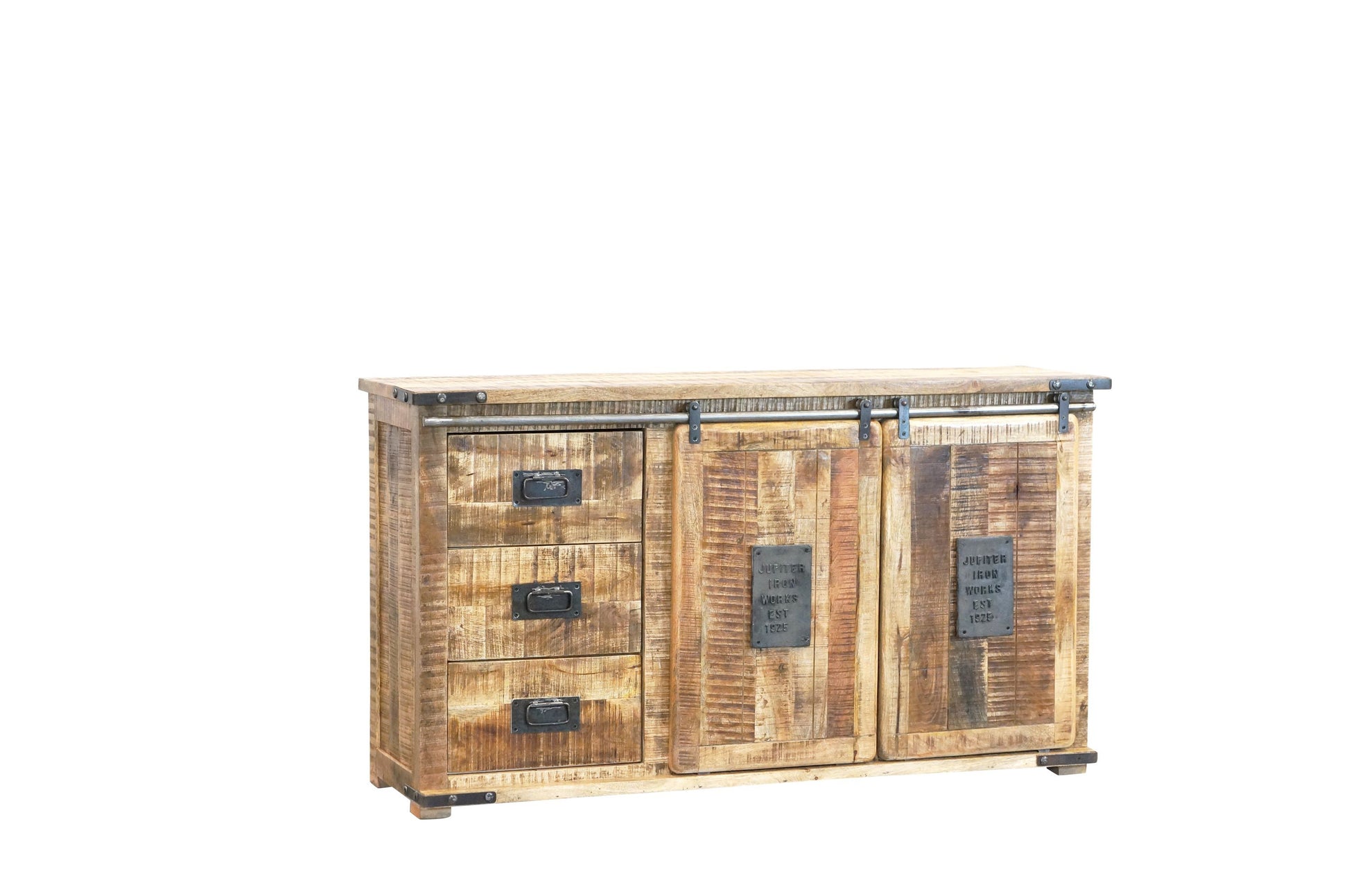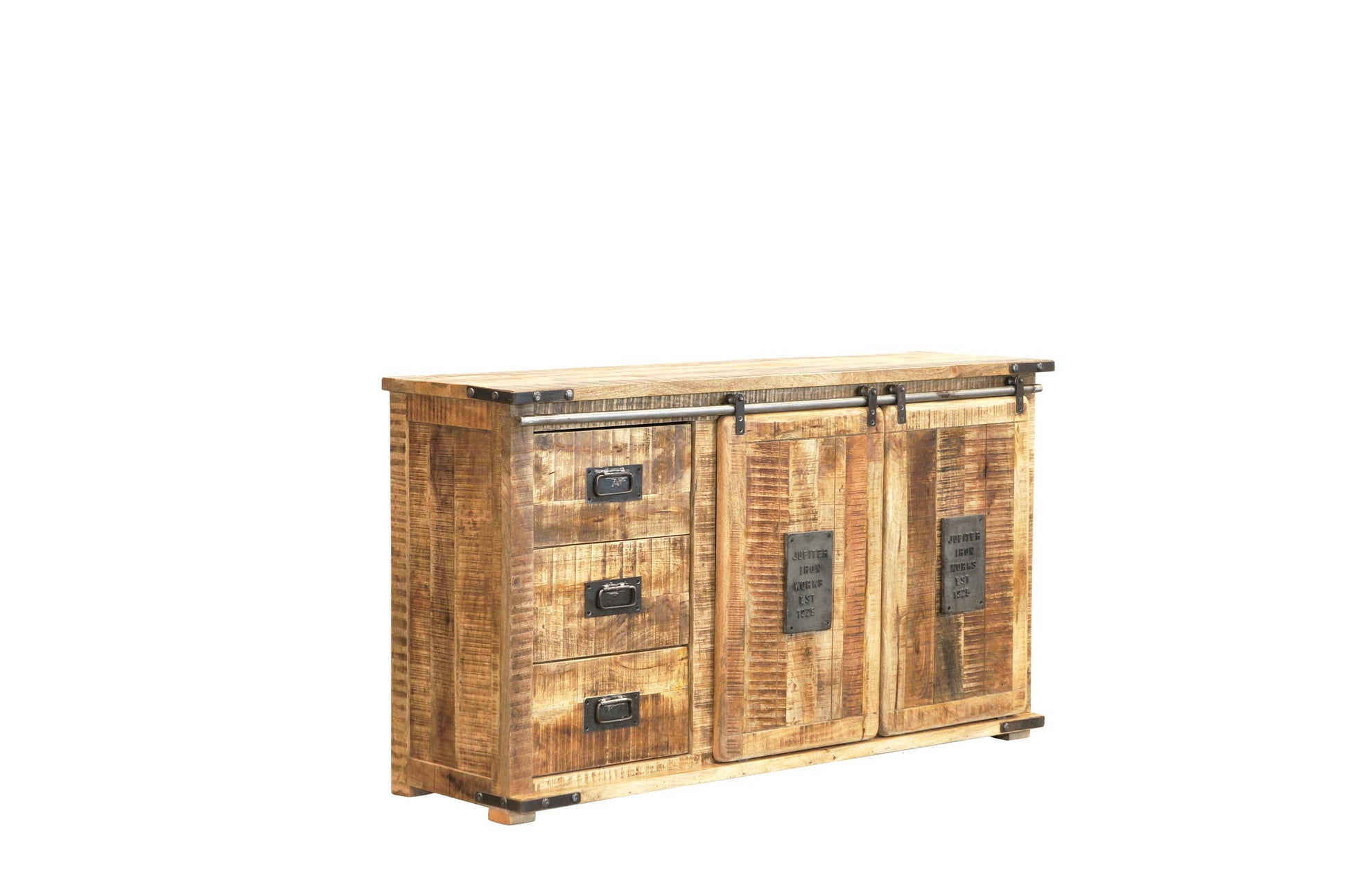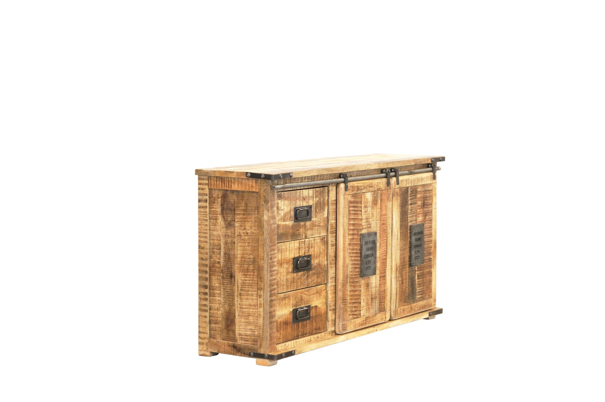 The Forge Buffet is a classic industrial piece that is made from environmentally responsible mango wood. The Forge range features stunning cast iron plates for a bold industrial look.