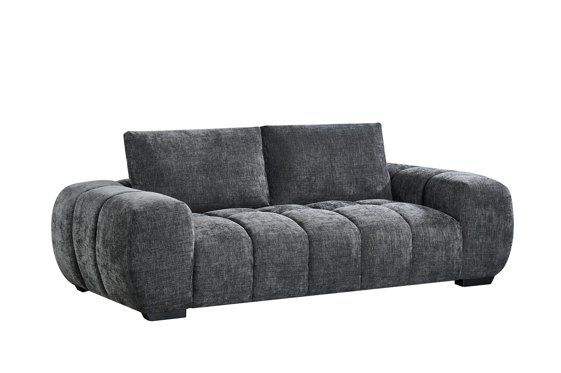 Curved, cushioned, and undeniably comfy – the Glow 3 Seater Sofa is all about bold comfort and contemporary style. Upholstered in a rich charcoal fabric, its plush channel-tufted design brings a sculptural softness to any living room. With deep seats, supportive back cushions, and pillowy armrests, the Glow invites you to lounge in total relaxation. A statement piece that blends retro inspiration with modern flair.
