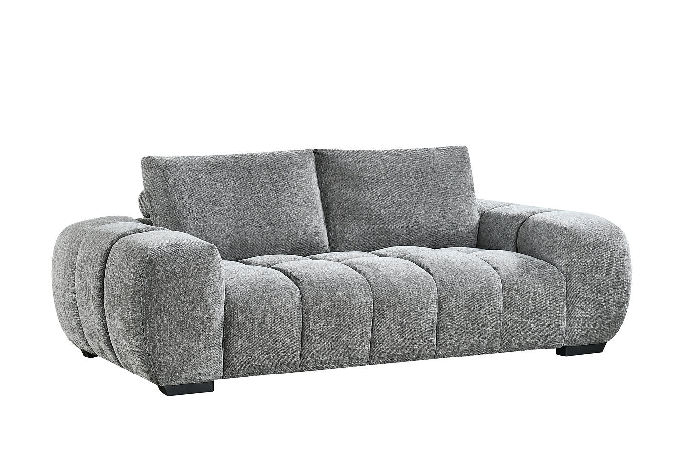 Curved, cushioned, and undeniably comfy – the Glow 3 Seater Sofa is all about bold comfort and contemporary style. Upholstered in a rich graphite fabric, its plush channel-tufted design brings a sculptural softness to any living room. With deep seats, supportive back cushions, and pillowy armrests, the Glow invites you to lounge in total relaxation. A statement piece that blends retro inspiration with modern flair.