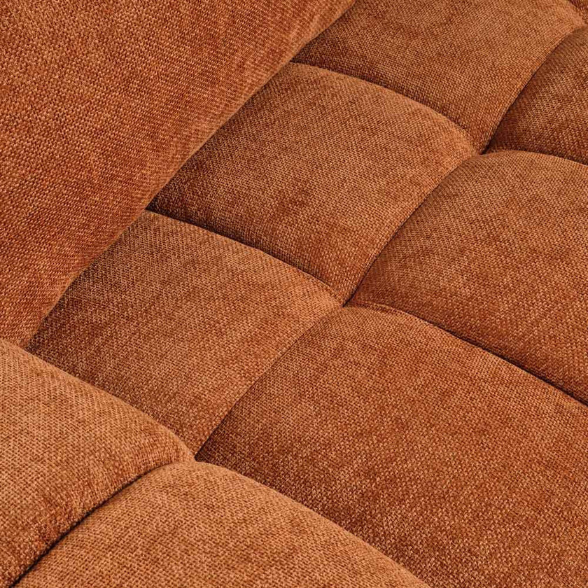 Curved, cushioned, and undeniably comfy – the Glow 3 Seater Sofa is all about bold comfort and contemporary style. Upholstered in a rich rust fabric, its plush channel-tufted design brings a sculptural softness to any living room. With deep seats, supportive back cushions, and pillowy armrests, the Glow invites you to lounge in total relaxation. A statement piece that blends retro inspiration with modern flair.
