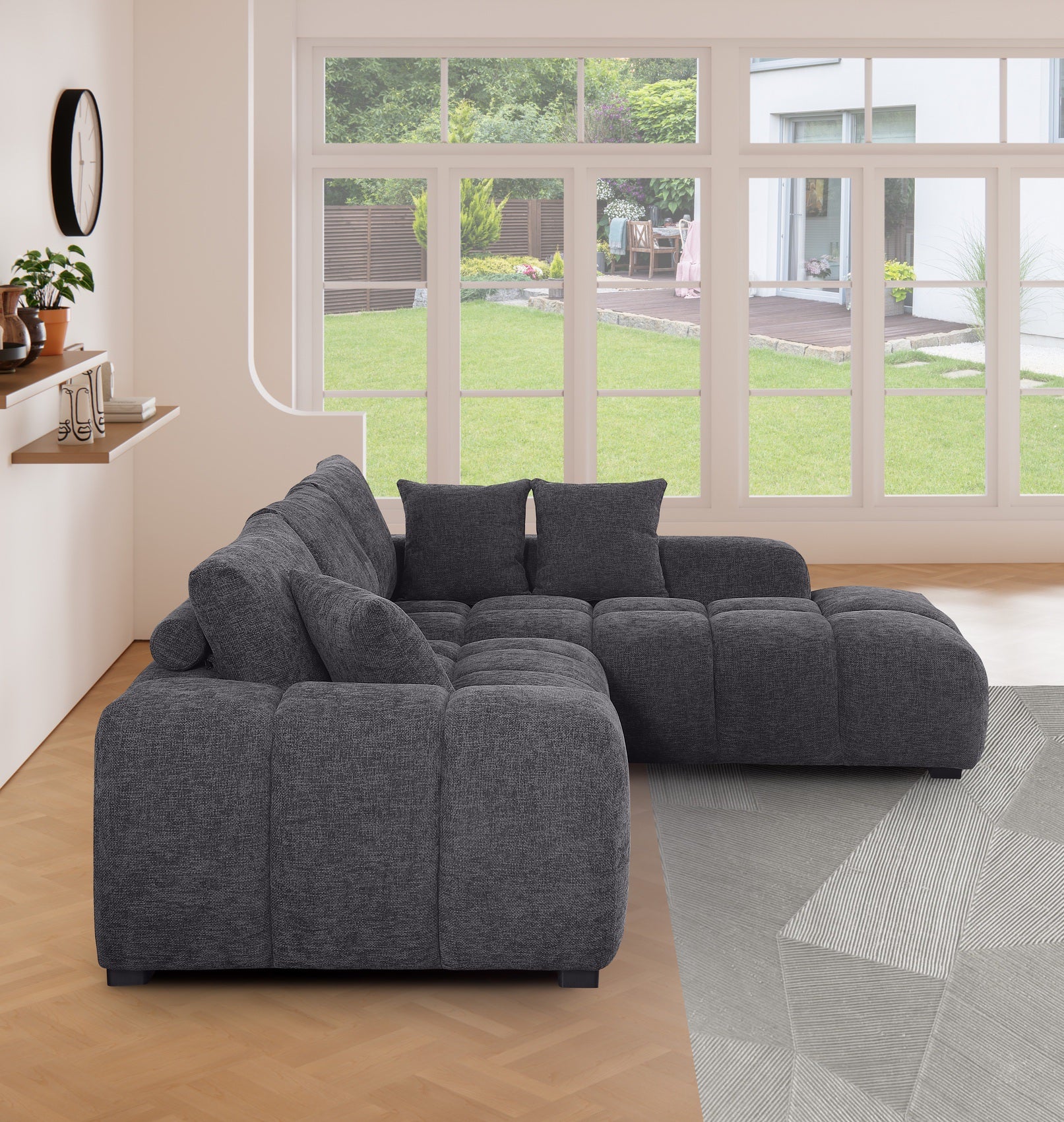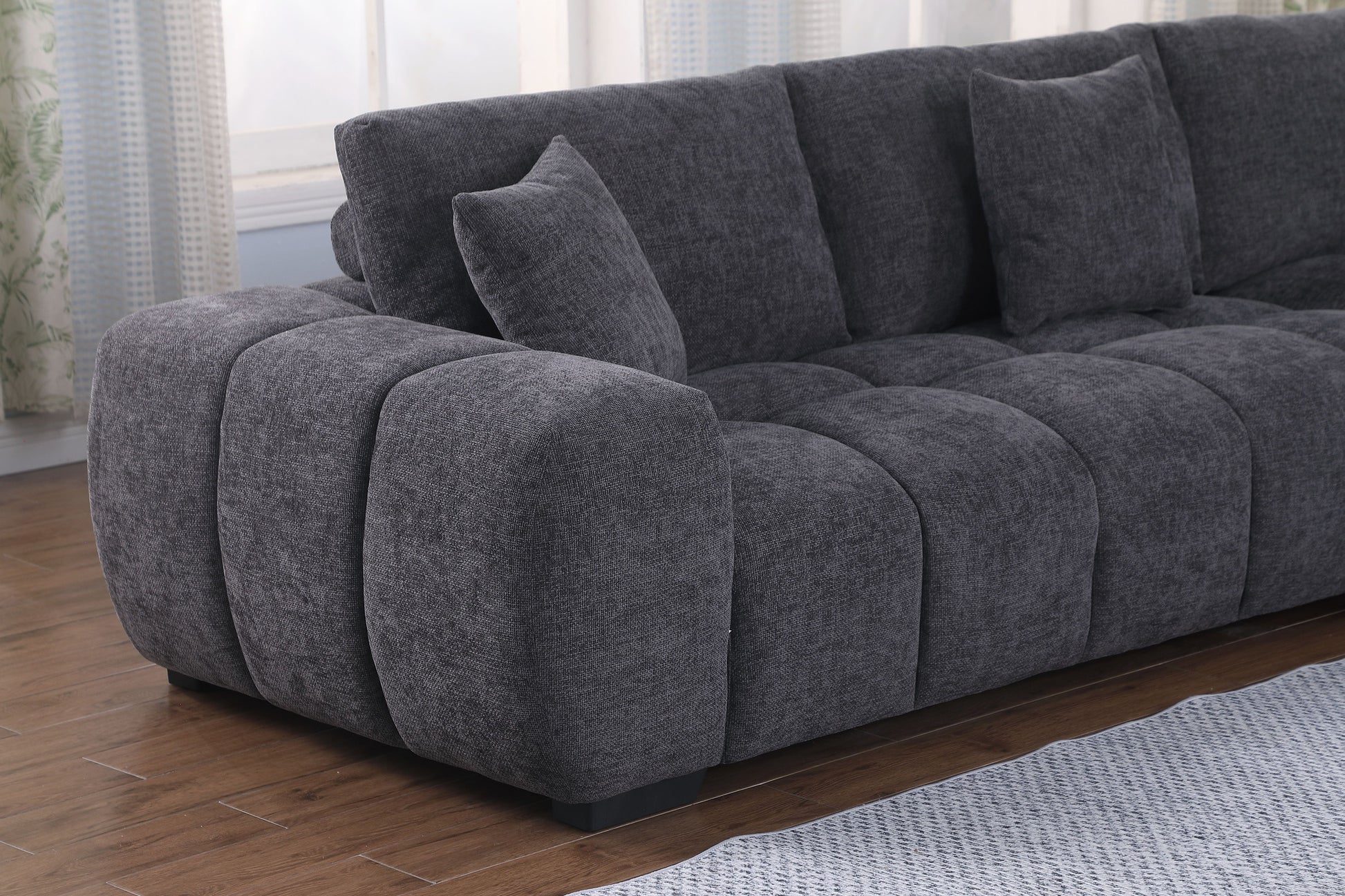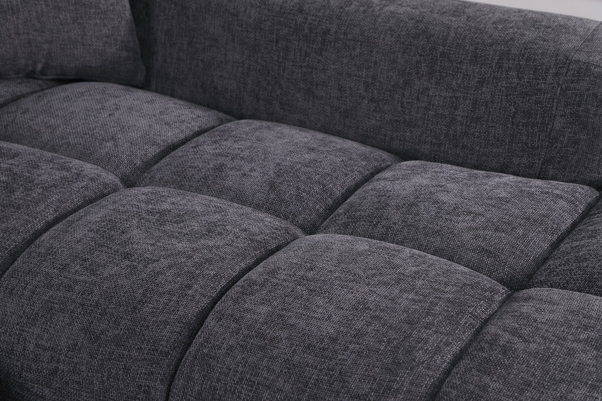 Curved, cushioned, and undeniably comfy – the Glow 3 Seater Sofa is all about bold comfort and contemporary style. Upholstered in a rich charcoal fabric, its plush channel-tufted design brings a sculptural softness to any living room. With deep seats, supportive back cushions, and pillowy armrests, the Glow invites you to lounge in total relaxation. A statement piece that blends retro inspiration with modern flair.