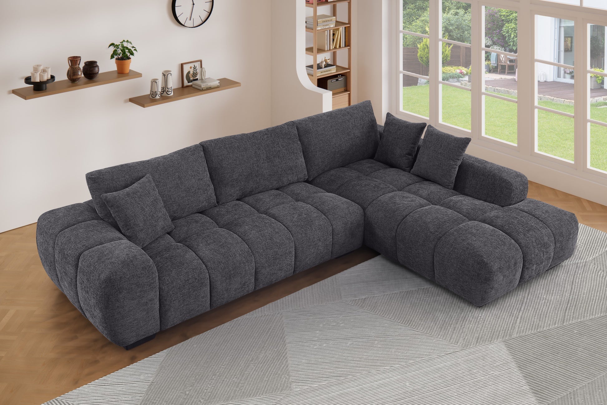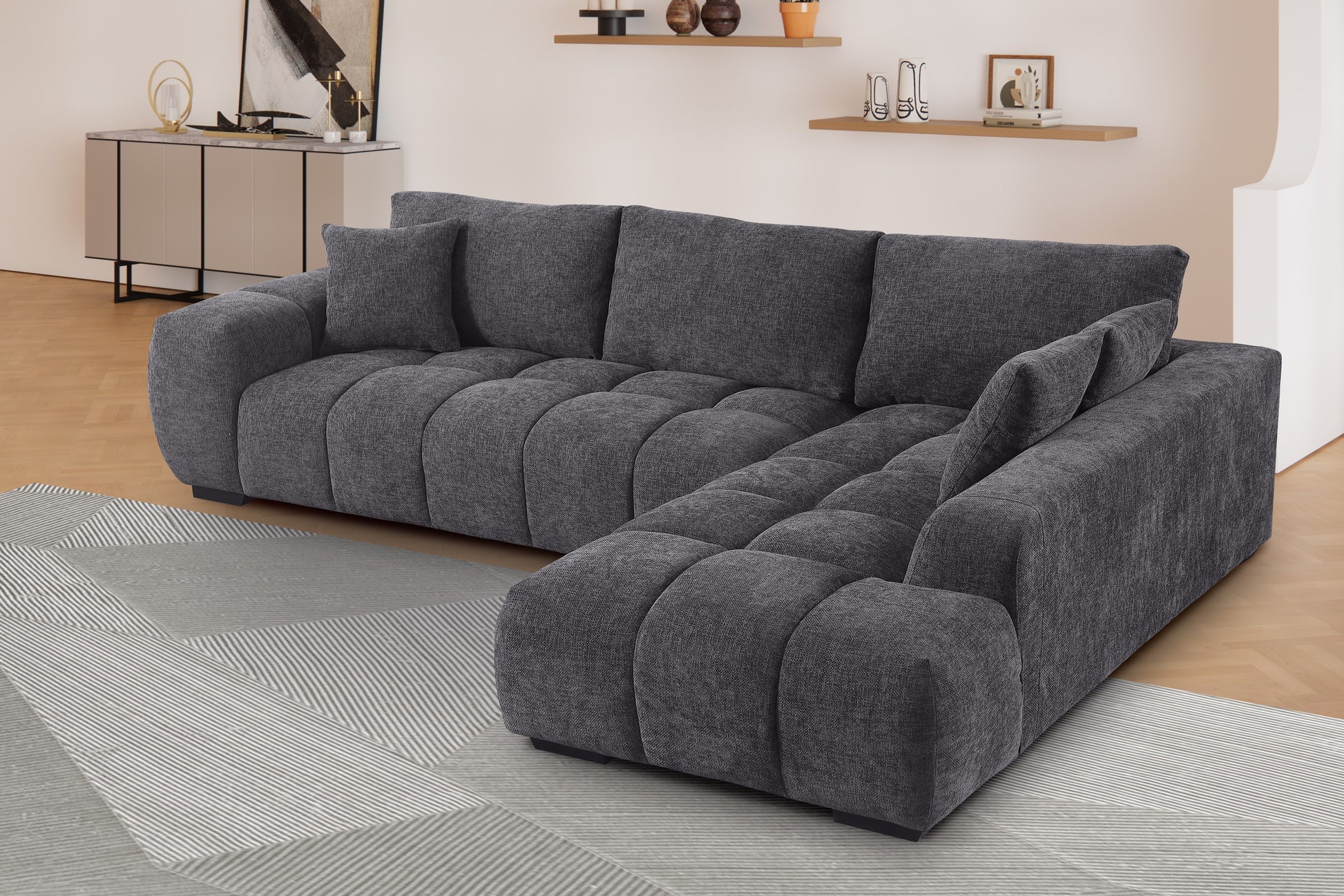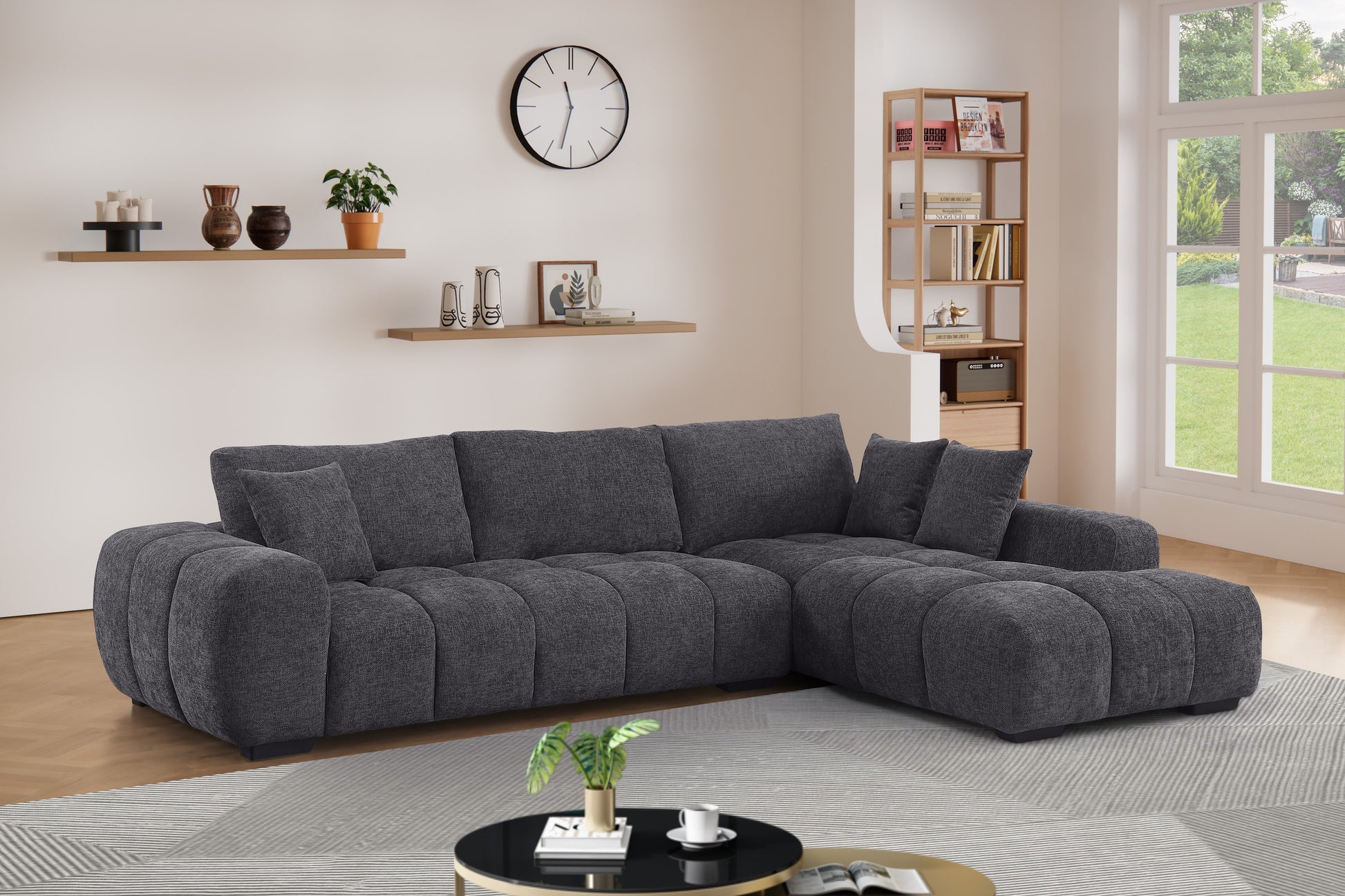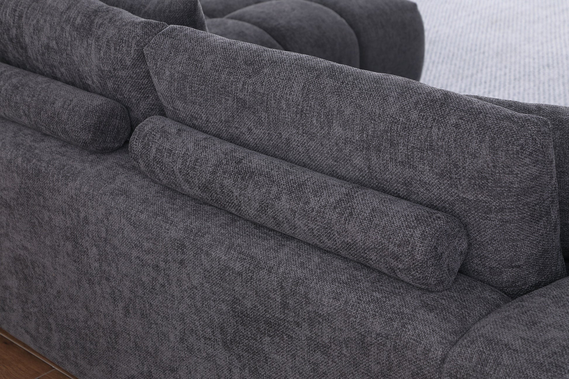 Curved, cushioned, and undeniably comfy – the Glow 3 Seater Sofa is all about bold comfort and contemporary style. Upholstered in a rich charcoal fabric, its plush channel-tufted design brings a sculptural softness to any living room. With deep seats, supportive back cushions, and pillowy armrests, the Glow invites you to lounge in total relaxation. A statement piece that blends retro inspiration with modern flair.