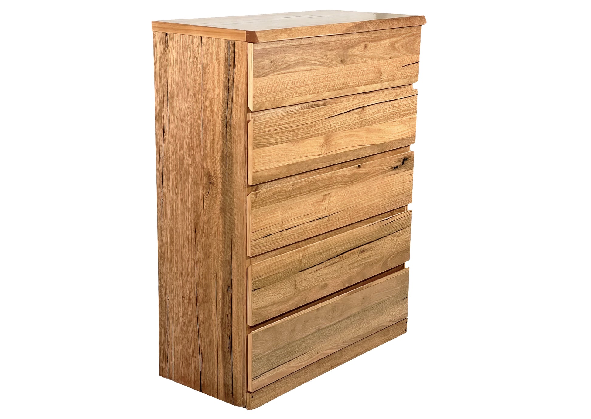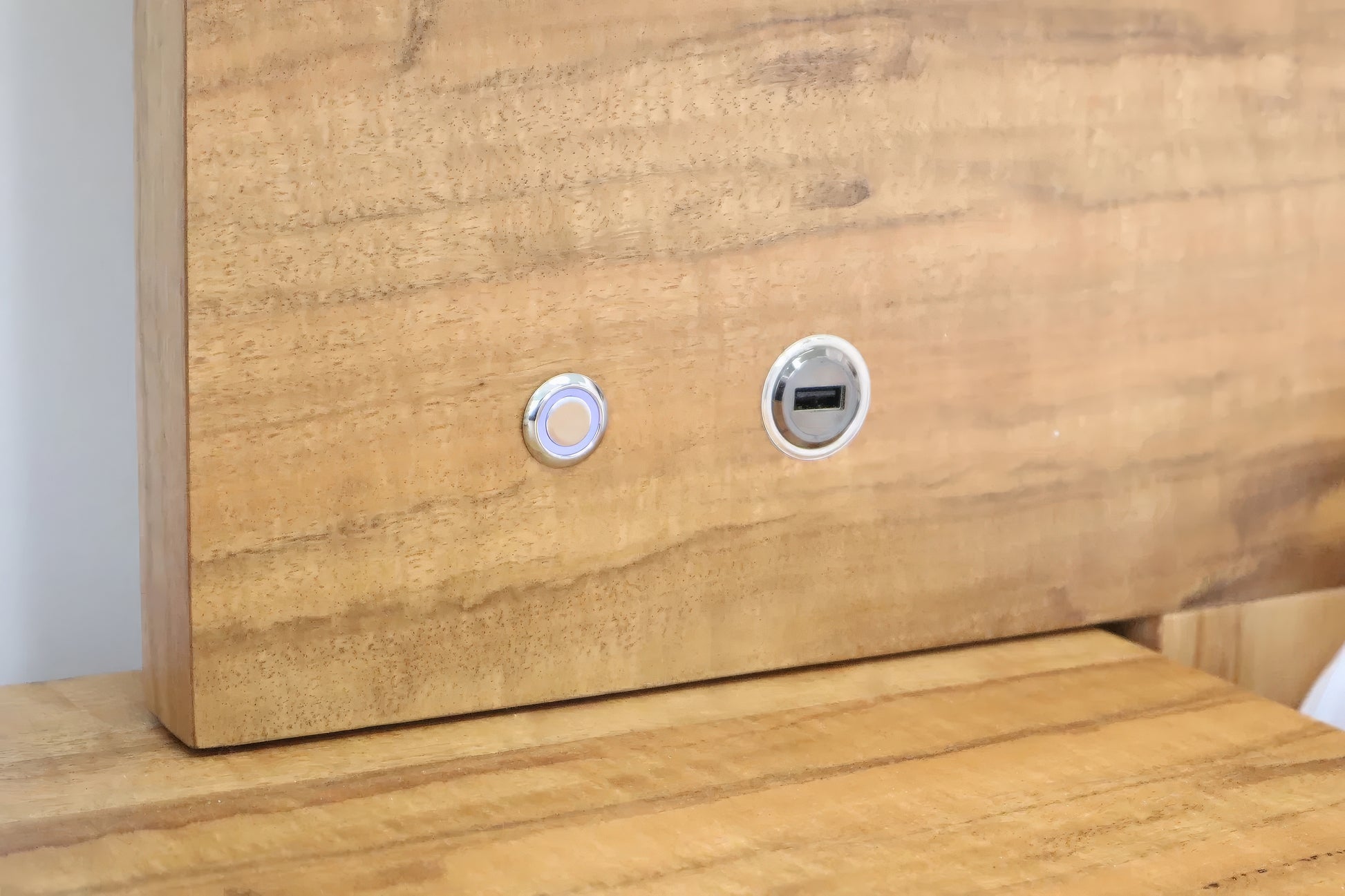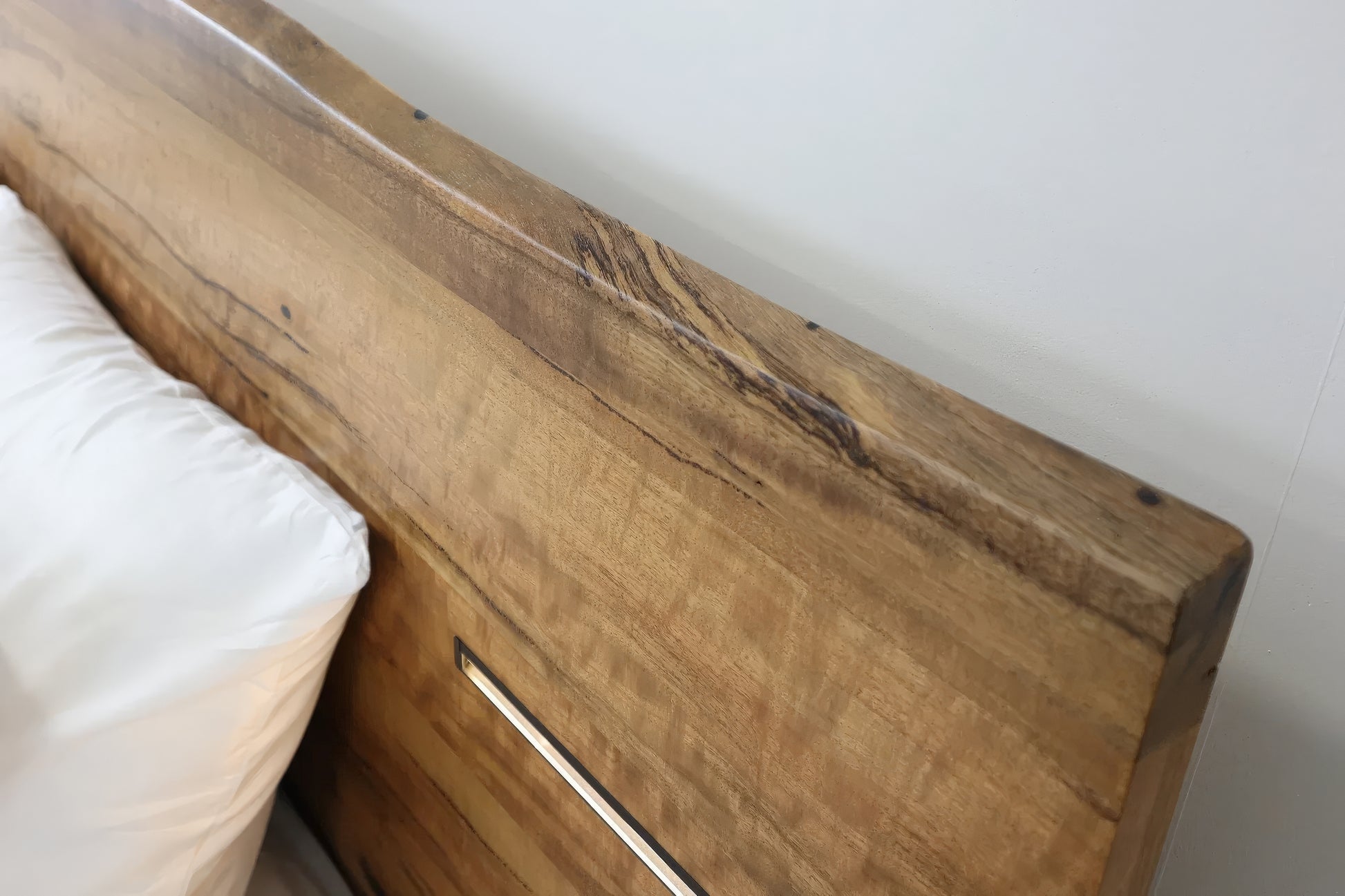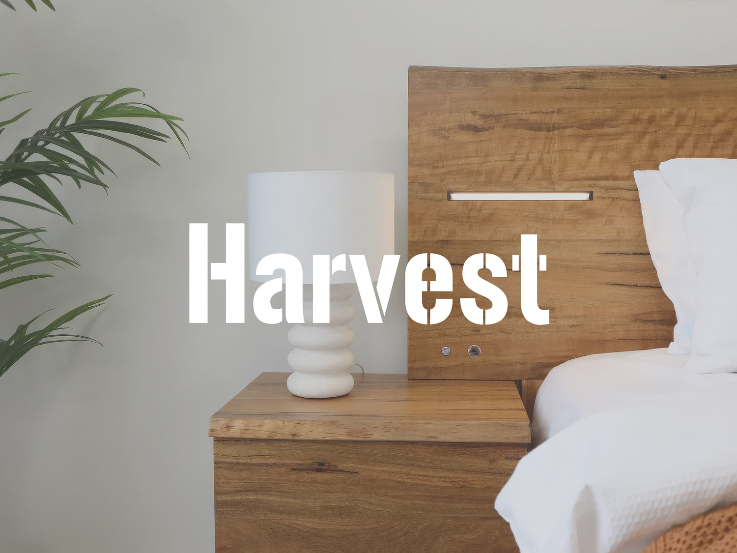 Crafted from striking Marri timber, the Harvest range brings natural warmth and bold character to the bedroom. Featuring rich grain patterns and organic lines, each piece showcases the raw beauty of Australian hardwood. The bed includes integrated ambient lighting and dual USB charging ports for a modern touch of convenience.