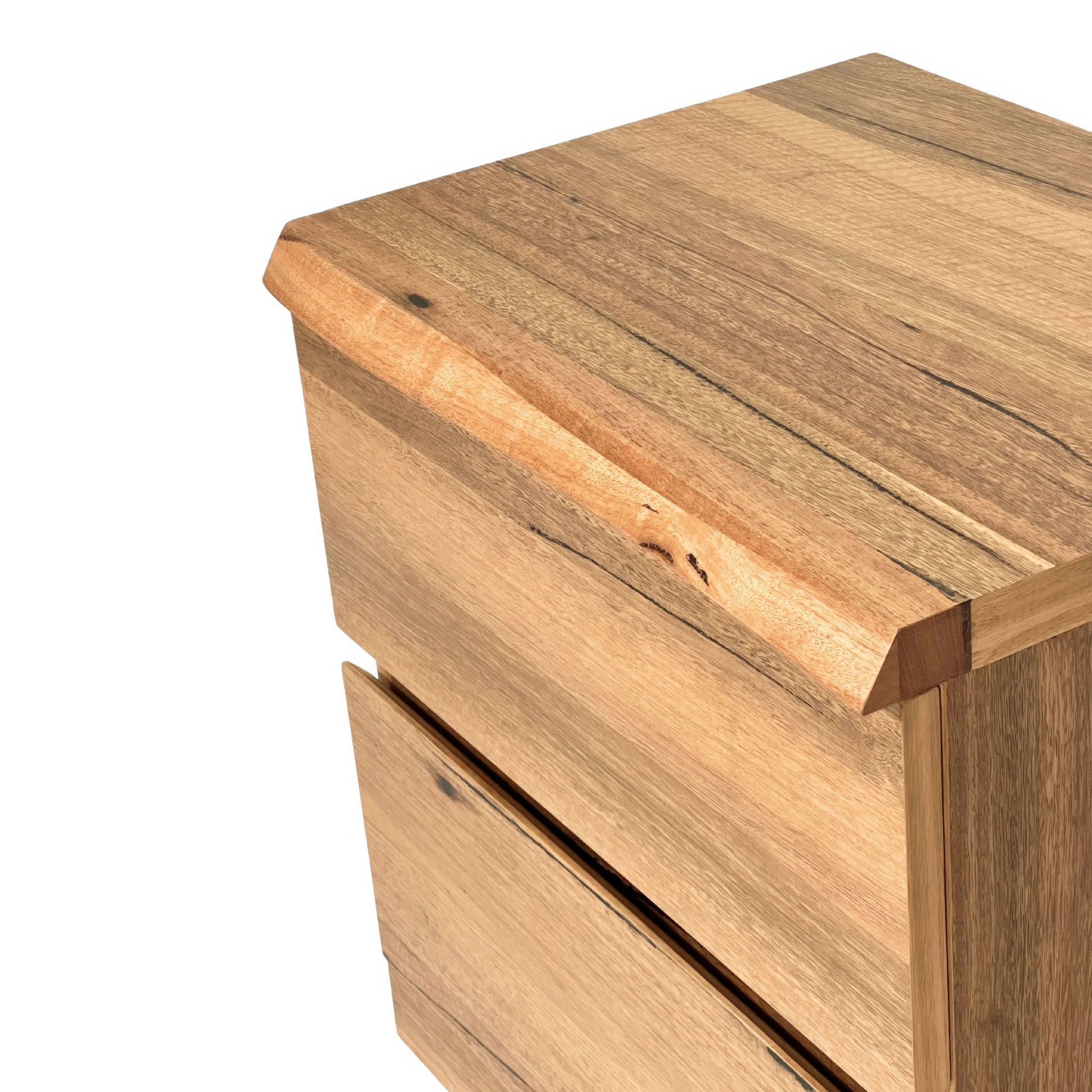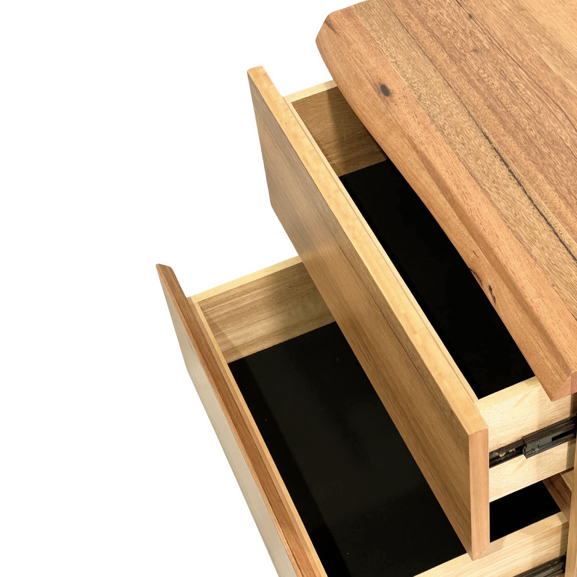Crafted from striking Marri timber, the Harvest range brings natural warmth and bold character to the bedroom. Featuring rich grain patterns and organic lines, each piece showcases the raw beauty of Australian hardwood. The bed includes integrated ambient lighting and dual USB charging ports for a modern touch of convenience.