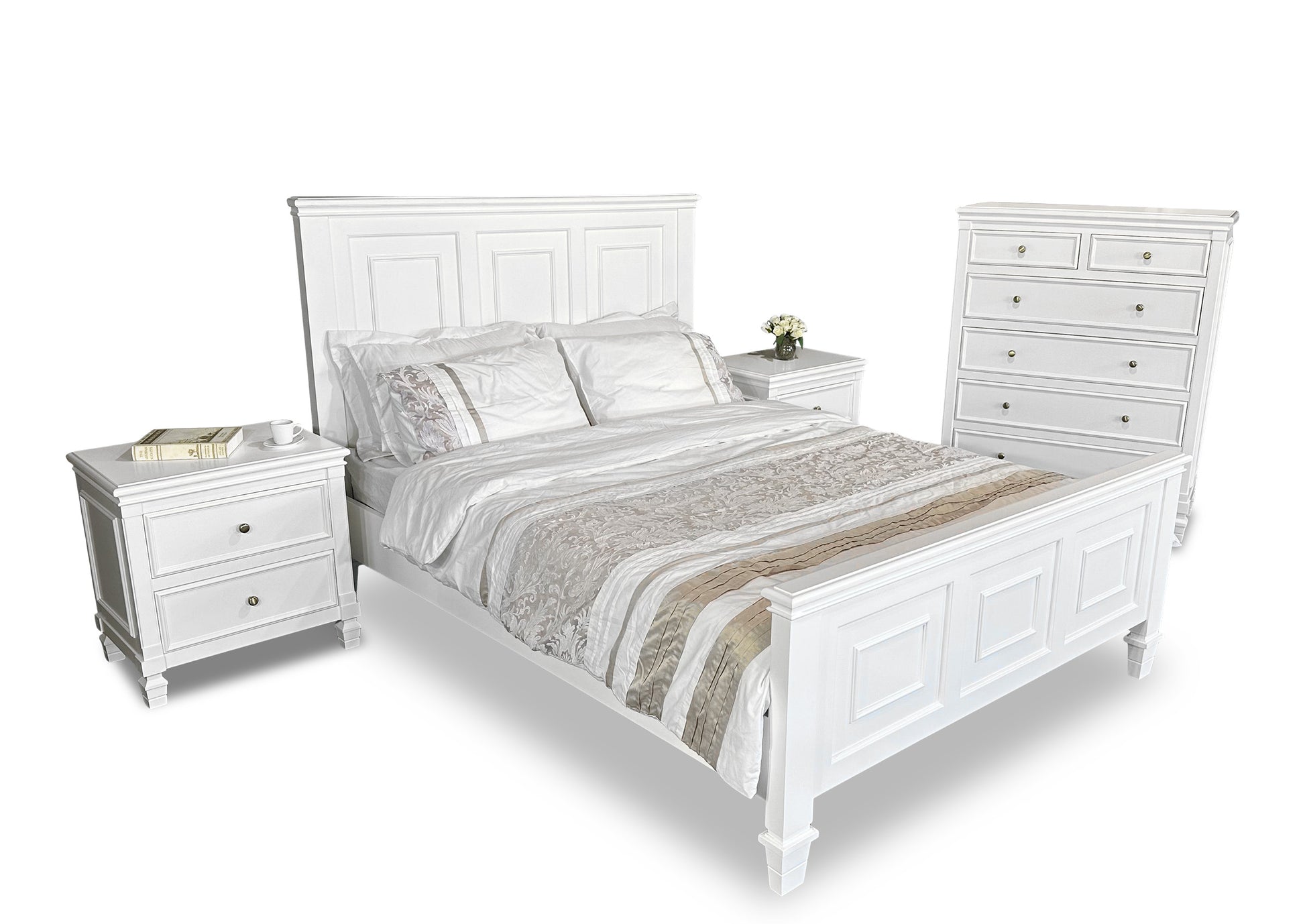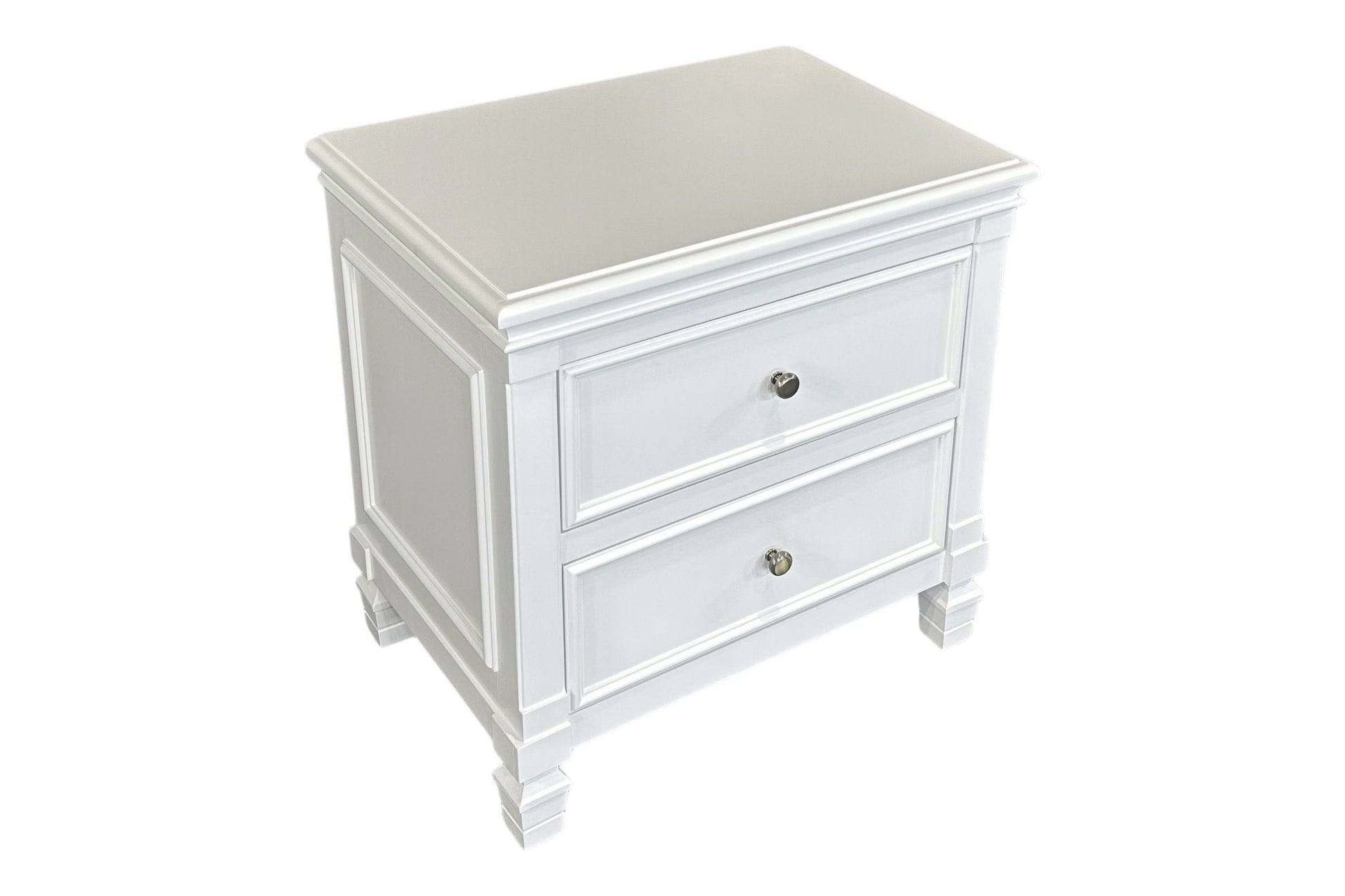 The Haven Bedside Table is is luxury Hamptons at its best. The bedside table features a stunning all white finish, elegant mouldings and felt lined drawers.