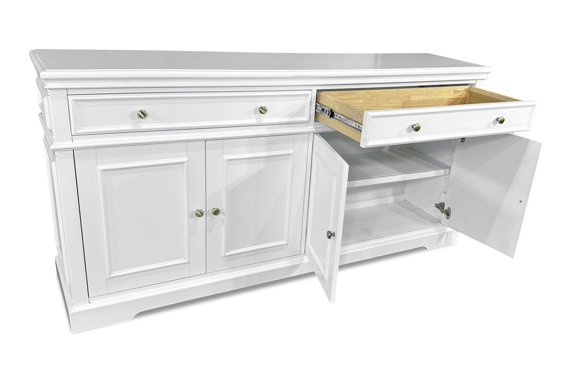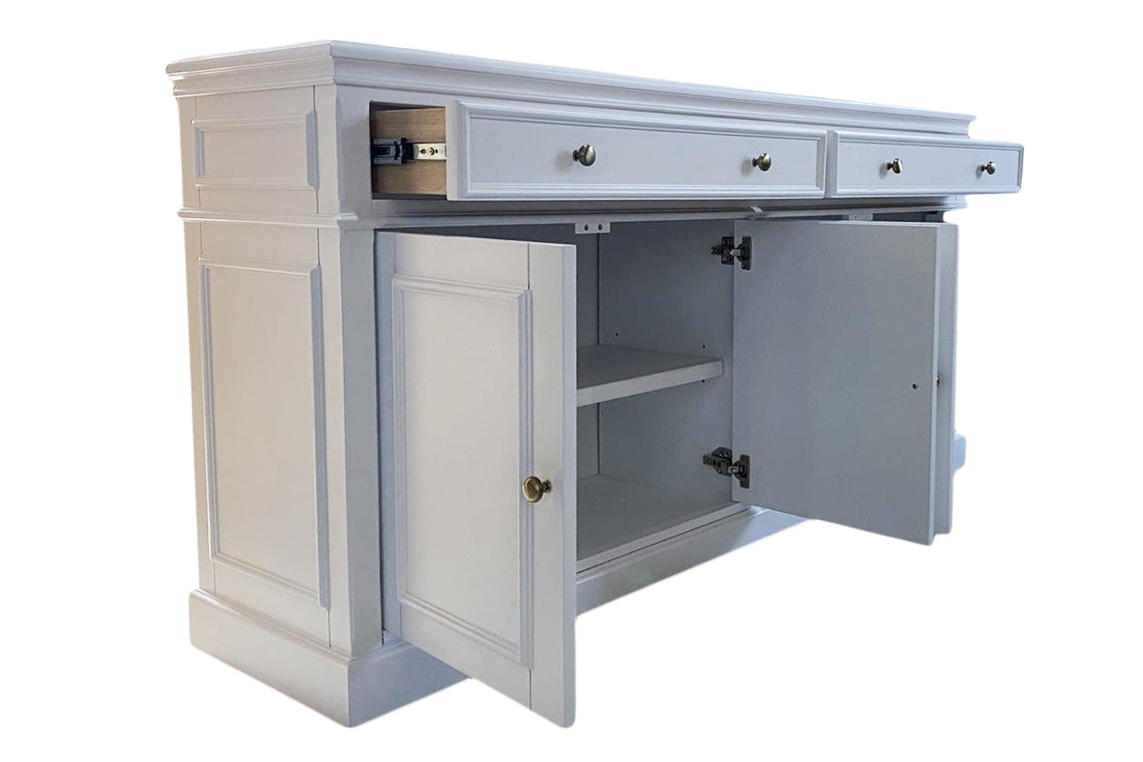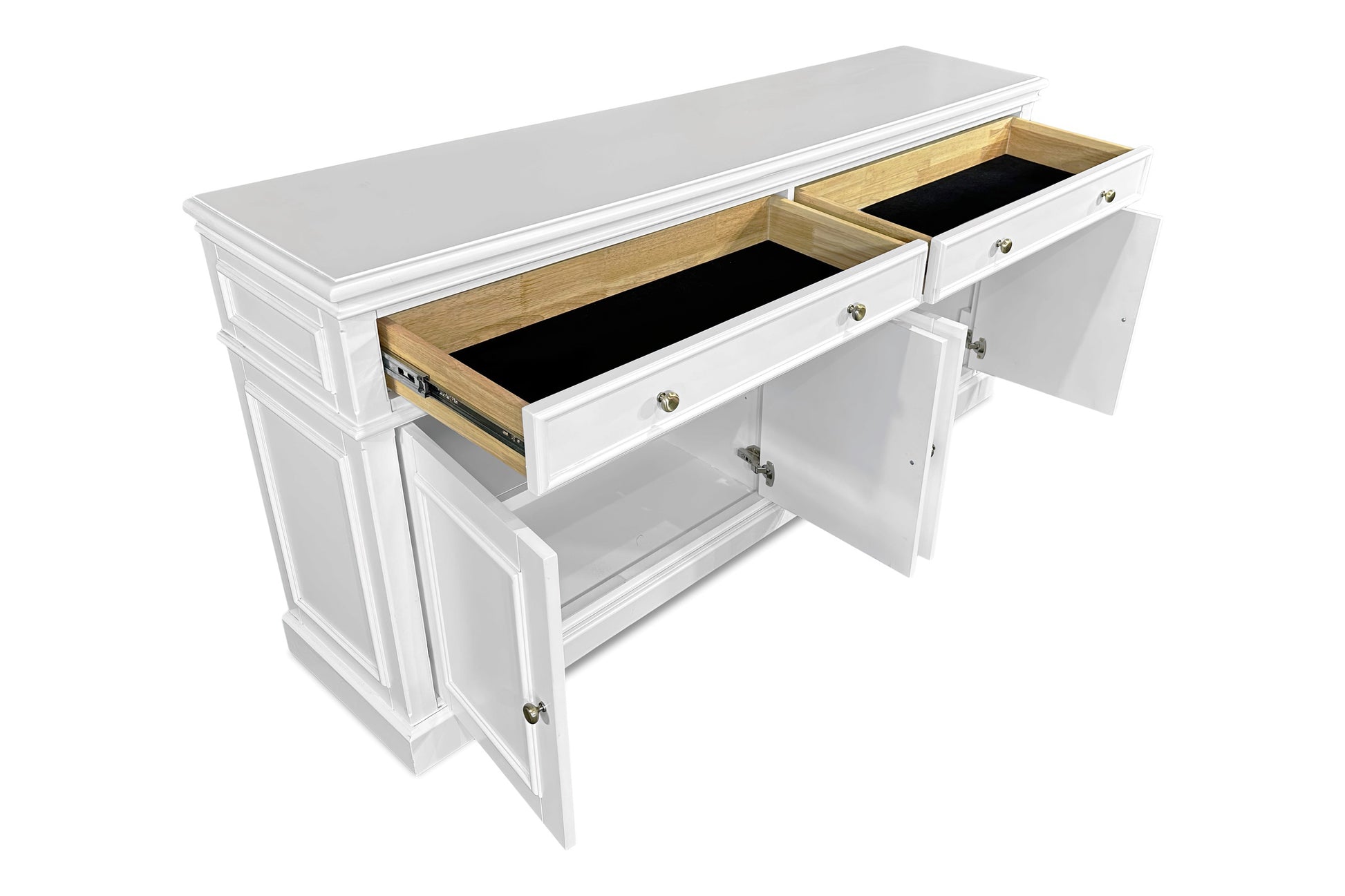 The Haven Buffet is luxury Hamptons at its best. The buffet features a stunning all white finish, elegant mouldings and felt lined drawers.