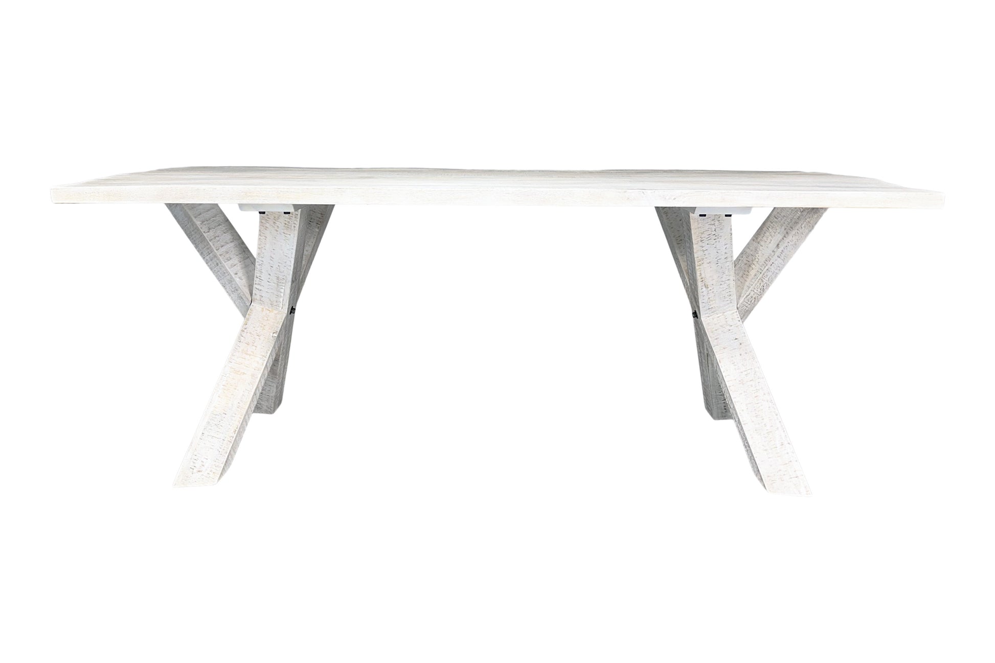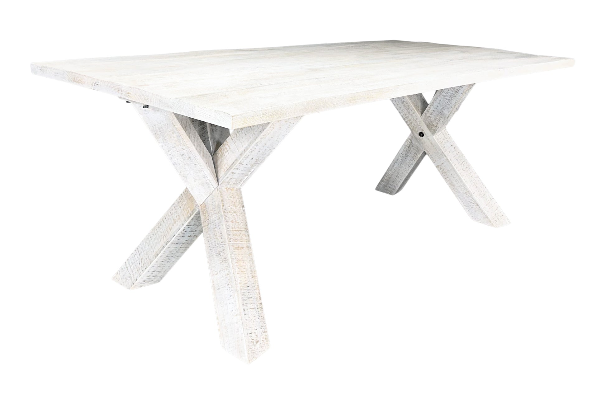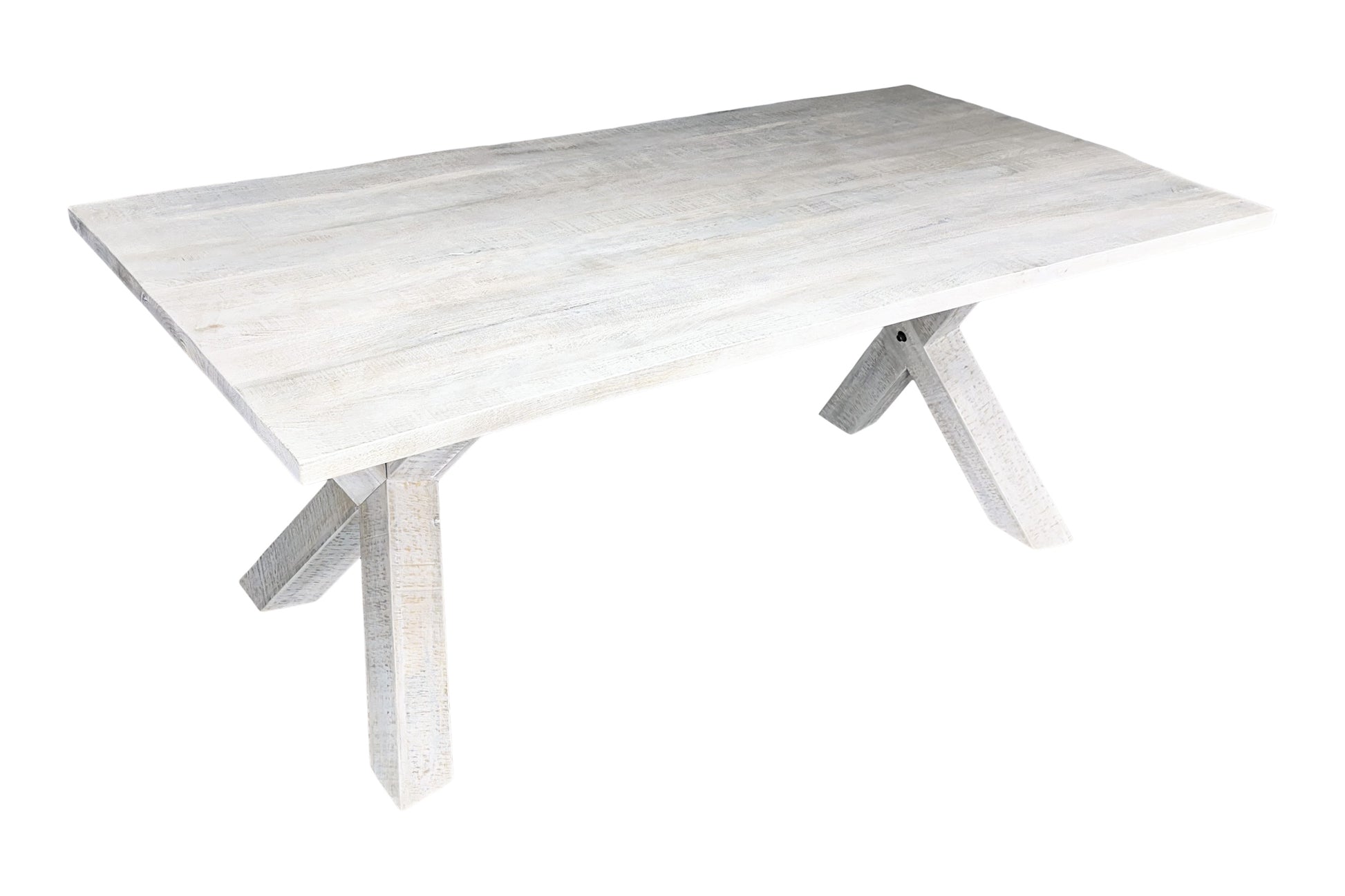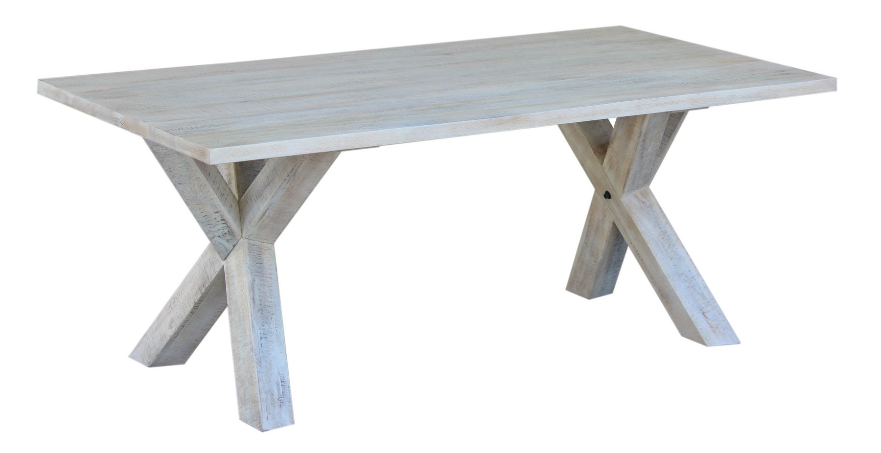 The Headland Dining Table is a charming coastal piece with a natural and worn paint finish. The unit is made from sustainable mango wood and comes fully assembled.