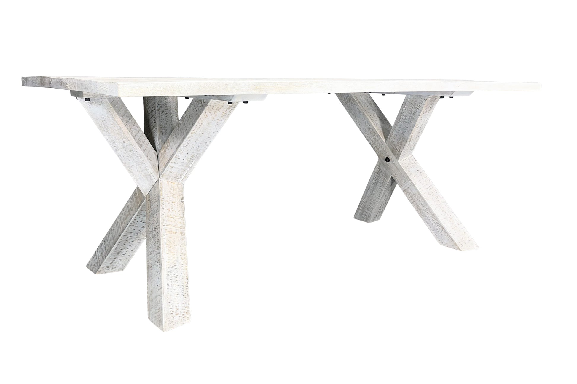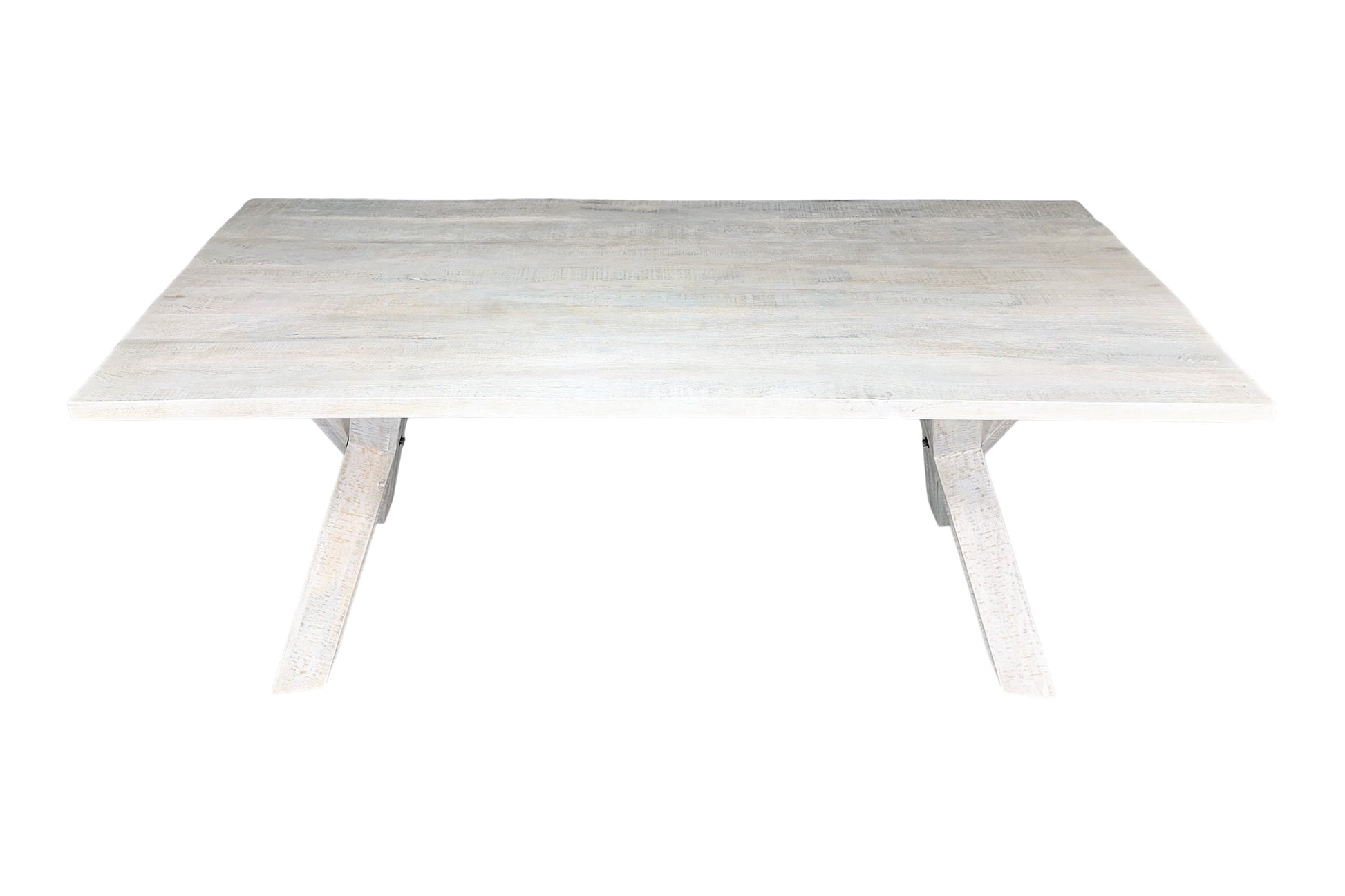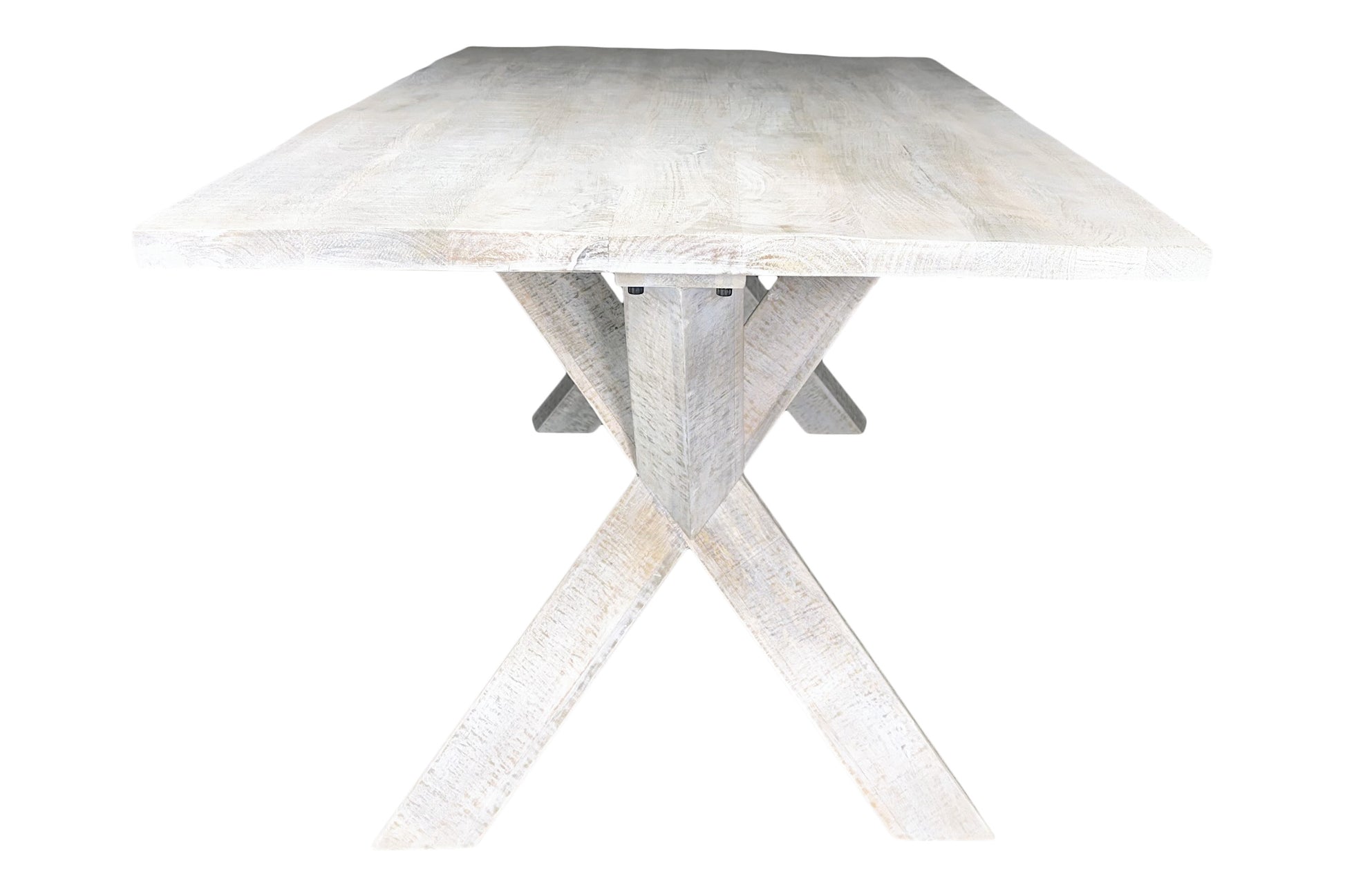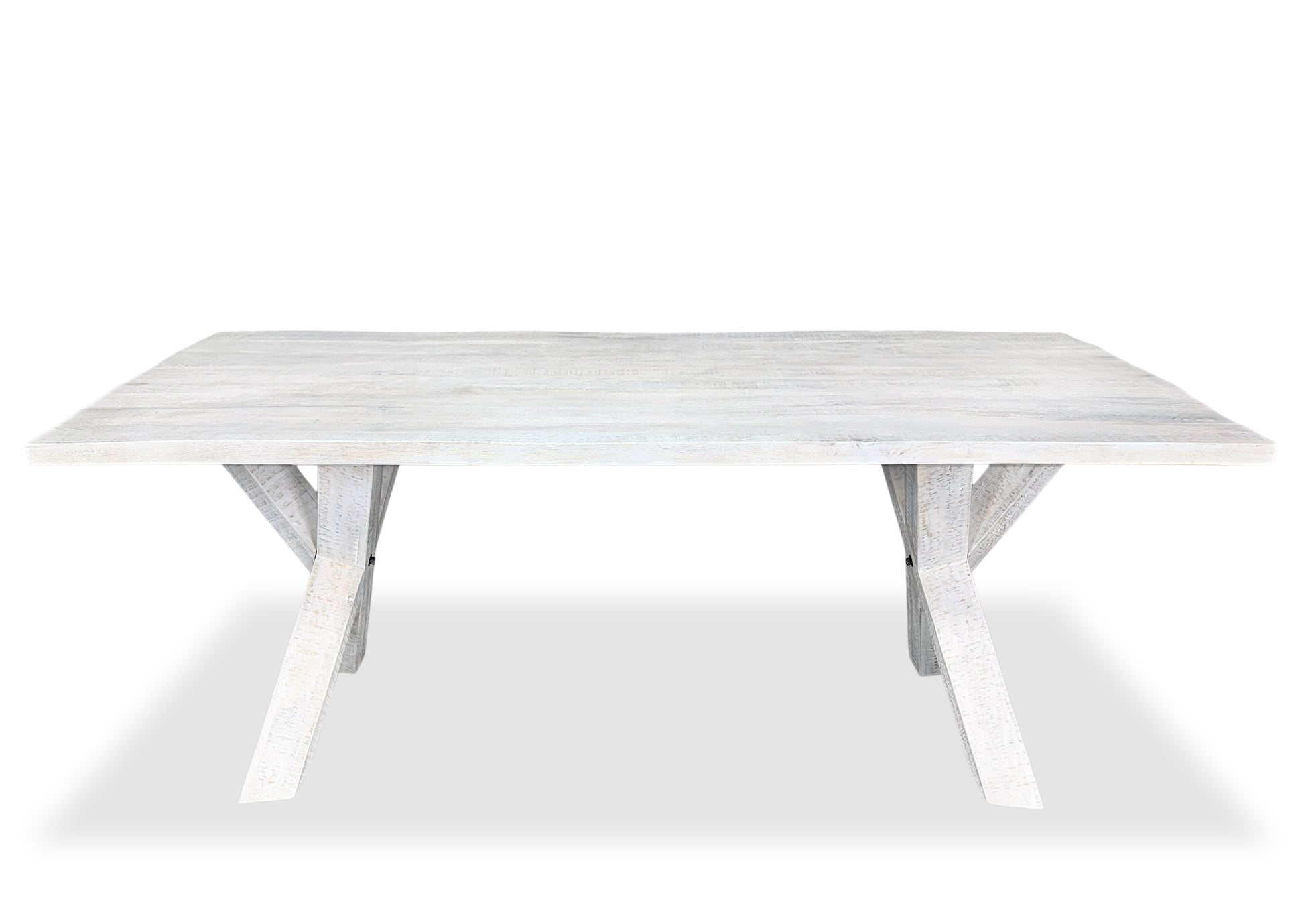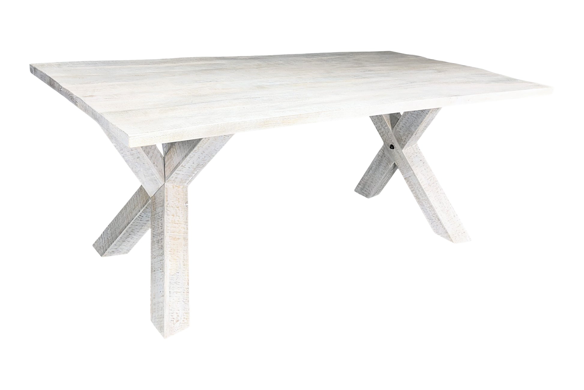 The Headland Dining Table is a charming coastal piece with a natural and worn paint finish. The unit is made from sustainable mango wood and comes fully assembled.