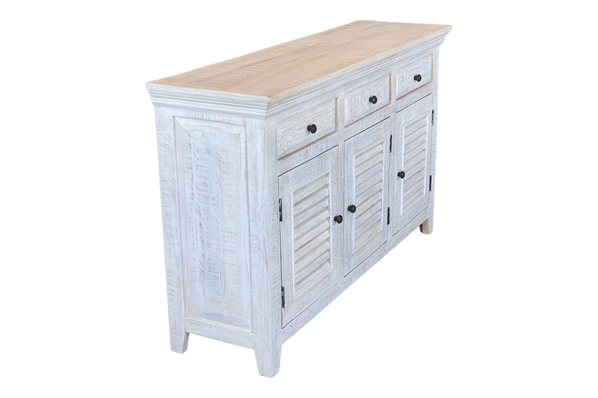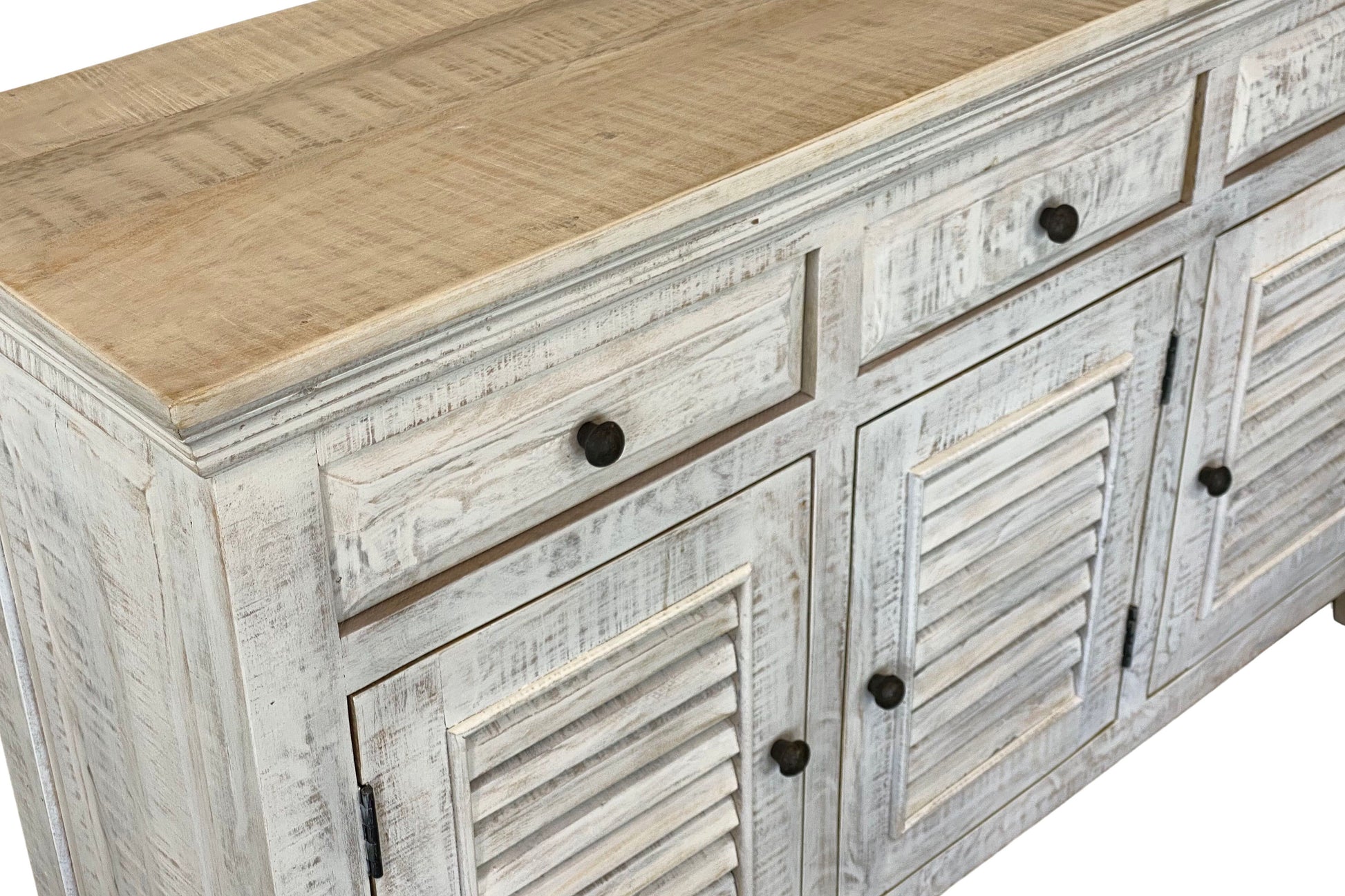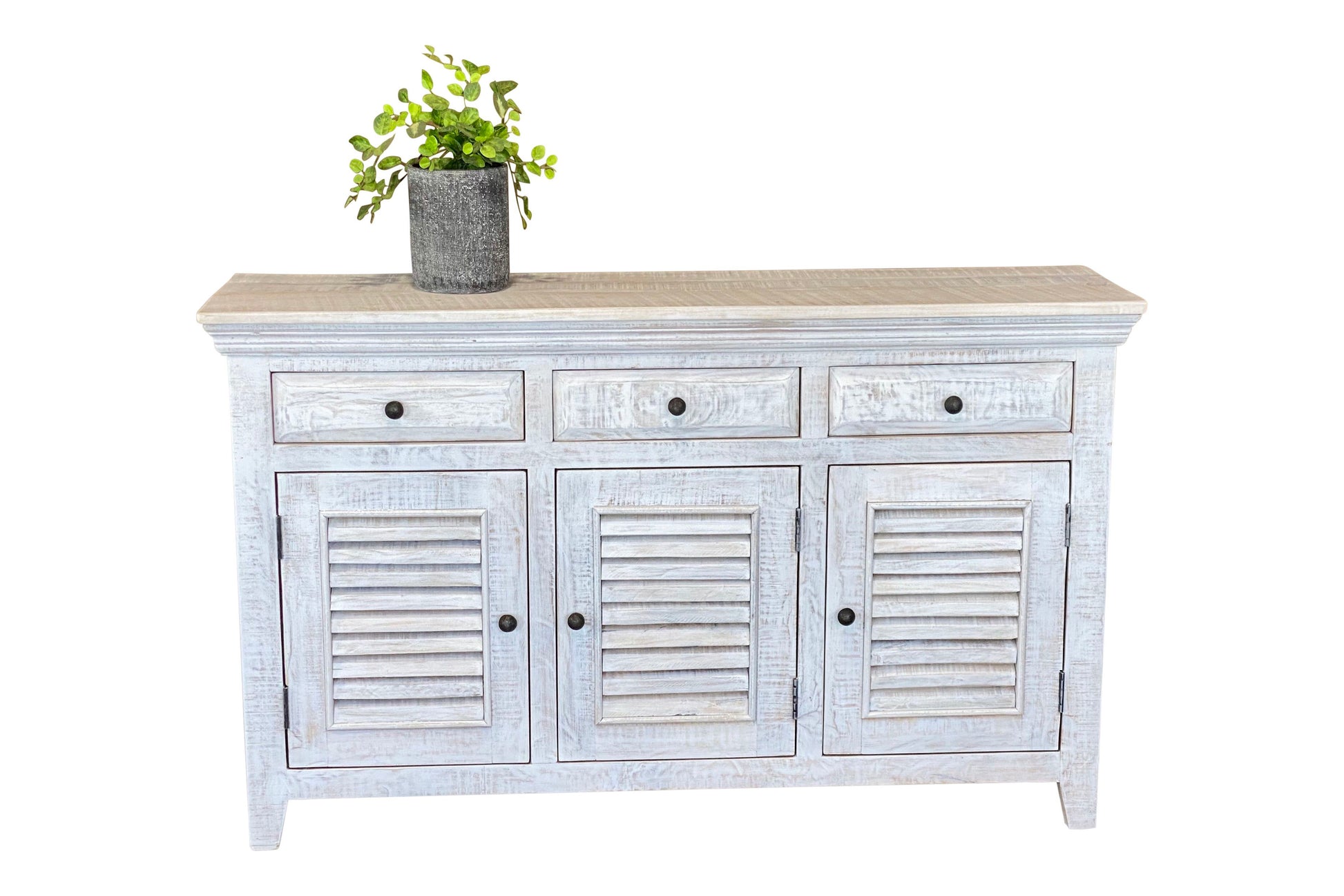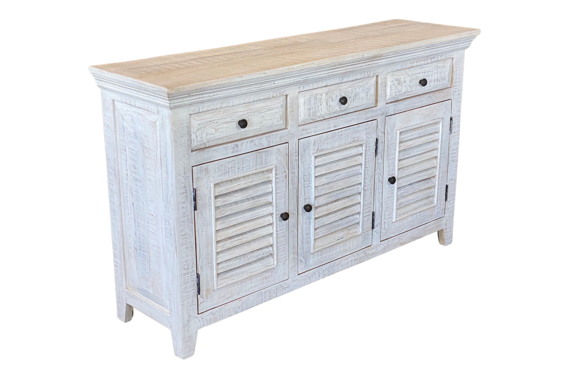 The Headland Buffet is a charming coastal piece with a natural and worn paint finish. The unit is made from sustainable mango wood and comes fully assembled.