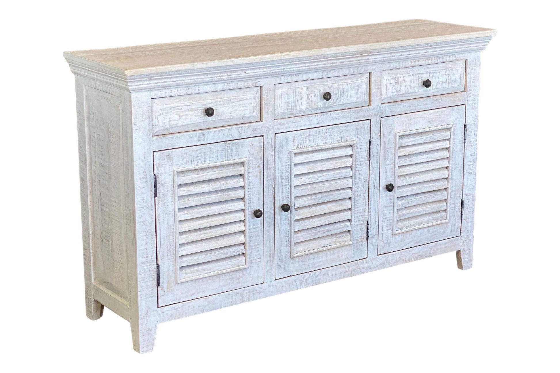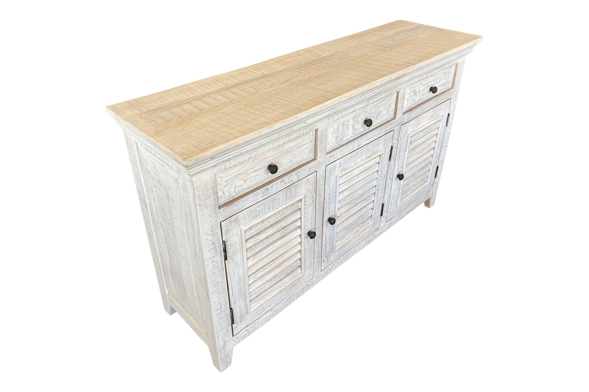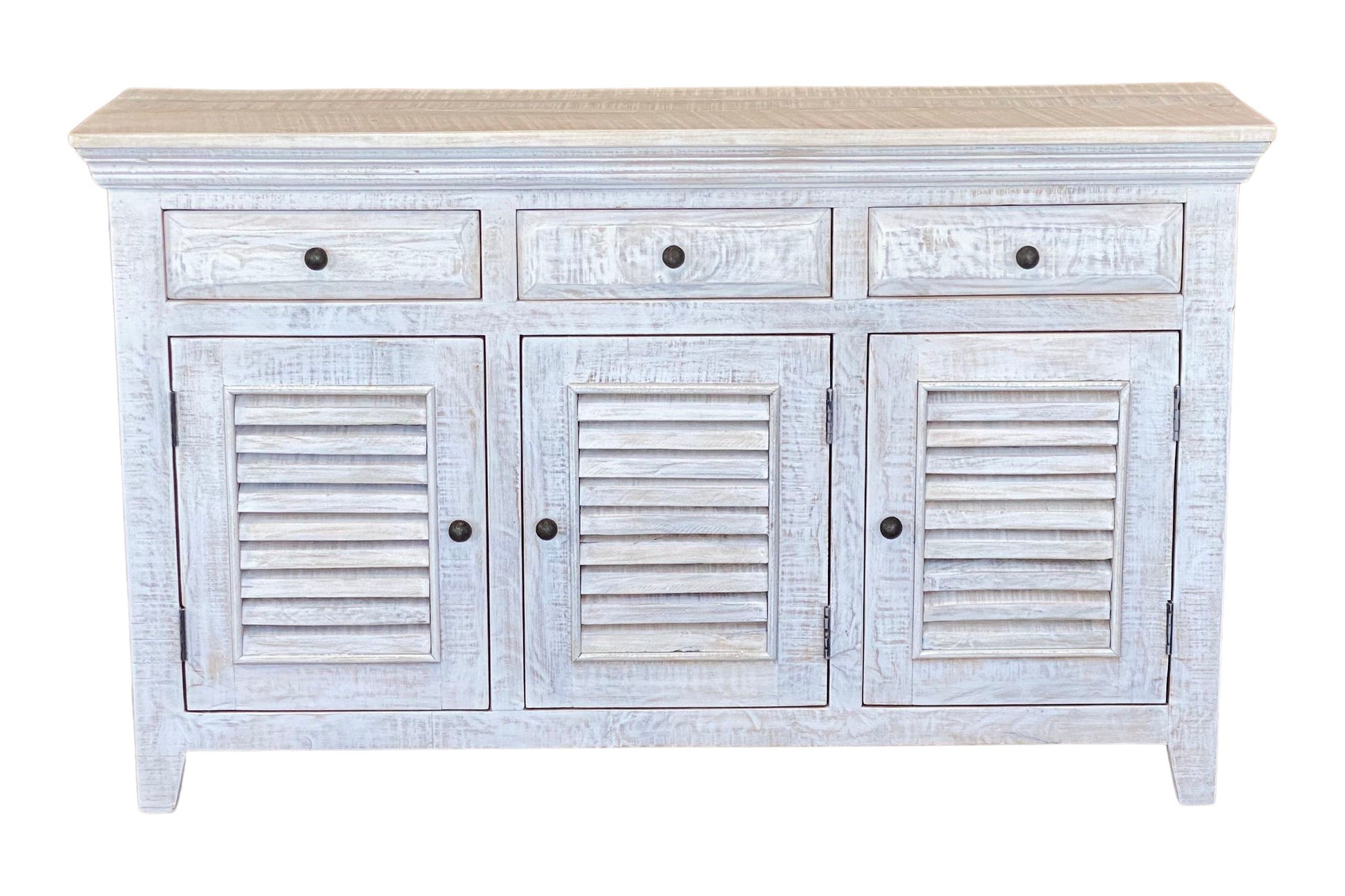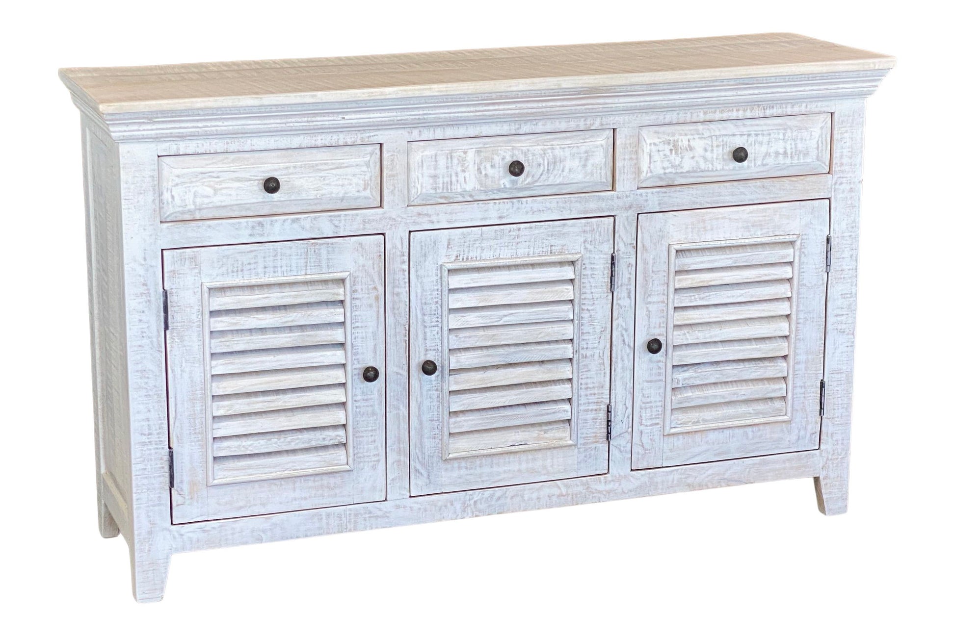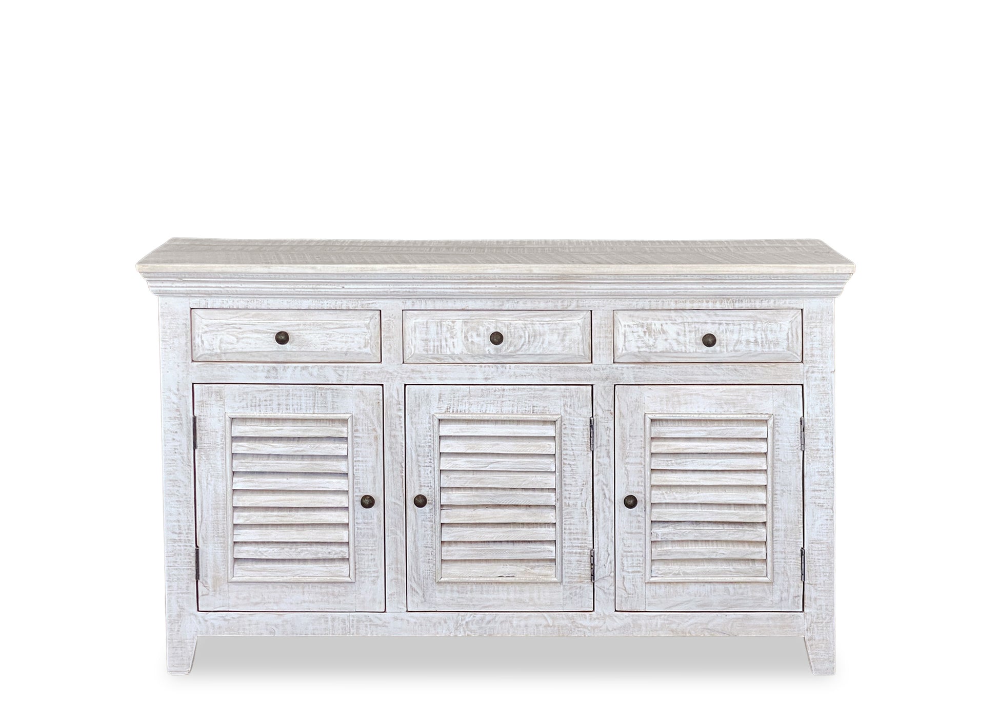 The Headland Buffet is a charming coastal piece with a natural and worn paint finish. The unit is made from sustainable mango wood and comes fully assembled.