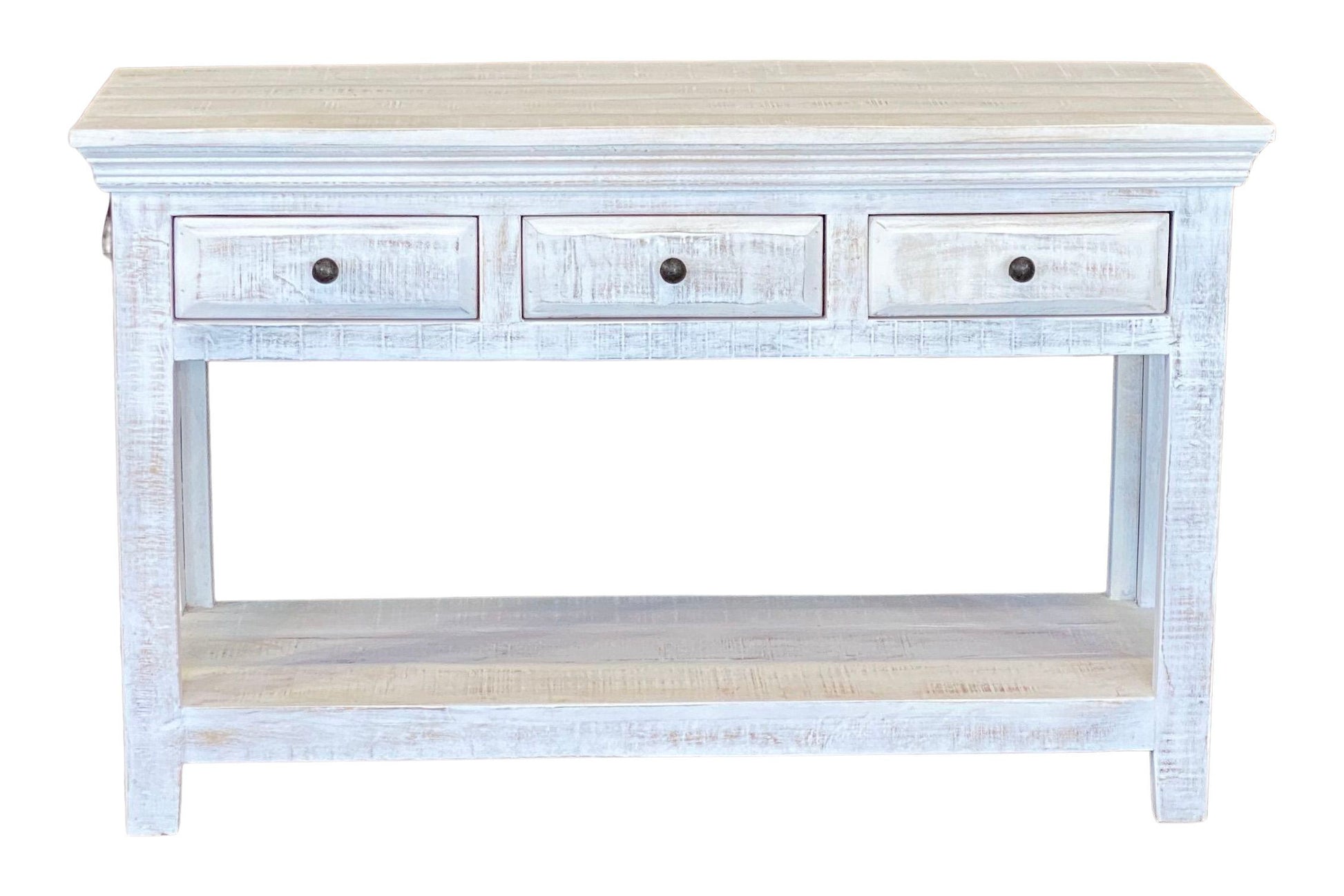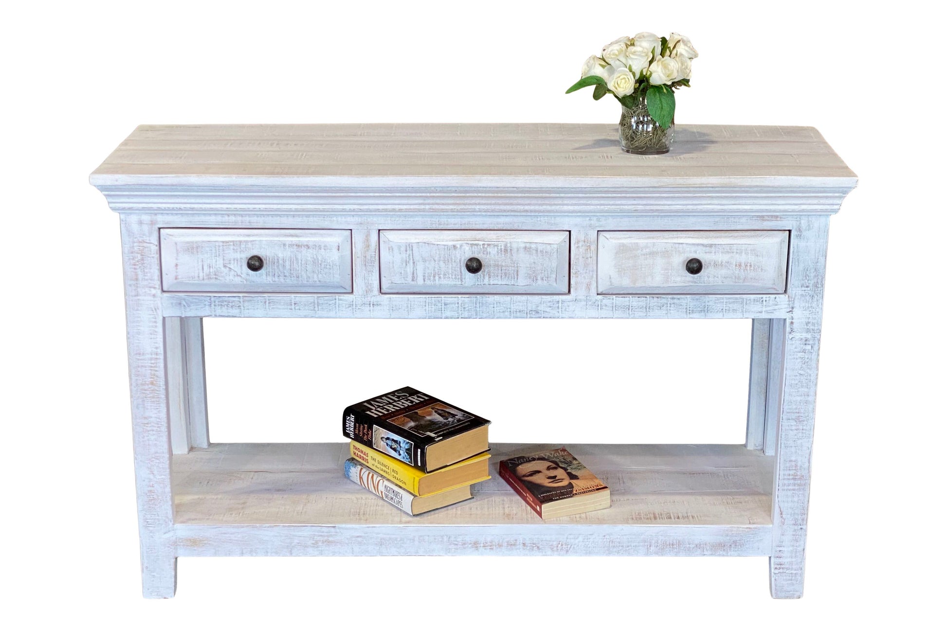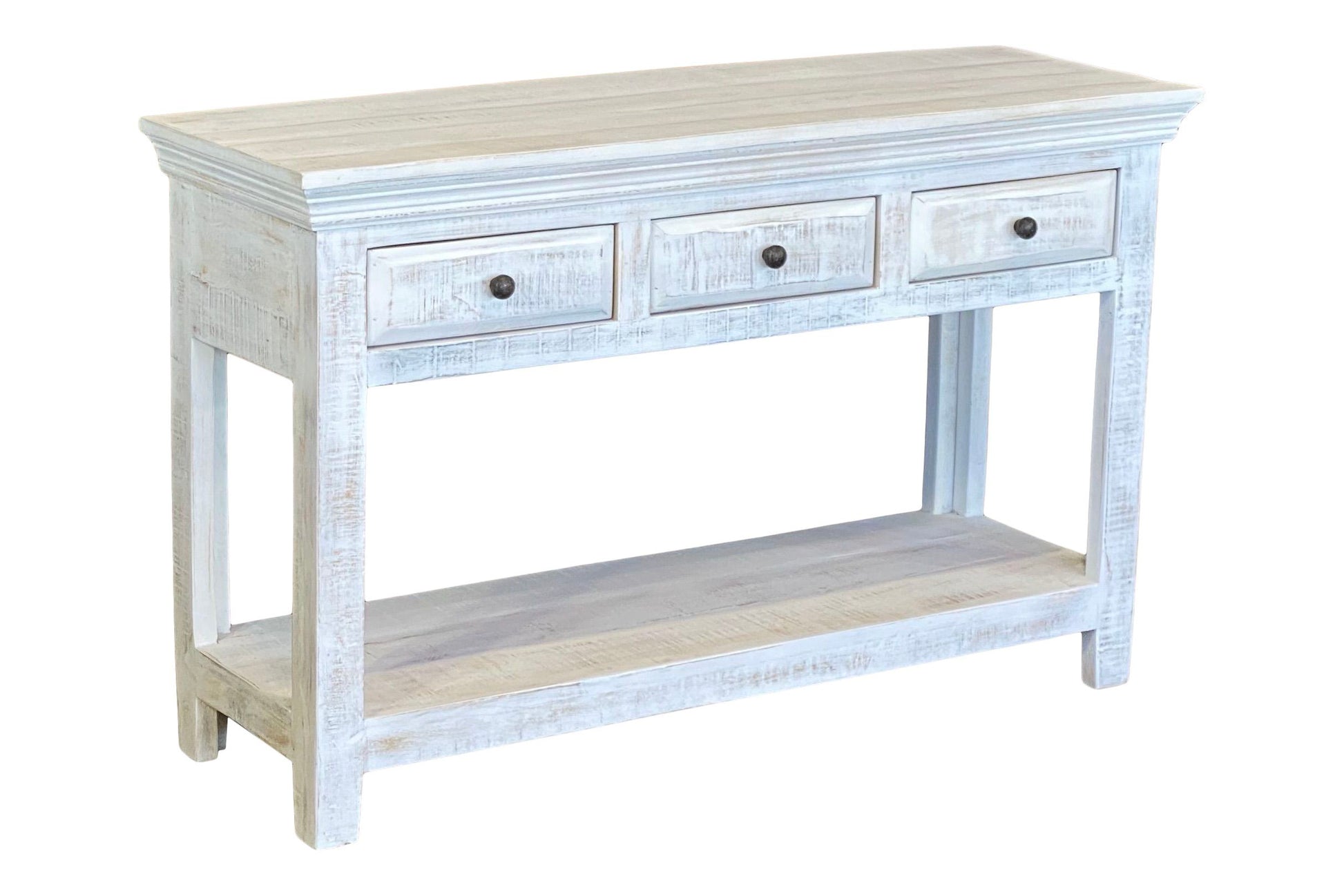The Headland Console Table is a charming coastal piece with a natural and worn paint finish. The unit is made from sustainable mango wood and comes fully assembled.