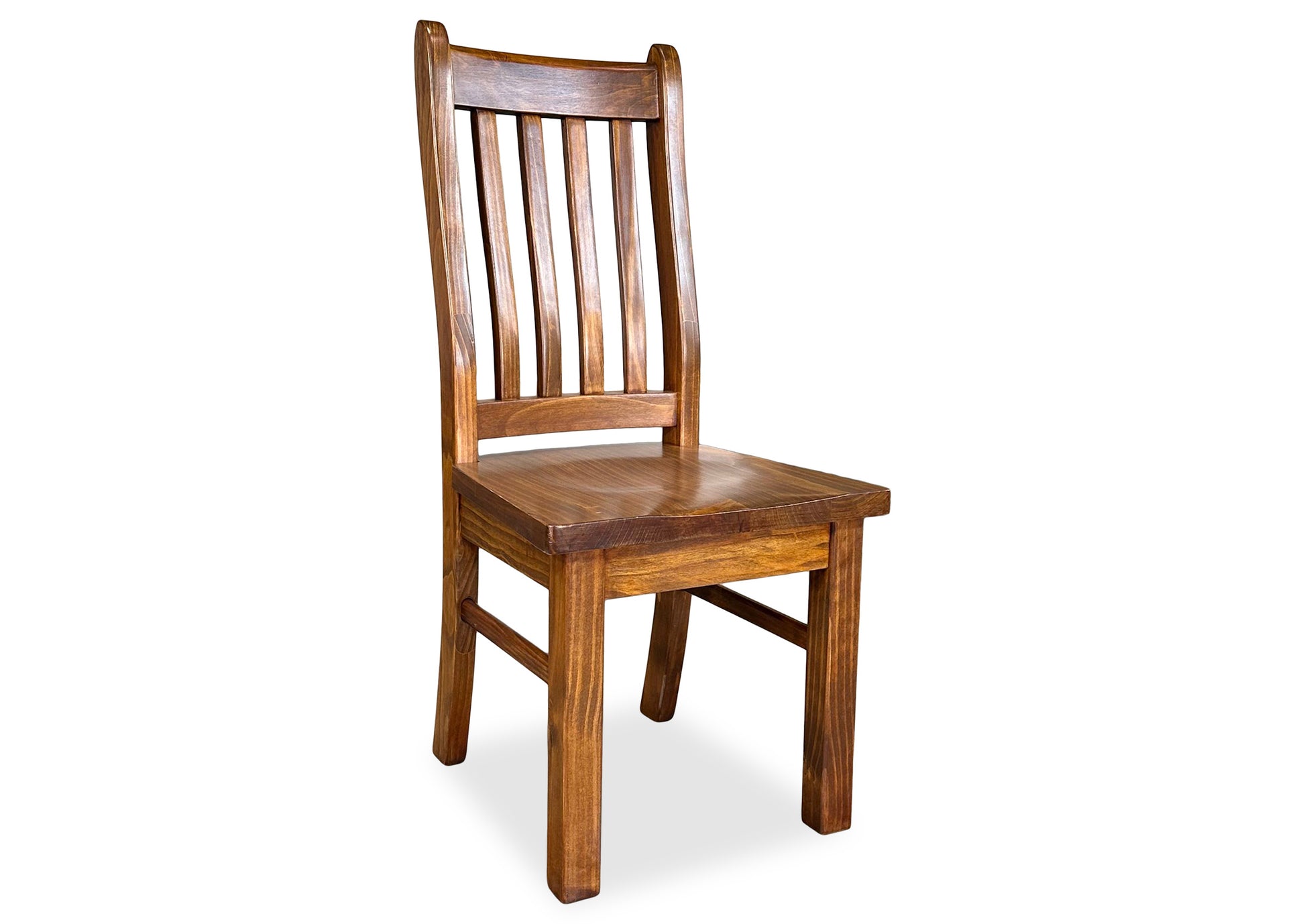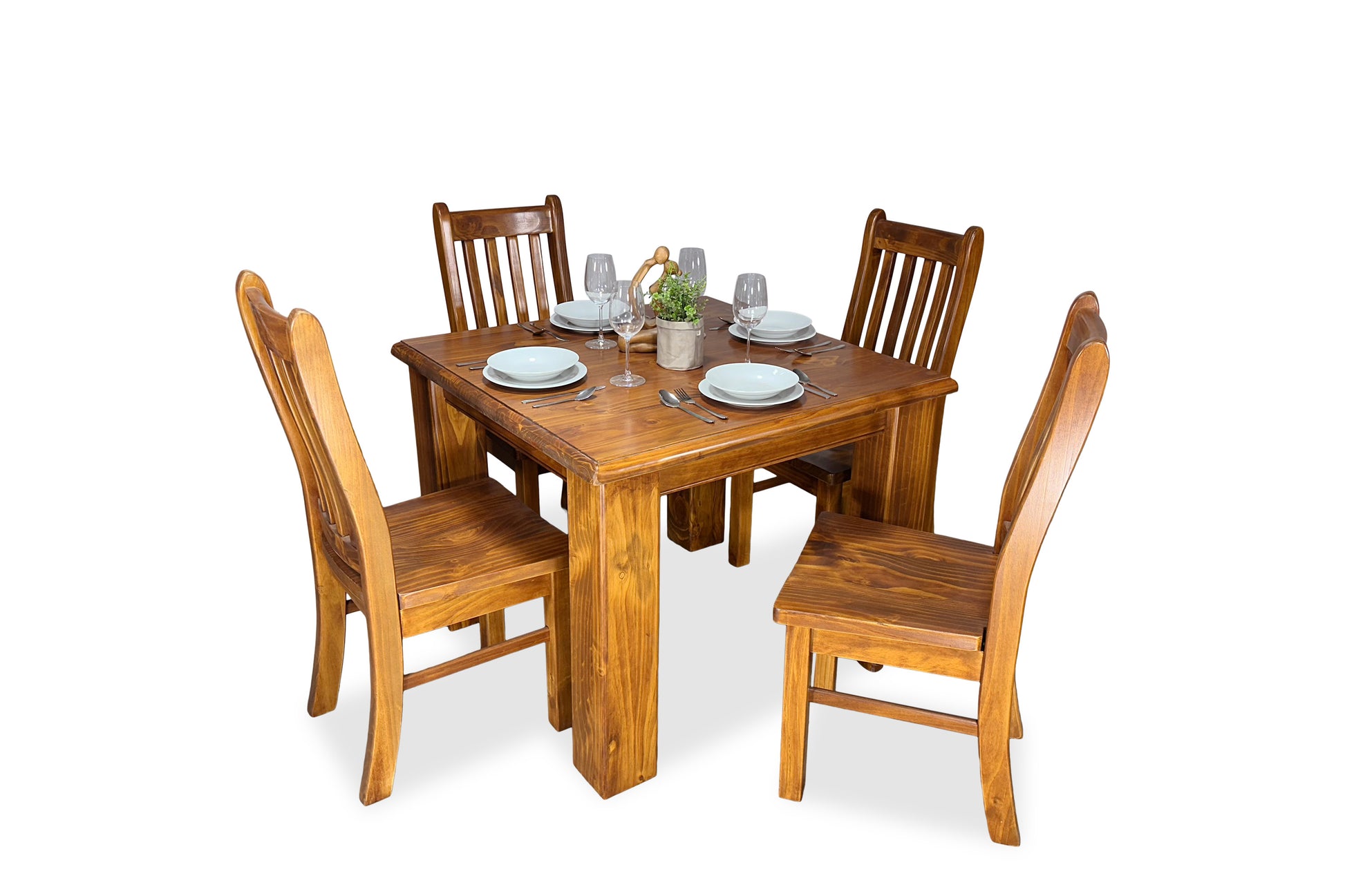 The Hinterland Dining Suite is a rustic set. The chair comes flat packed and the table features large chunky legs.