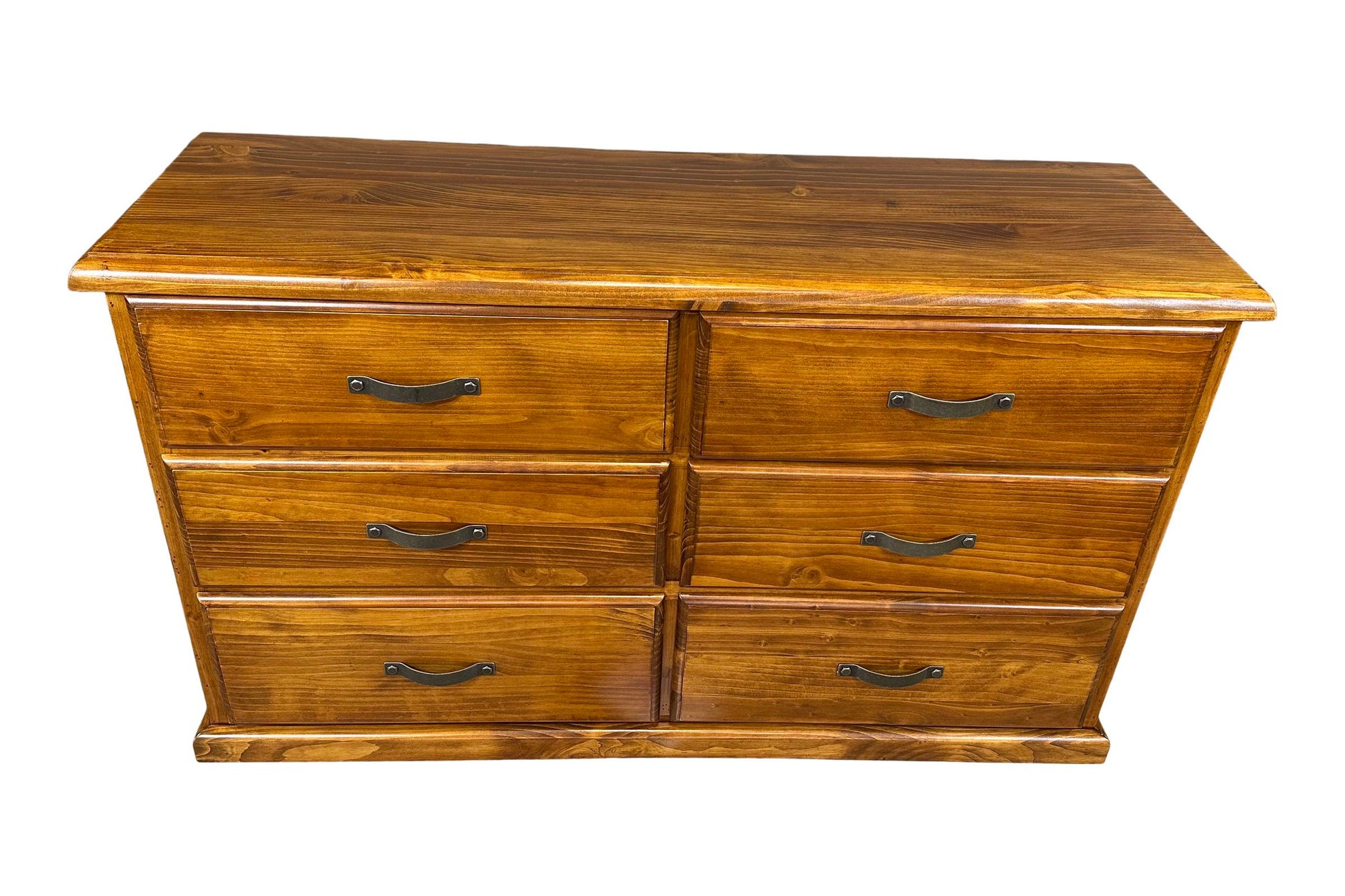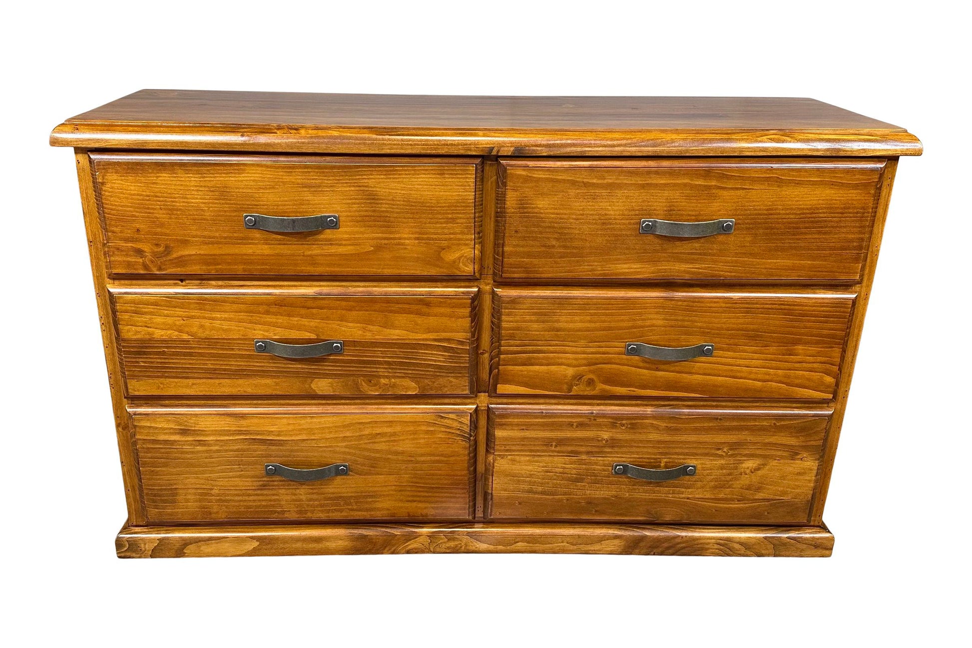 The Hinterland Chest is a rustic piece. The chest features six large drawers with metal drawer runners.