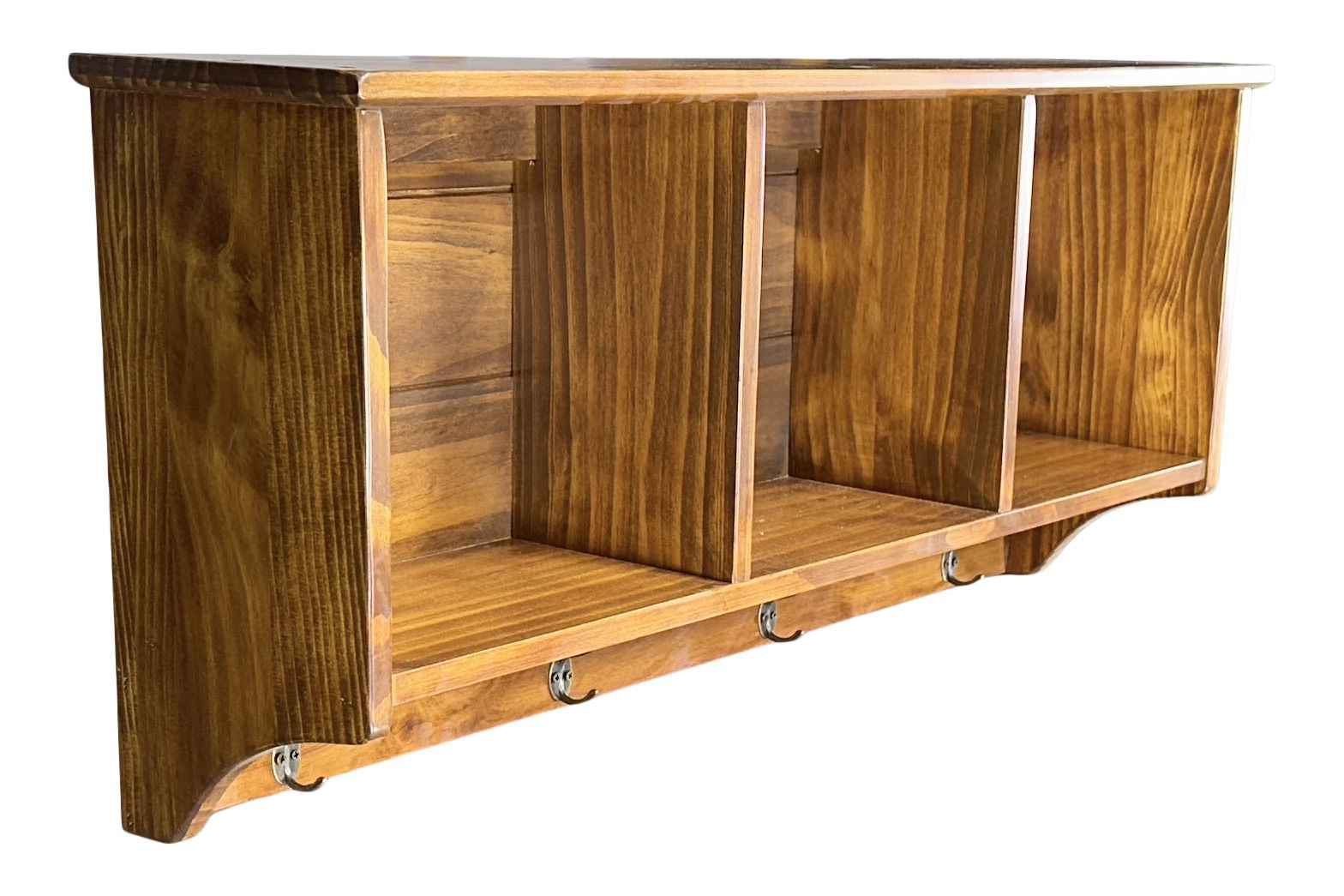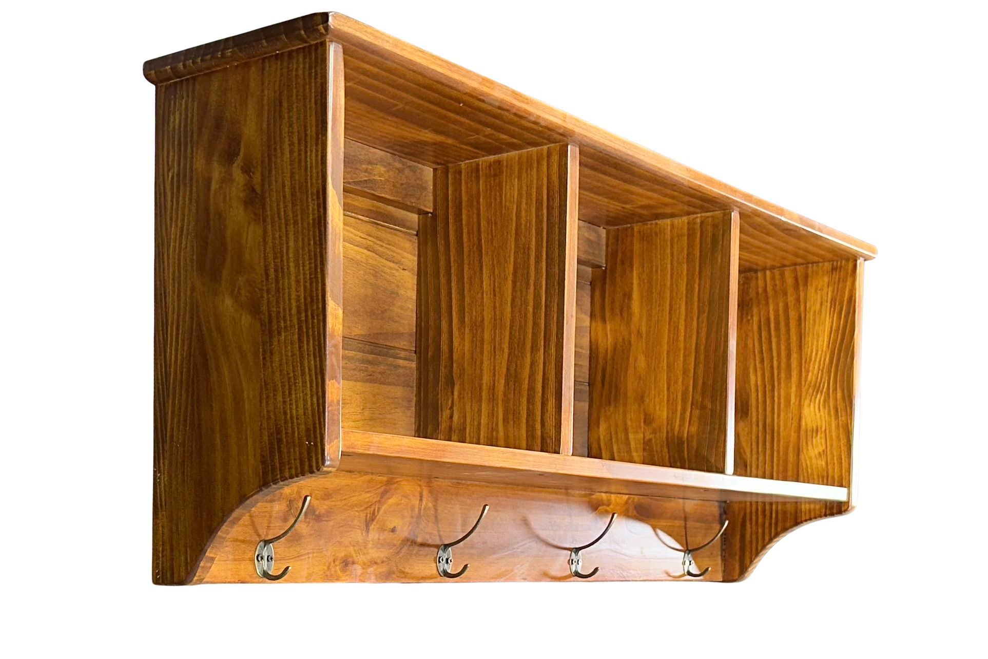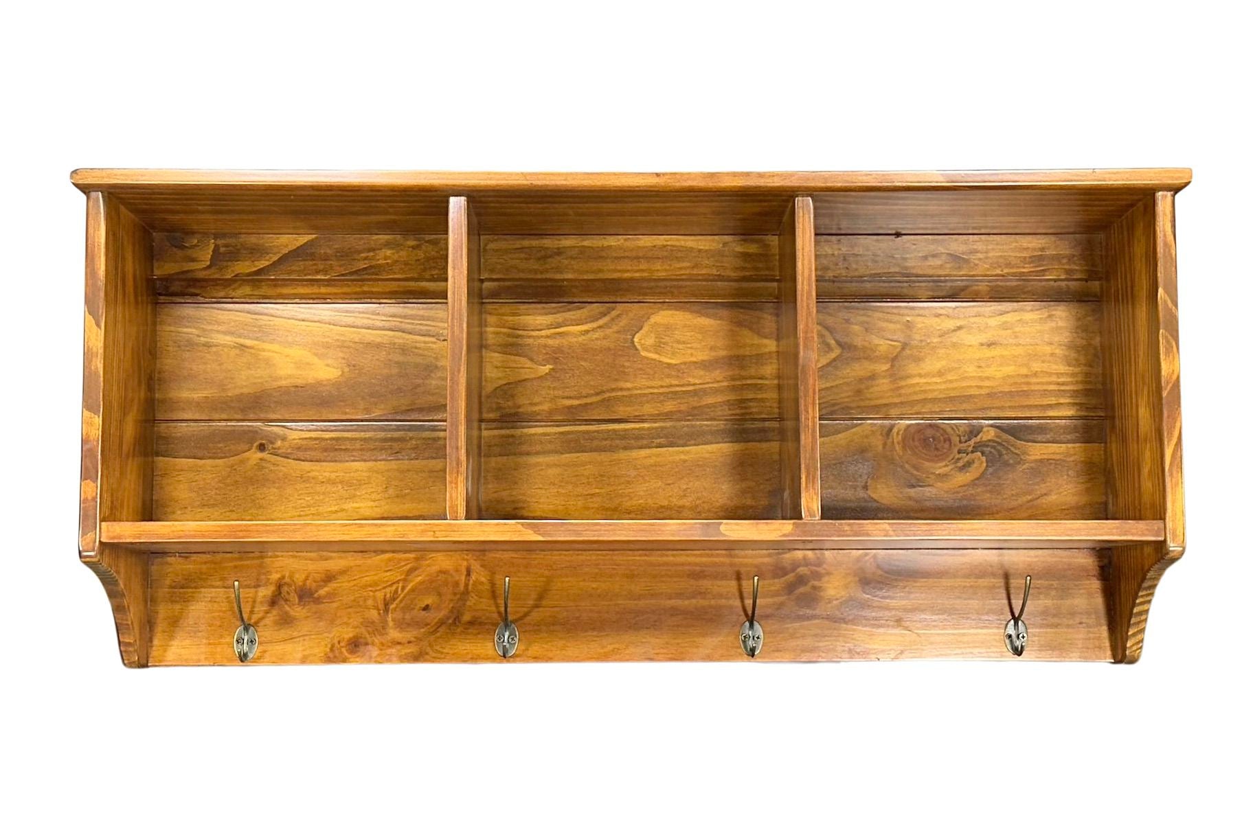 The Hinterland Coat Hooks with shelves is a rustic piece. It comes flat packed.