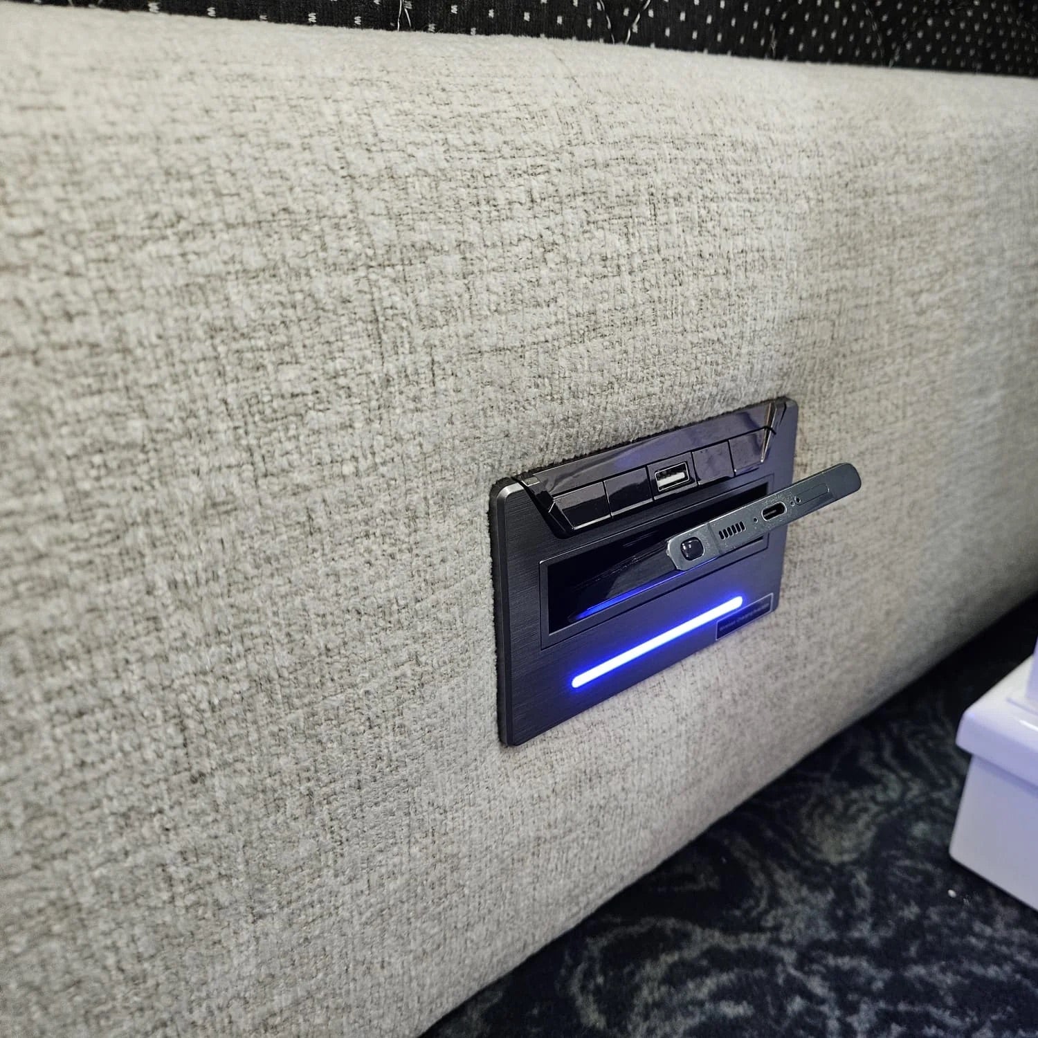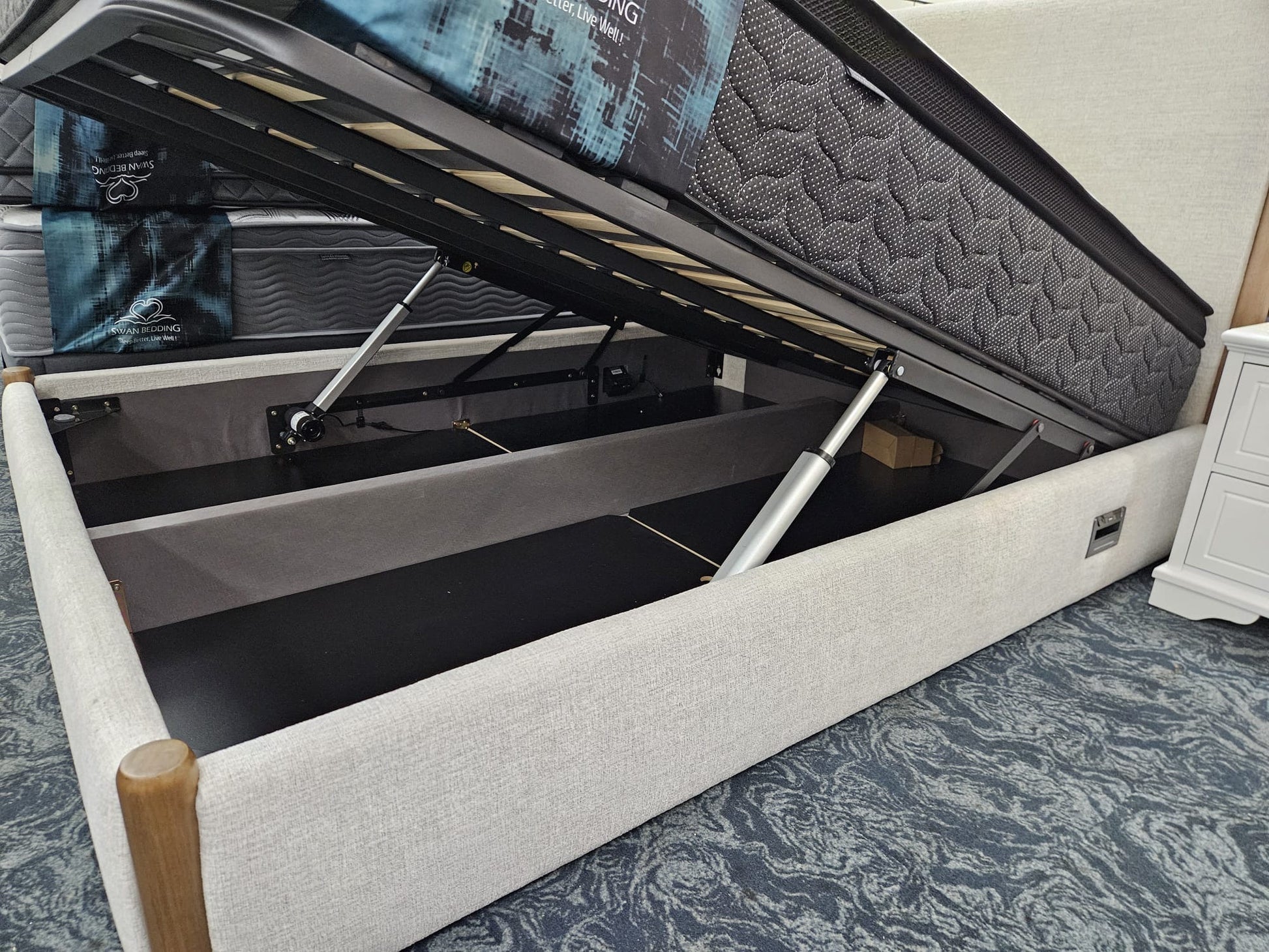 The Hobart Bed features under bed storage with gas-lift, wireless phone charging slots and USB charging ports.