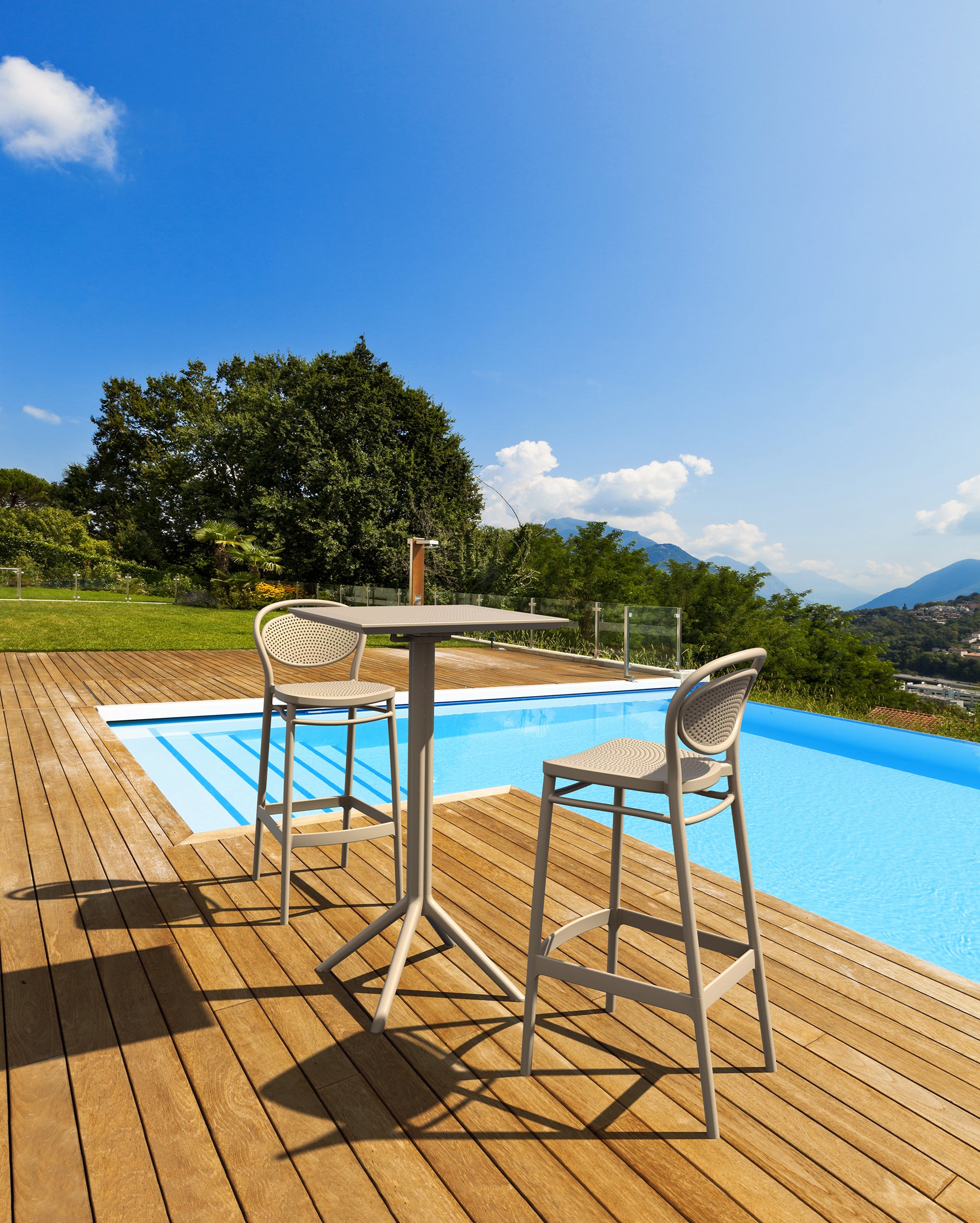 - The Kirra Bar Table is produced with polypropylene reinforced with glass fiber obtained by means of the latest generation of air moulding technology