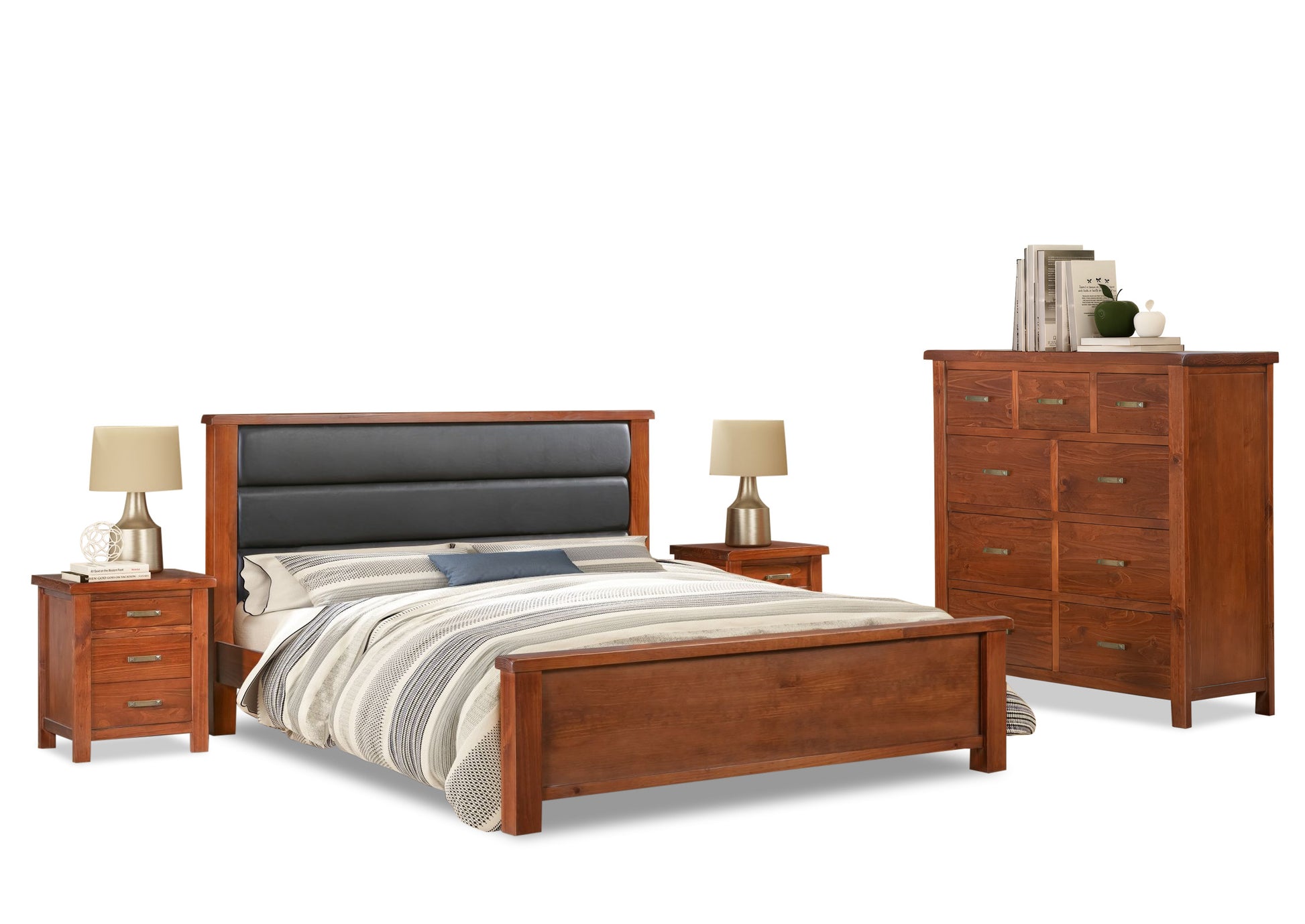 The Manor Range is a timeless collection of solid wood furniture, crafted to bring warmth and character to any living space. Finished in a rich “nutmeg” colour, the deep, earthy tones accentuate the natural grain of the wood. The bed frame also has a centre support rail under its slats.