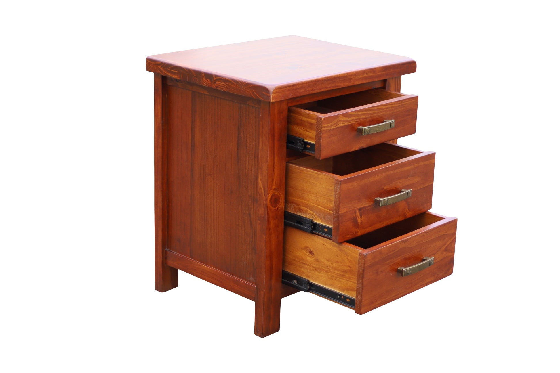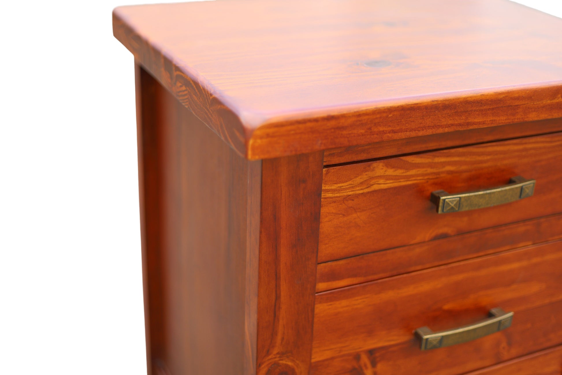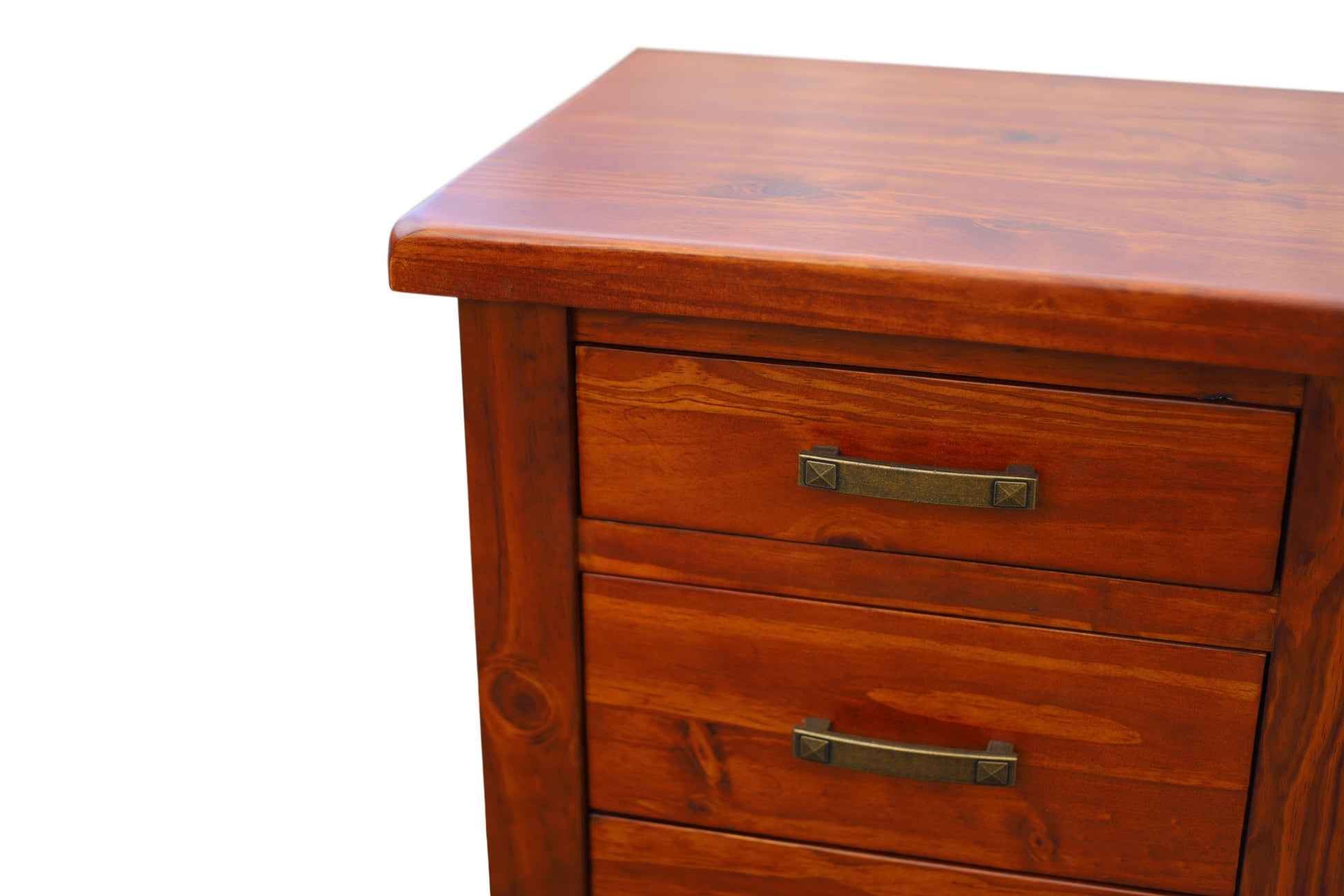 The Manor Range is a timeless collection of solid wood furniture, crafted to bring warmth and character to any living space. Finished in a rich “nutmeg” colour, the deep, earthy tones accentuate the natural grain of the wood. The bedside has metal drawer runners.