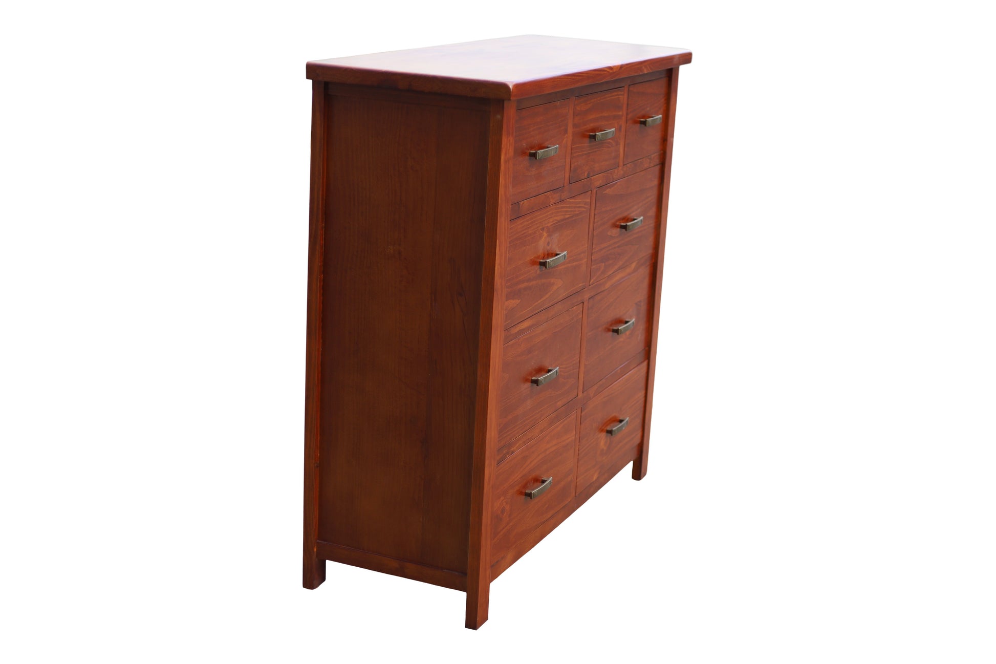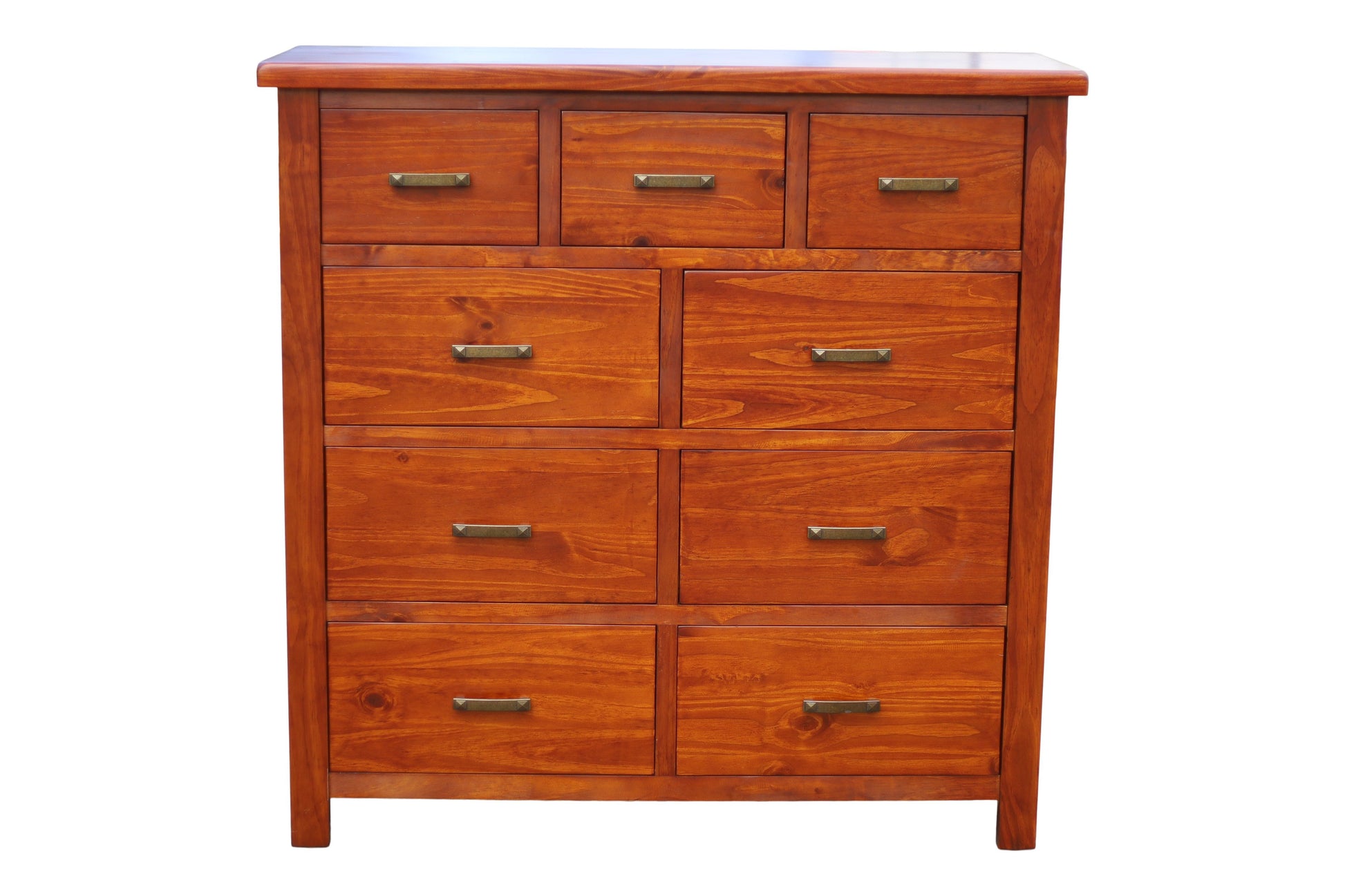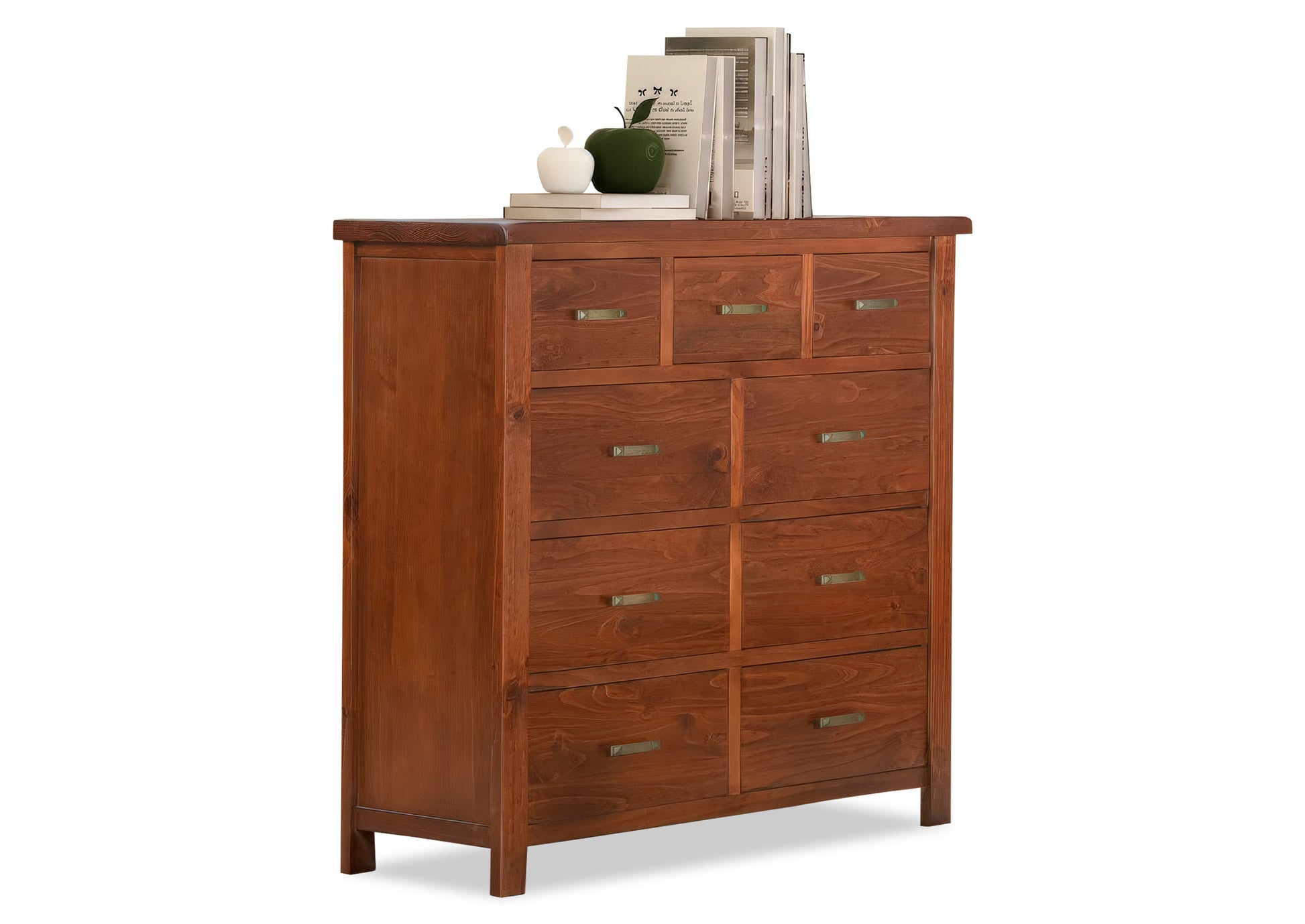 The Manor Range is a timeless collection of solid wood furniture, crafted to bring warmth and character to any living space. Finished in a rich “nutmeg” colour, the deep, earthy tones accentuate the natural grain of the wood. The tallboy has metal drawer runners.