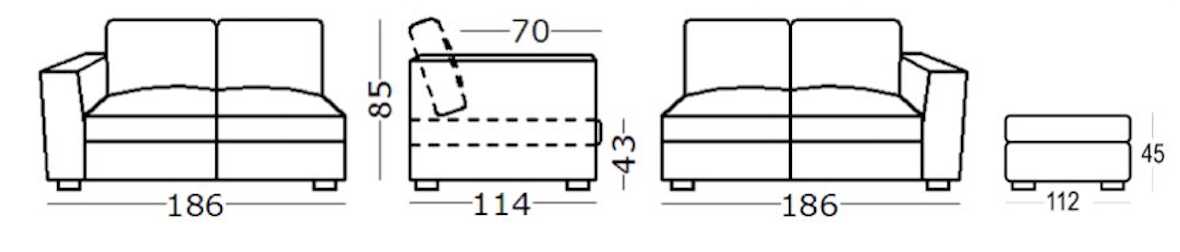 | Two-seat Sections | W1860mm x D1140mm x H850mm |