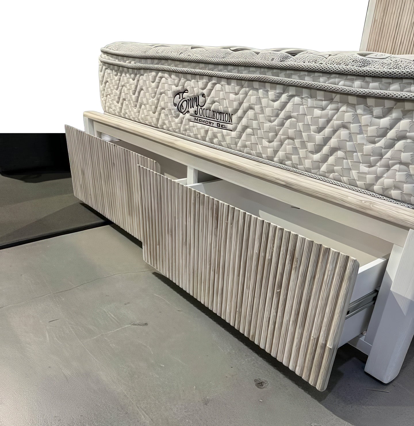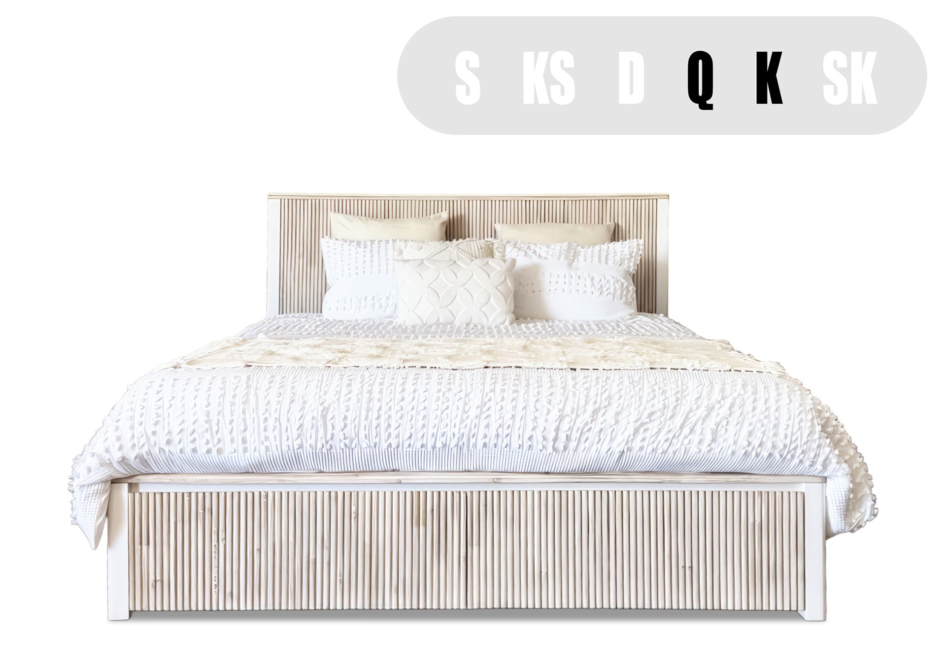 Inspired by the relaxed elegance of coastal living, the Pacific Range blends fluted timber textures with a crisp white frame for a fresh, airy aesthetic. Crafted to bring warmth and character to the bedroom, each piece features subtle curves and clean lines that echo the rhythm of the ocean. Effortlessly timeless, the Pacific Range is perfect for modern coastal and Hamptons-inspired interiors.