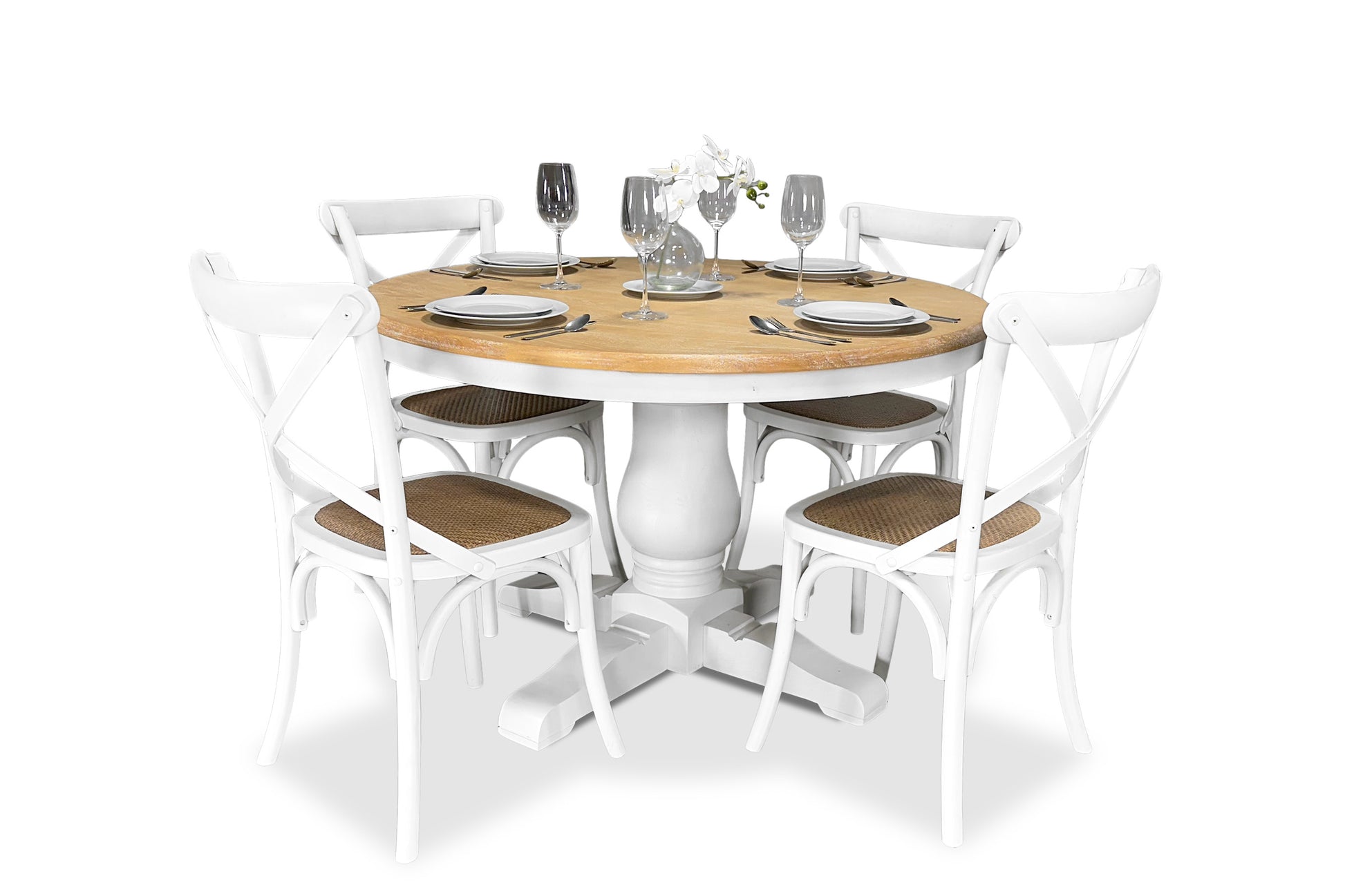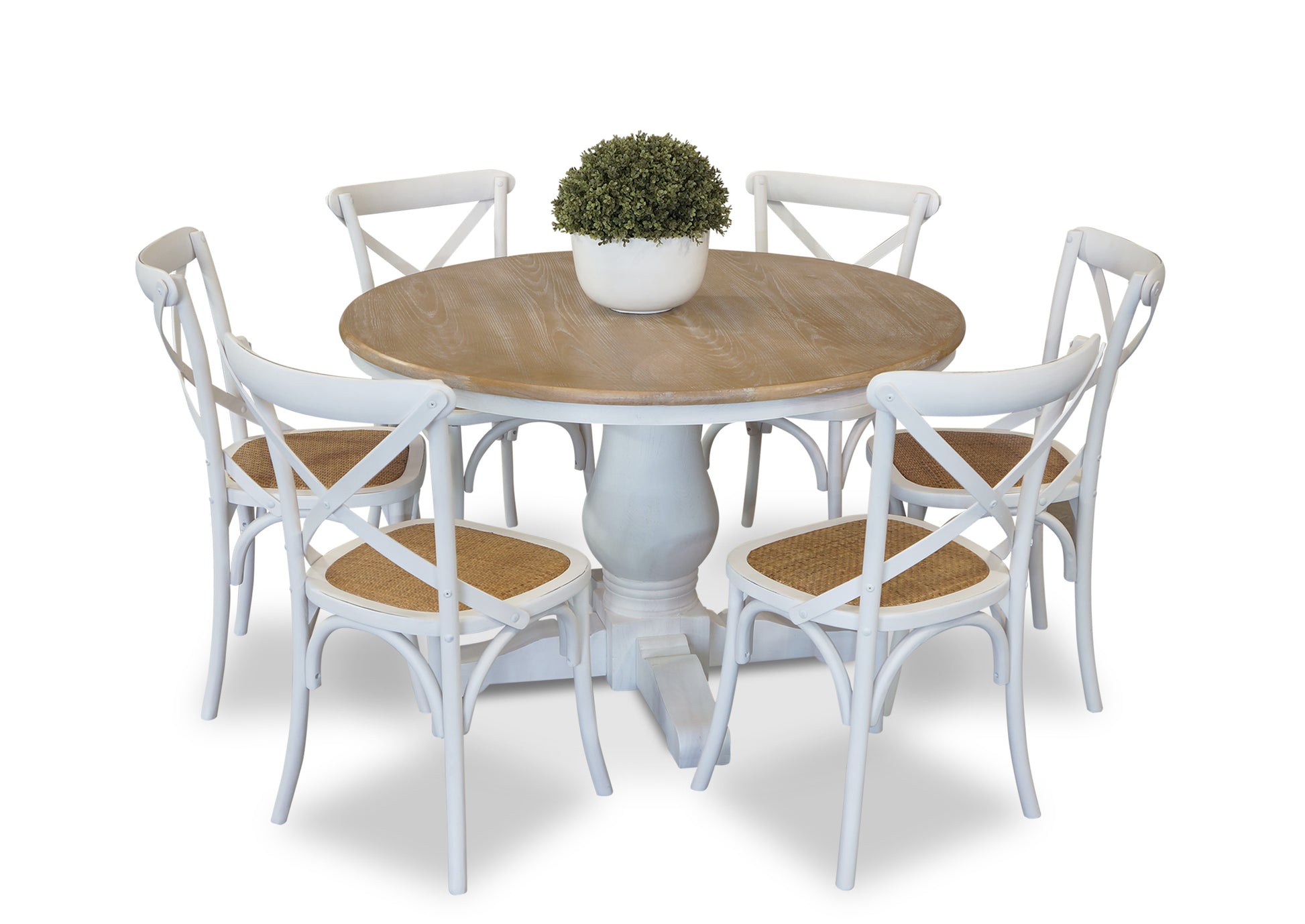 | Pieces | 1 x Parisienne Dining Table (1200mm) - White 4 or 6 x Cross Back Chairs |
