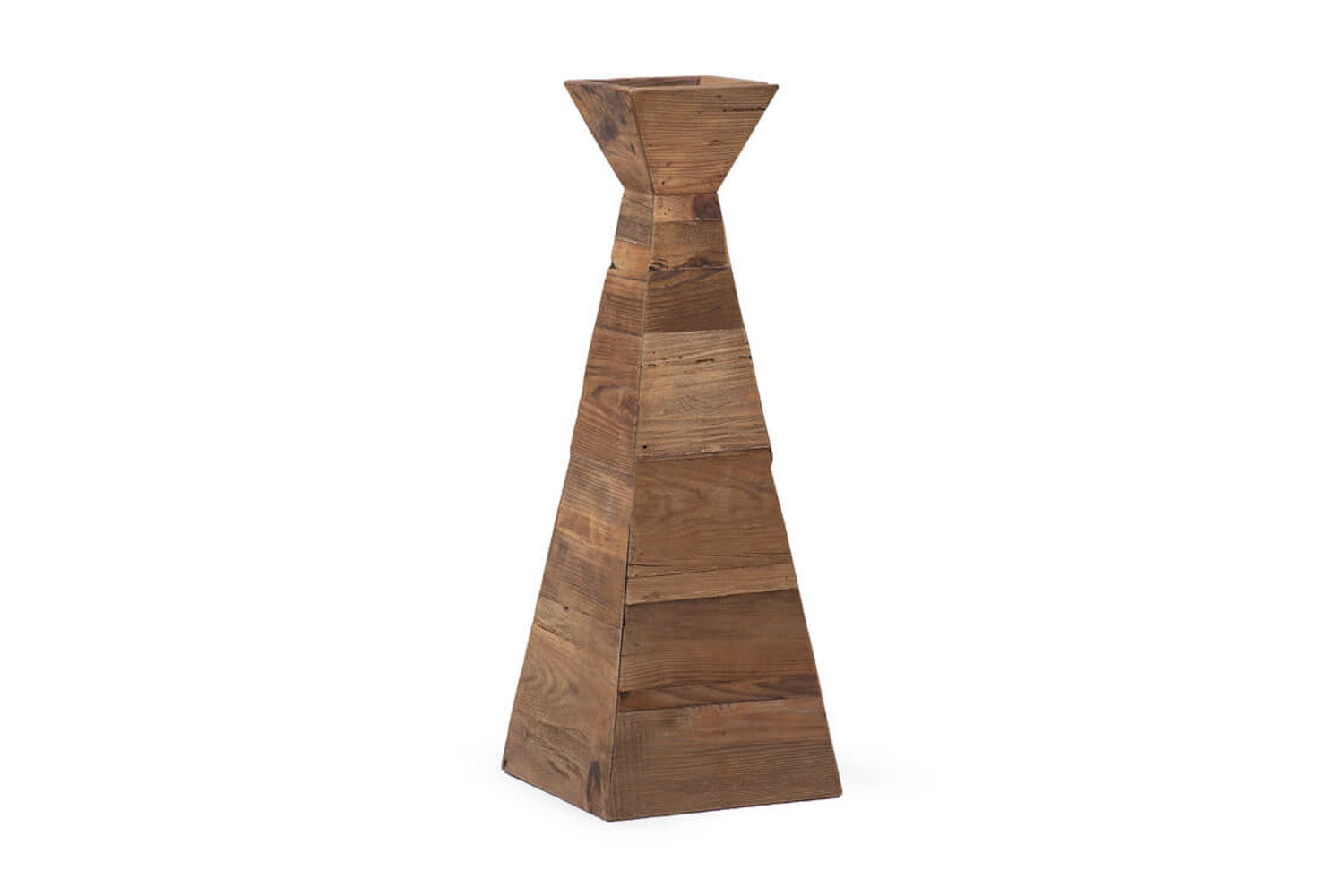 The Plantation Candle Holder is a chunky recycled pine piece.