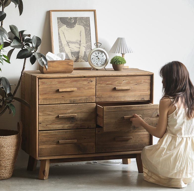 The Plantation Chest is a chunky recycled pine piece with six large drawers.