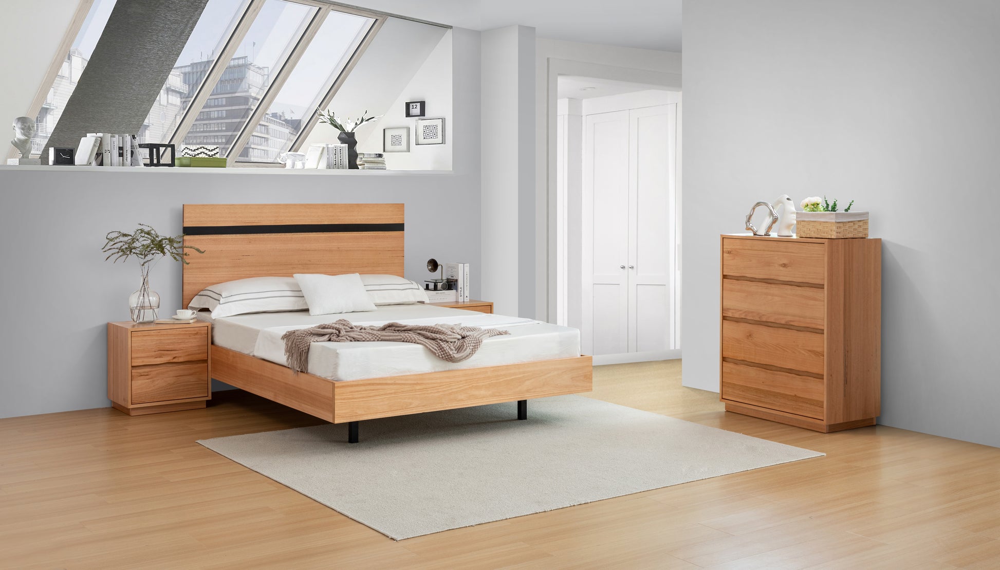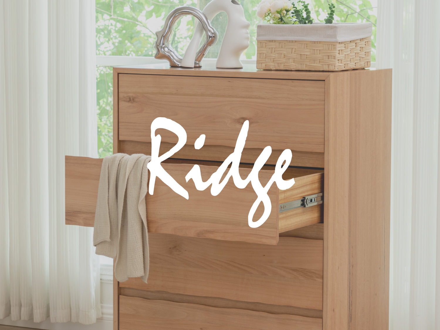 Bring the raw beauty of the Australian landscape into the bedroom with the Ridge Range. The hero of this range is the stunning live-edges, highlighting the unique, organic contours of the timber grain. No two pieces are exactly alike, ensuring your bedroom suite is truly one-of-a-kind.