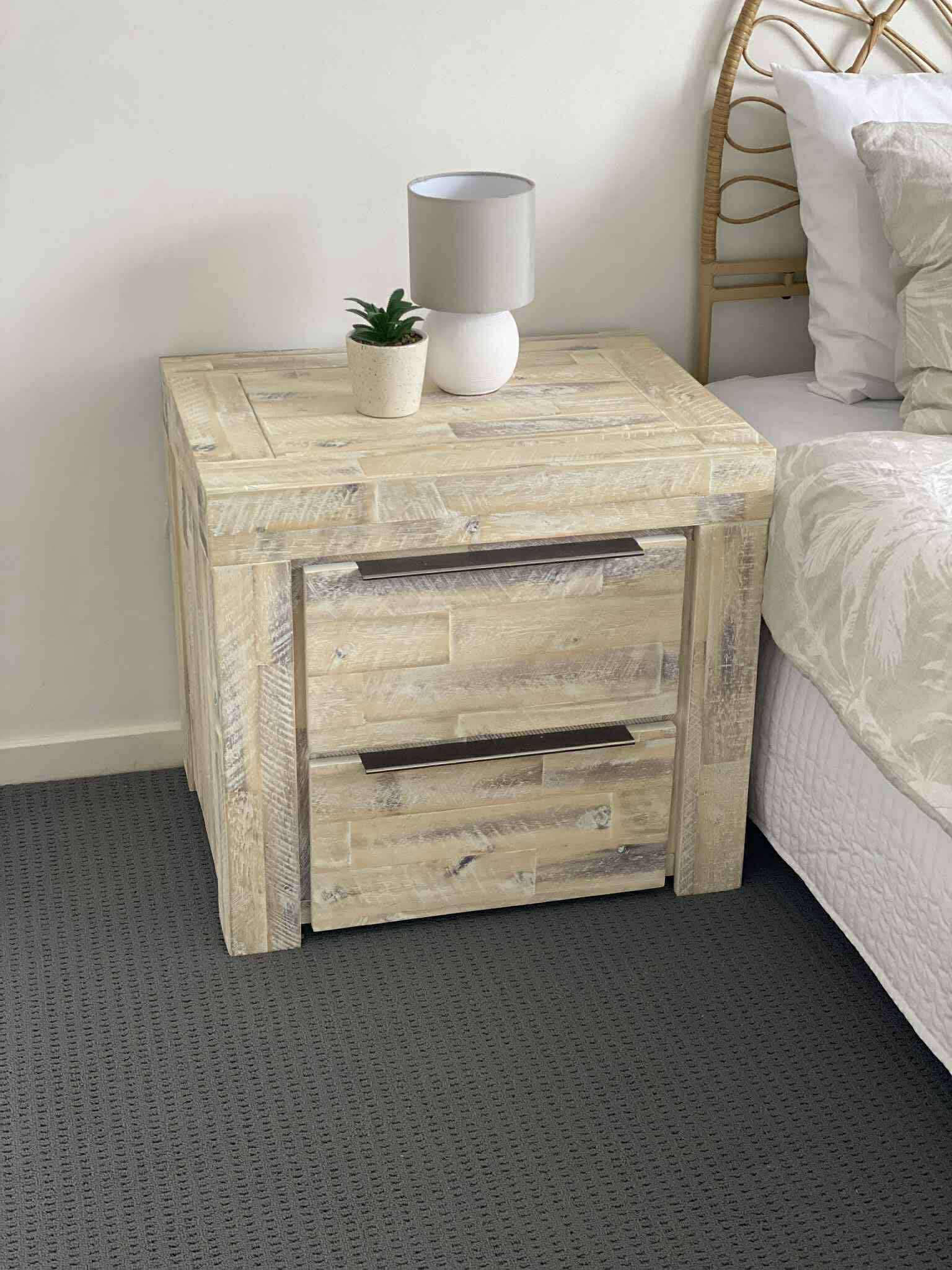 Introducing the Sanctuary Range: a coastal whitewash bedroom collection blending practicality and charm. The focal point, the Sanctuary bed, features a unique bookcase bedhead for storage and style. Crafted from durable knotty acacia hardwood, its rustic charm is accentuated by the coastal whitewash finish. With clean lines and thoughtful design, it seamlessly integrates into any bedroom decor, offering a timeless sanctuary for relaxation.