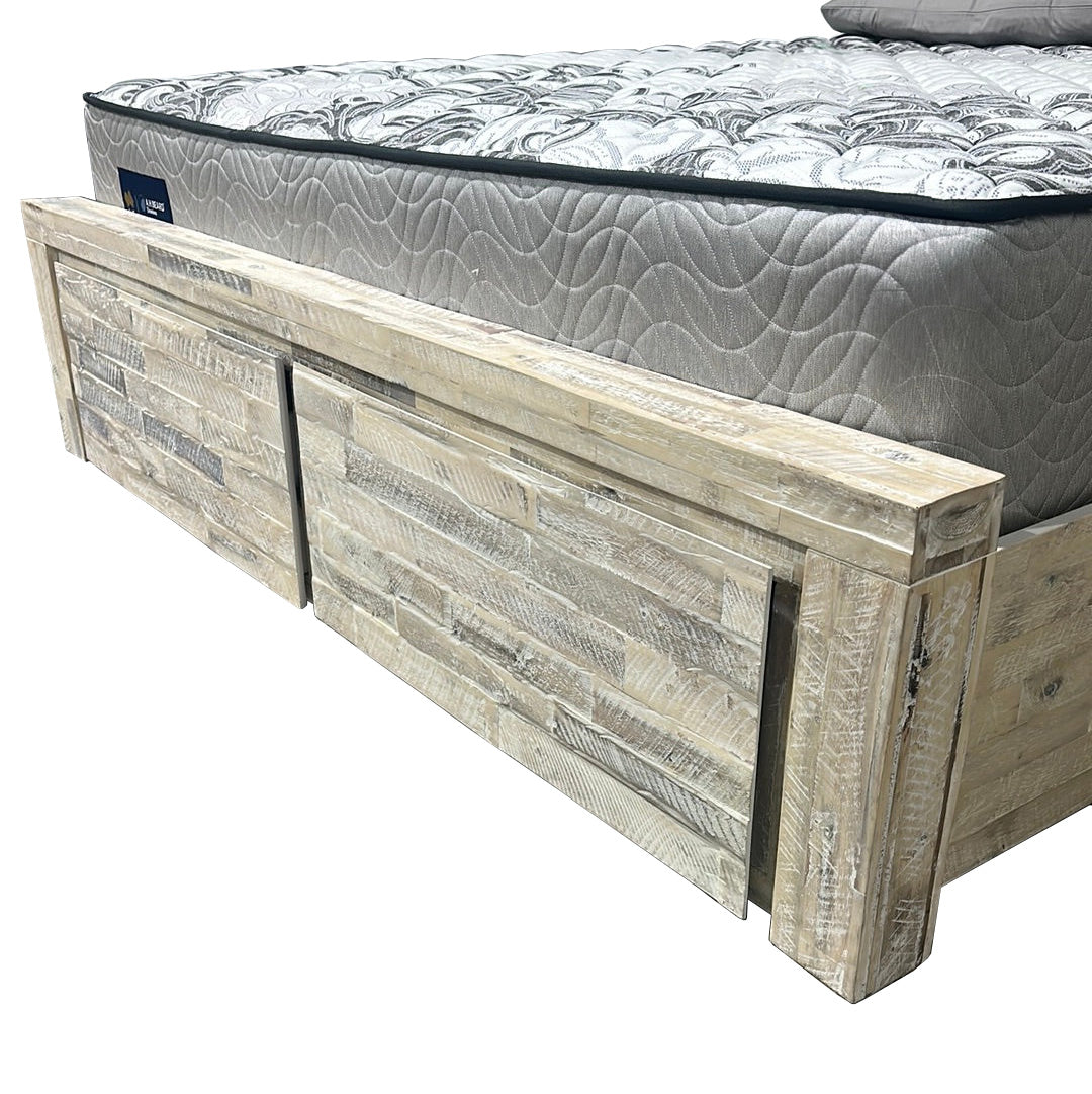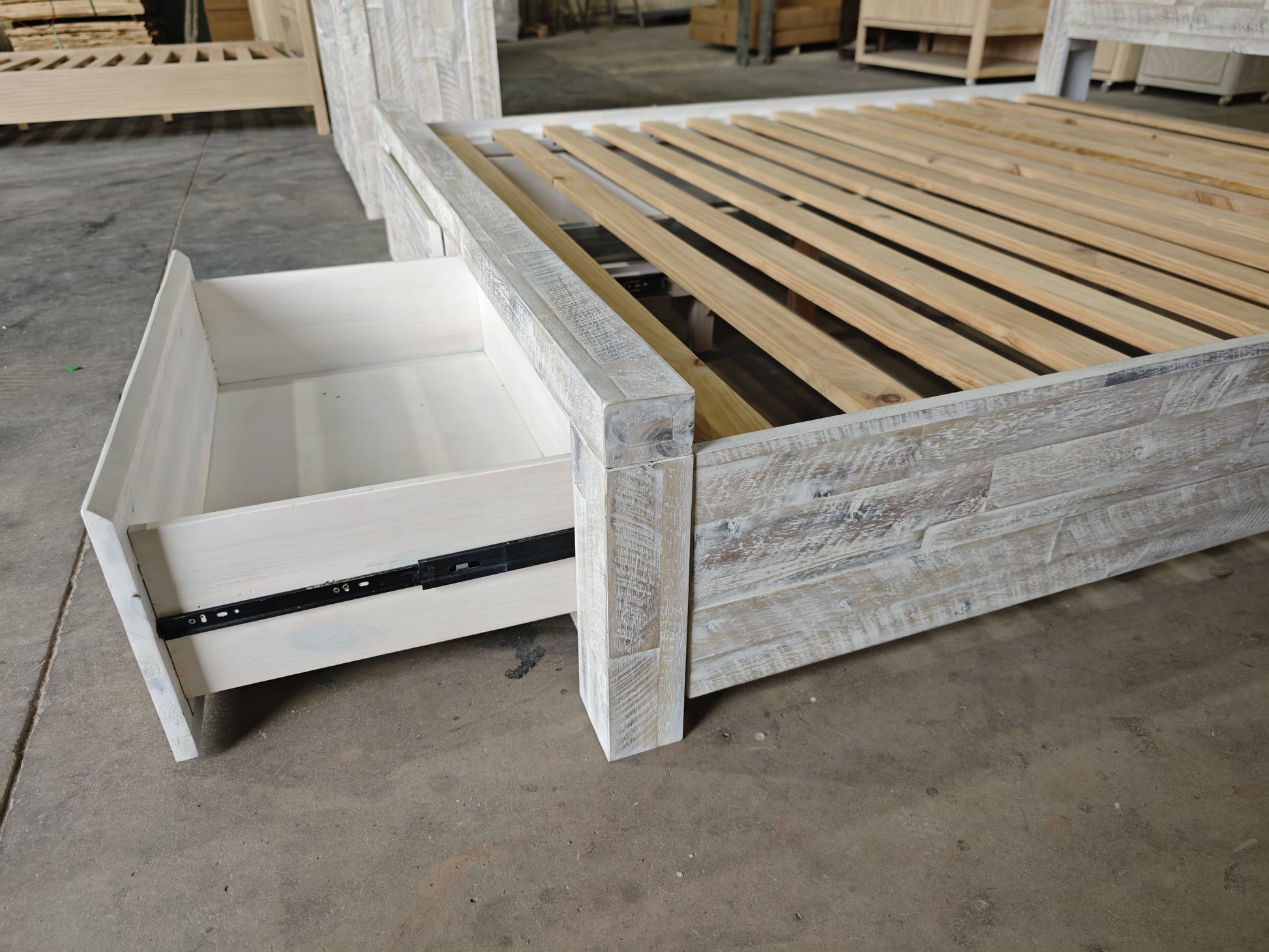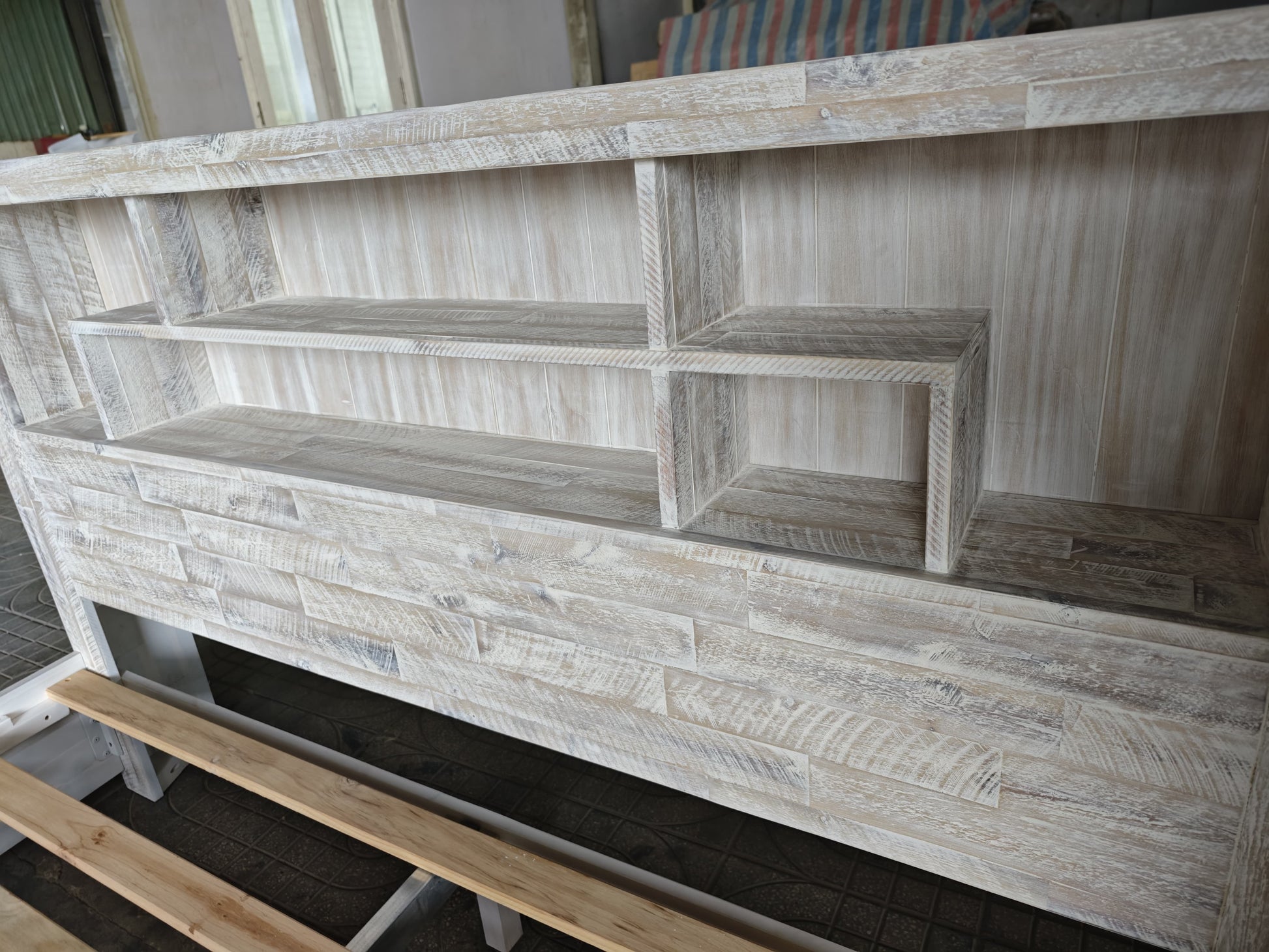Introducing the Sanctuary Range: a coastal whitewash bedroom collection blending practicality and charm. The focal point, the Sanctuary bed, features a unique bookcase bedhead for storage and style. Crafted from durable knotty acacia hardwood, its rustic charm is accentuated by the coastal whitewash finish. With clean lines and thoughtful design, it seamlessly integrates into any bedroom decor, offering a timeless sanctuary for relaxation.