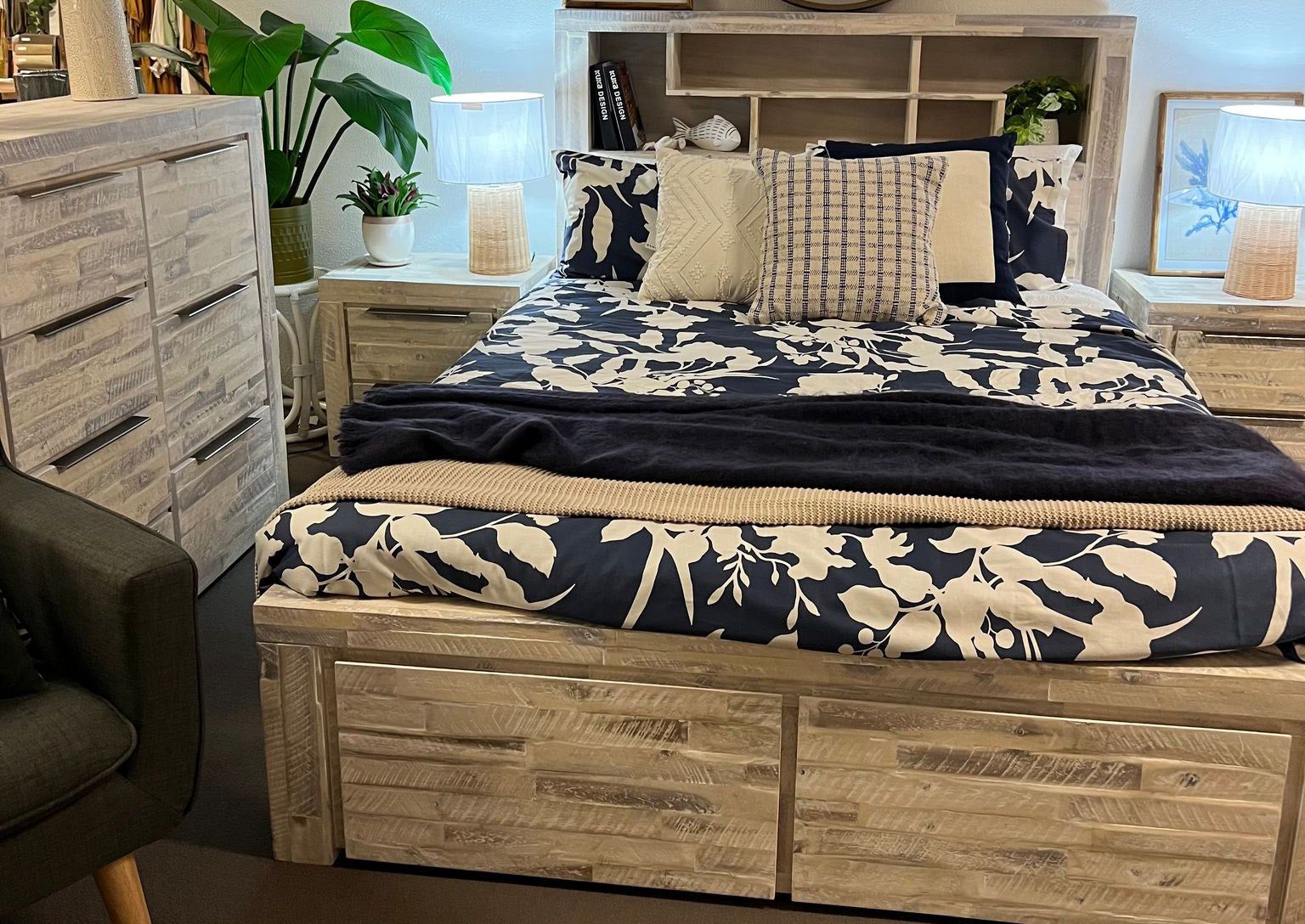 Introducing the Sanctuary Range: a coastal whitewash bedroom collection blending practicality and charm. The focal point, the Sanctuary bed, features a unique bookcase bedhead for storage and style. Crafted from durable knotty acacia hardwood, its rustic charm is accentuated by the coastal whitewash finish. With clean lines and thoughtful design, it seamlessly integrates into any bedroom decor, offering a timeless sanctuary for relaxation.