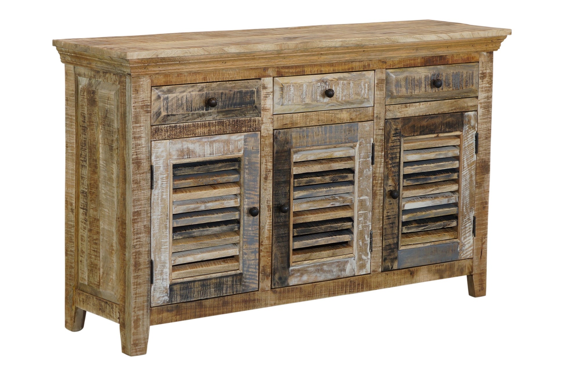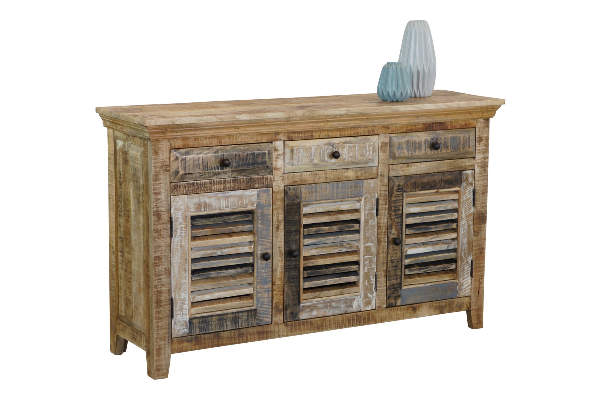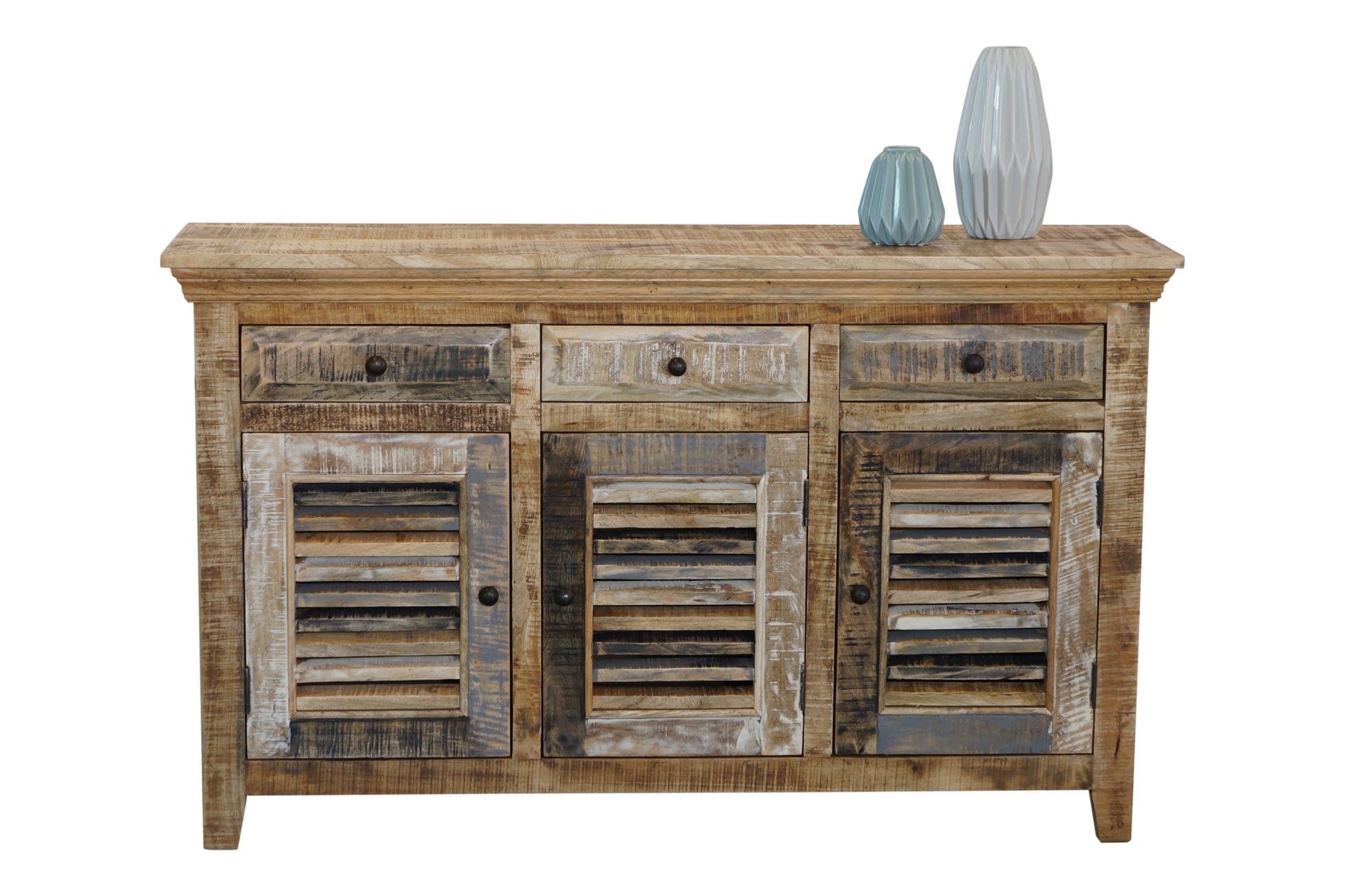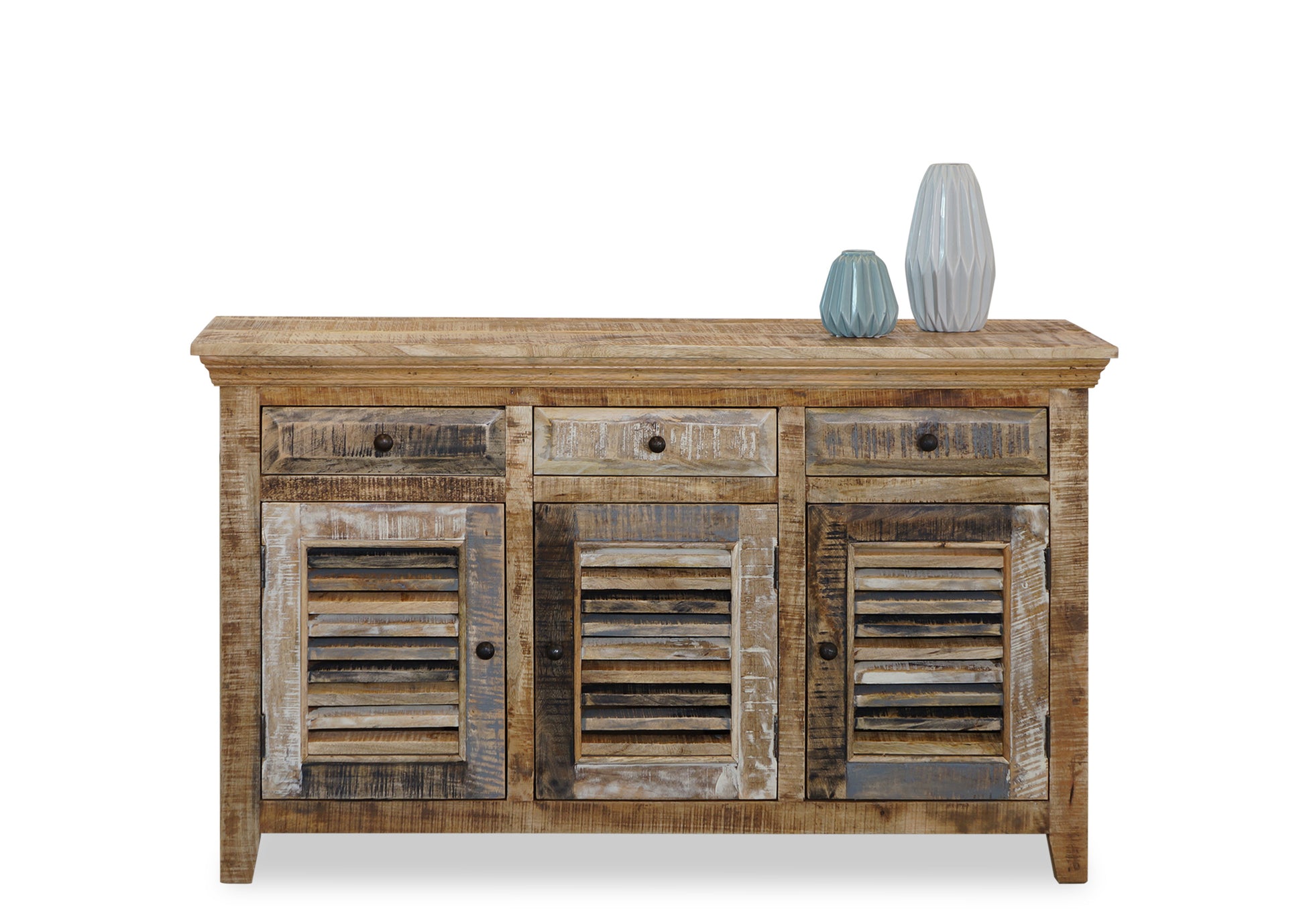 The Seaside Buffet is a charming coastal piece with a natural and worn paint finish. The unit is made from sustainable mango wood and comes fully assembled.