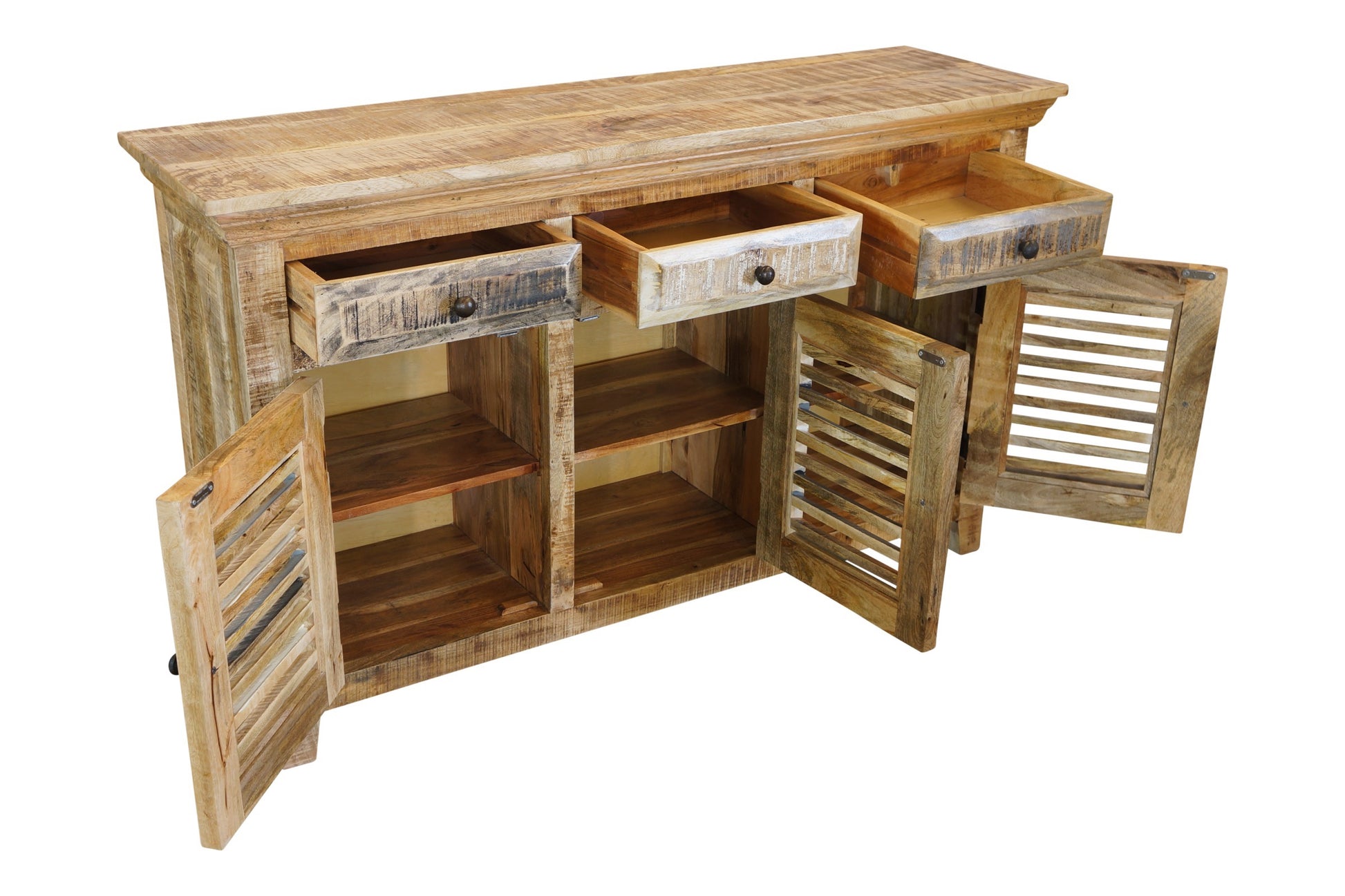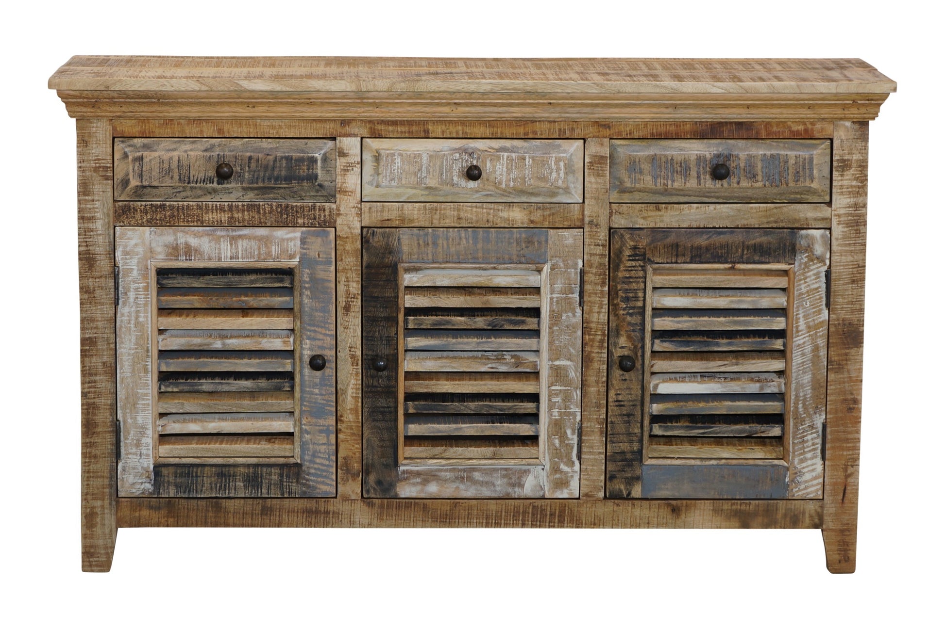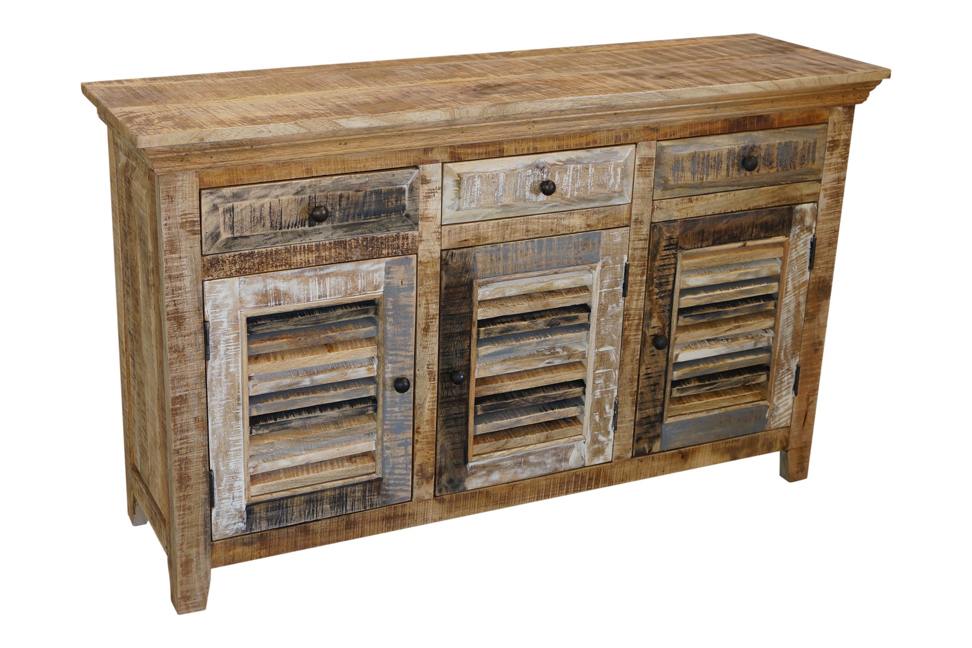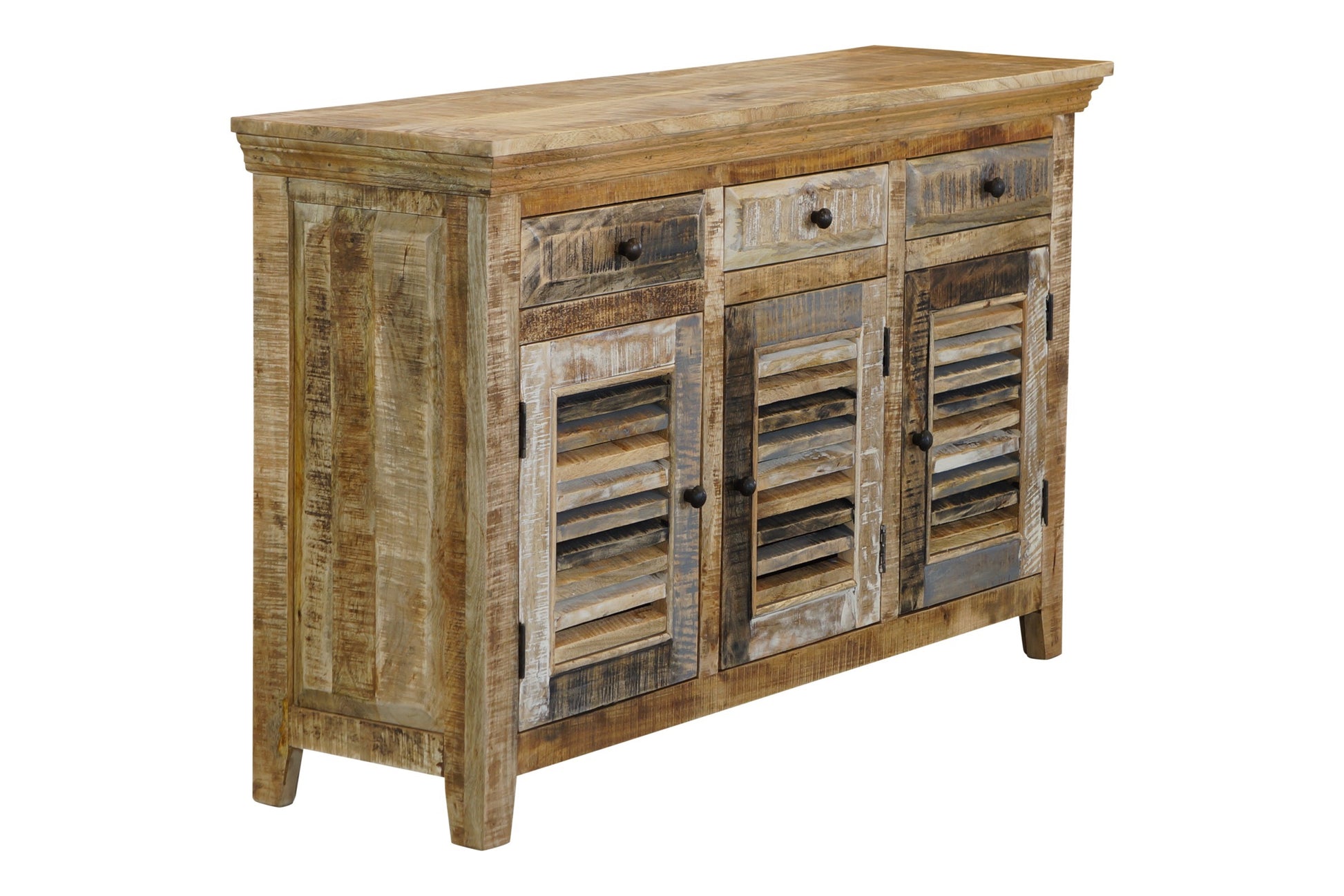 The Seaside Buffet is a charming coastal piece with a natural and worn paint finish. The unit is made from sustainable mango wood and comes fully assembled.