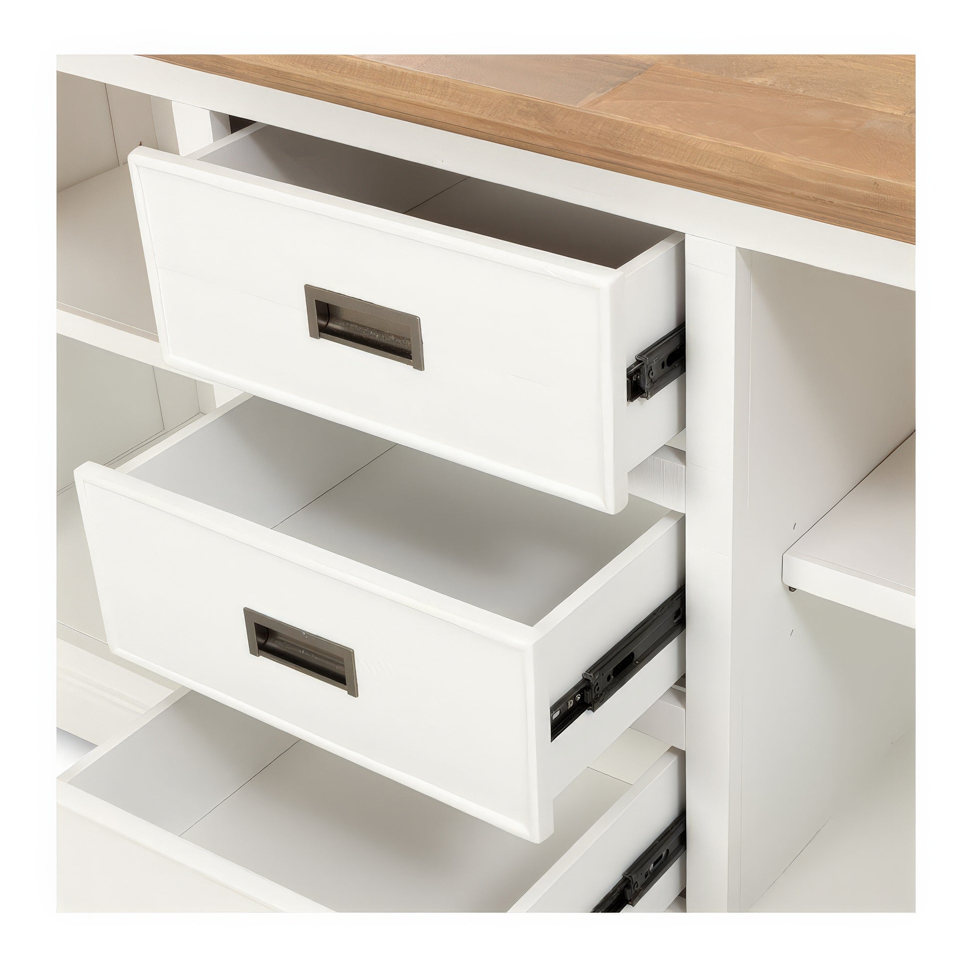 The Seaview Range is a fusion of coastal elegance and rustic charm. The rough-sawn finish seamlessly marries sophistication with a touch of casual comfort. Each piece in this collection boasts a white exterior, creating a crisp and airy ambiance reminiscent of the classic Hamptons aesthetic. The contrasting tops add warmth and character, providing a perfect balance to the overall design.