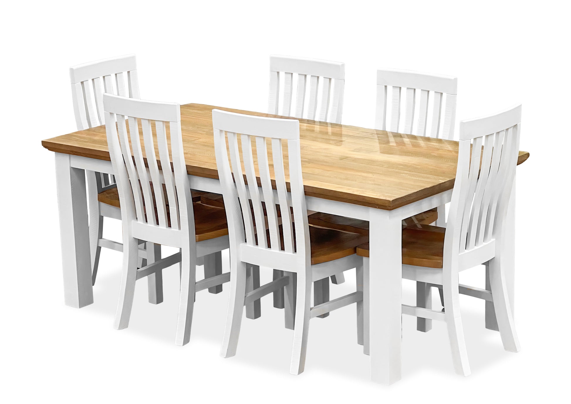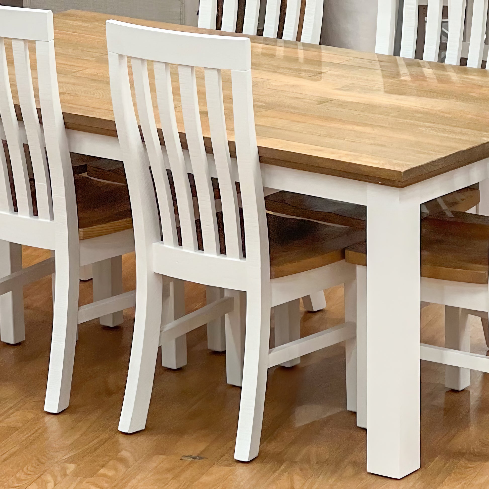 The Seaview Range is a fusion of coastal elegance and rustic charm. The rough-sawn finish seamlessly marries sophistication with a touch of casual comfort. Each piece in this collection boasts a white exterior, creating a crisp and airy ambiance reminiscent of the classic Hamptons aesthetic. The contrasting tops add warmth and character, providing a perfect balance to the overall design.